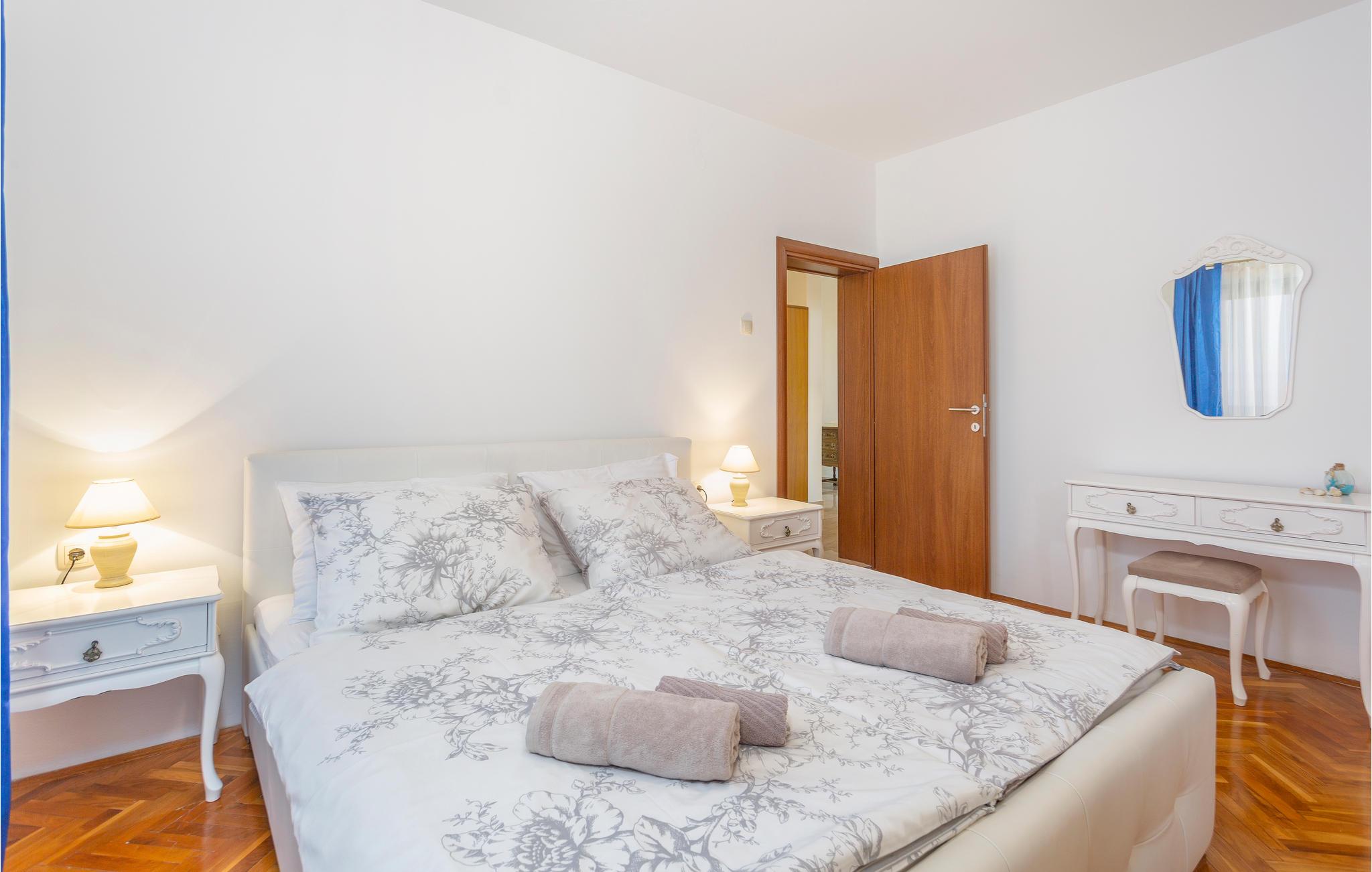 Dette skønne feriehus ligger i den populære turistby Malinska på øen Krk. Lejligheden er rummelig og særdeles komfortabel. Nyd adgangen til den private terrasse, hvor I kan nippe til morgenkaffen eller slappe af med et glas vin om aftenen. Fællesgården er beplantet med middelhavsvegetation og indbyder til lange aftener og måltider lavet på fællesgrillen.