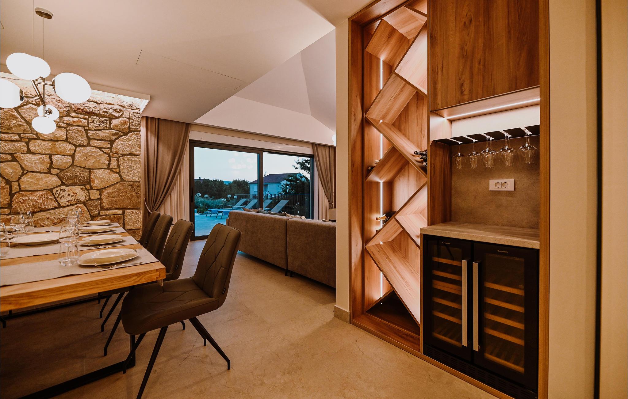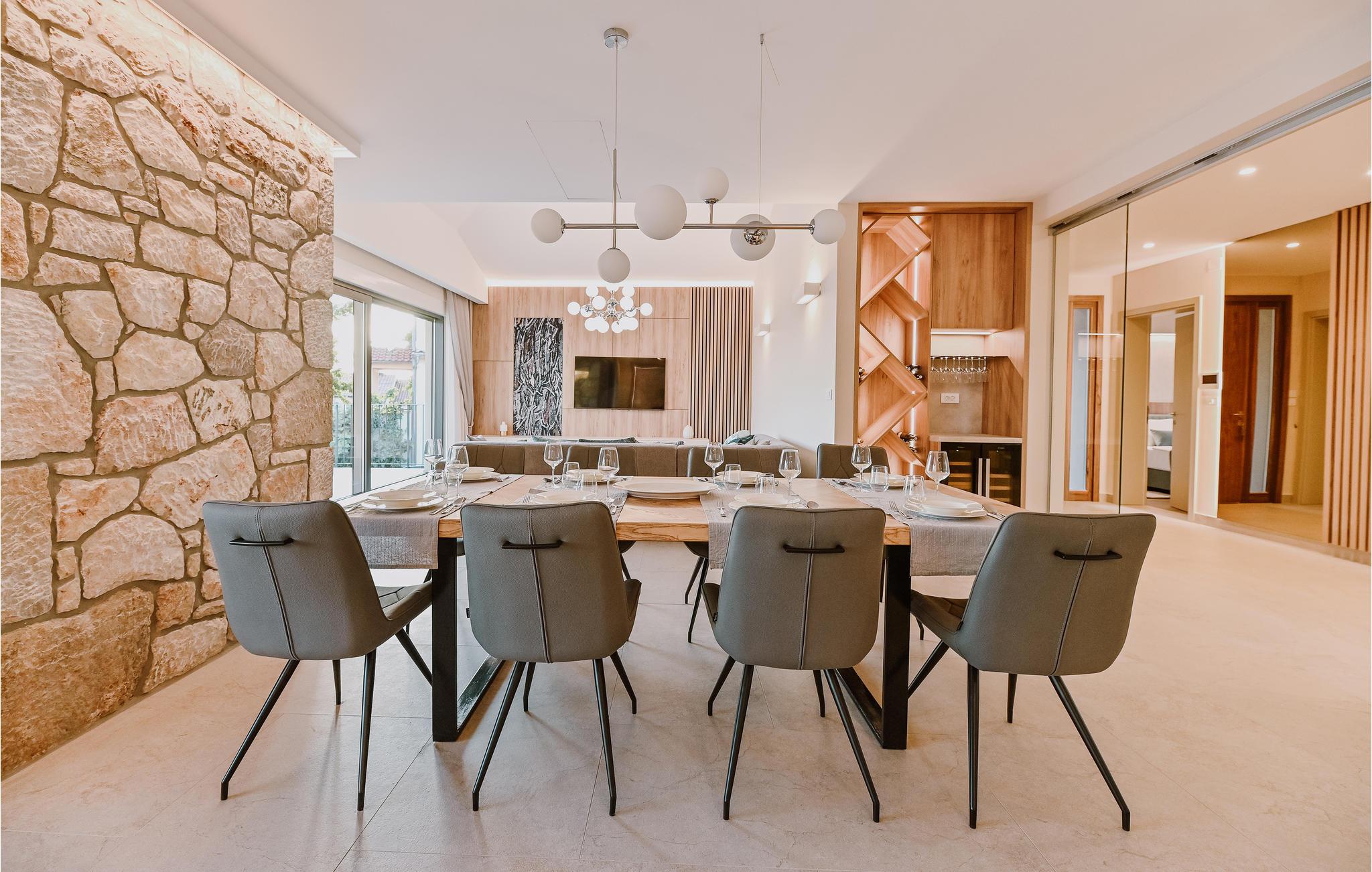 Huset er attraktivt og moderne indrettet med flotte løsninger, så her får I gode rammer om de rolige stunder, hvor I ikke er på farten. En vidunderlig udsigt til landskabet og havet fuldender den æstetiske oplevelse. Efter en frisk dukkert nede på stranden, kan I få varmen i en af husets to saunaer, som er henholdsvis infrarød og finsk sauna. Snup et spil bordfodbold eller bordtennis, hvis I trænger til at bevæge jer oven på en lækker middag på terrassen. Senere kan I lave hjemmebiograf og se en god film på skærmen, som har en projektor tilknyttet.