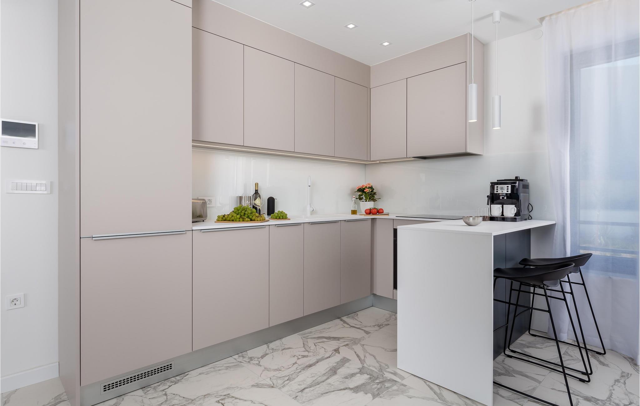 Det store, lyse køkken giver jer plads til at tilberede lækre måltider sammen med familien. Om morgenen kan I brygge en kop kaffe og sætte jer til rette på den rummelige balkon med udsigt til havet. Som alternativ har I den private tagterrasse med stort spisebord, som er oplagt til aftener med grillmad og kølige drinks. Jacuzzien har plads til fem personer, så her kan I forkæle jer selv med en rolig stund efter en lang dag på farten, nyde den fantastiske udsigt og måske en stjernehimmel, hvis I er længe oppe. I stuen kan I læne jer tilbage i sofaerne og se en film.