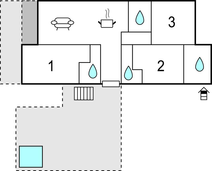 Badeværelse 6m2 (nr. 1) - WC. Varmt og koldt vand. Bruser