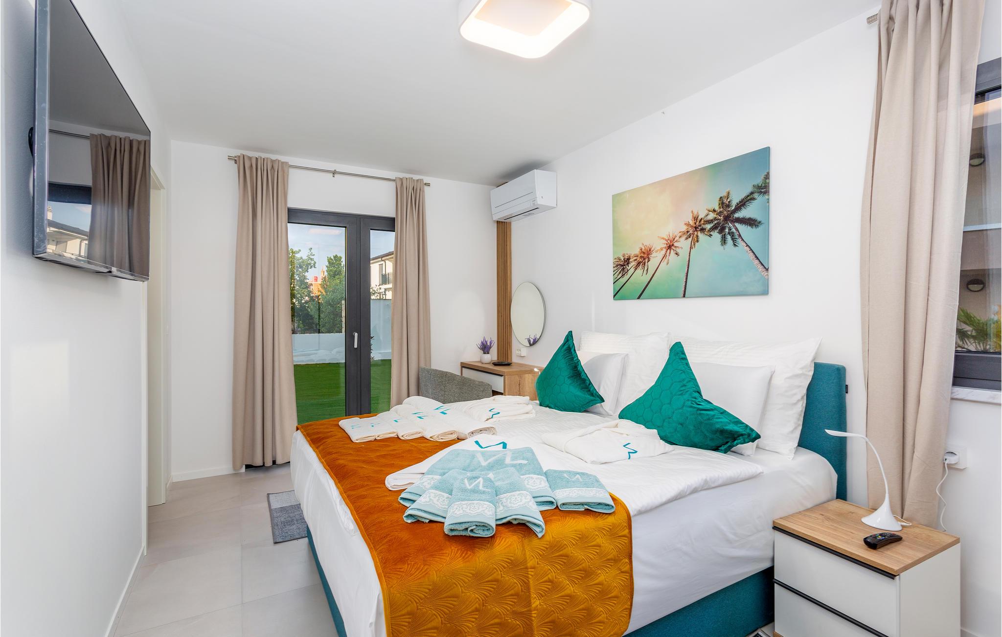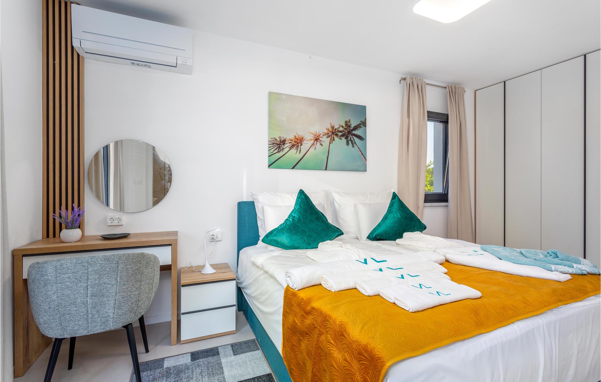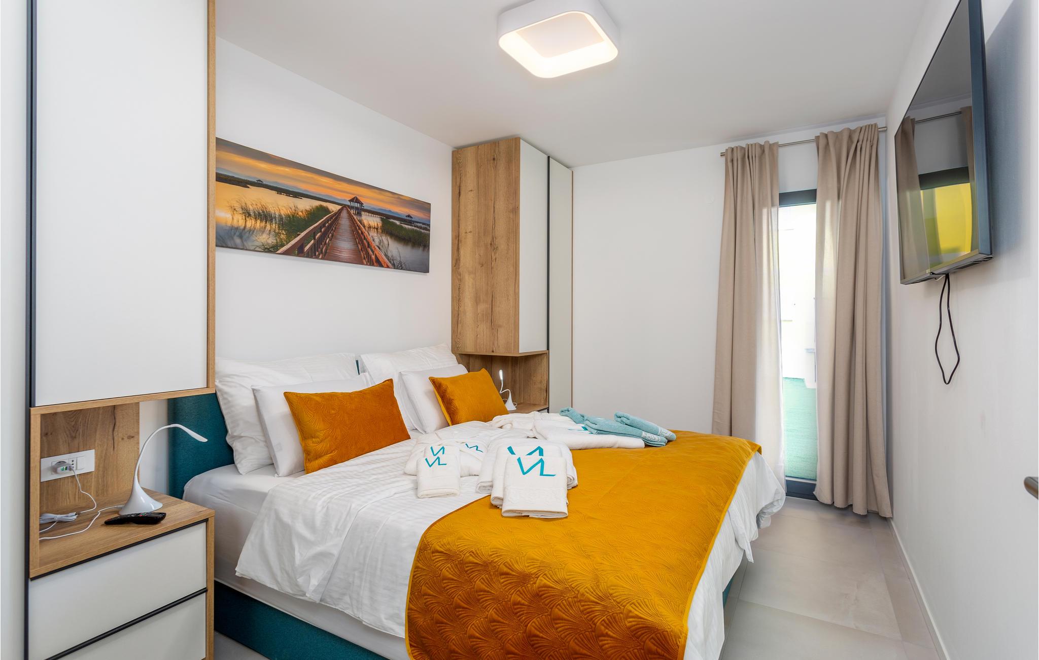 Velkommen til den komfortable lejlighed nær stranden, som byder sine gæster velkommen i en yderst attraktiv panorama-position, det helt rigtige sted for en dejlig pause. Lyse værelser og den moderne indretning gør jeres ophold her til en vellykket oplevelse, men det absolutte højdepunkt er udsigten, som I kan nyde her, mens I laver mad, spiser og slapper af sammen. Glæd jer til hyggelige aftener sammen i sofaen efter jeres aktiviteter. Nyd dejlige timer udendørs, mens I solbader i vid udstrækning på terrassen, bliver alle tanker om hverdagen hurtigt glemt, når I lader blikket vandre ud over landskabet. Køl af i en af de to fælles pools eller afslut dagen med et beroligende bad i det private udendørs spabad.