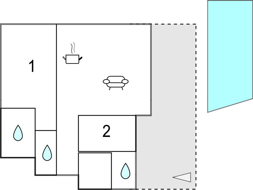 Opholdsstue/køkken 40m2 - 1 Soveplads. (Sofa, madras eller lignende).