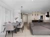 Velkommen til den indbydende lejlighed, hvor der venter jer en særdeles komfortabel indretning. De lyse lokaler og elegante møbler gør lejligheden til en oplagt destination for gæster, der værdsætter kvalitet og komfort på ferien. Her kan I nyde jeres måltider med en smuk udsigt over det fri gennem gulv-til-loft- vinduerne og se frem til mange hyggelige aftener i en stilfuld og behagelig atmosfære.