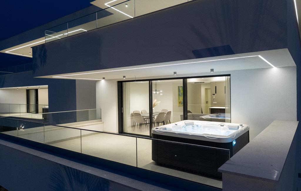 Udenfor er terrassen et vidunderligt sted at nyde solen i fulde drag. Her kan I bare dase i en liggestol eller koble helt af i jeres eget spa-bad.