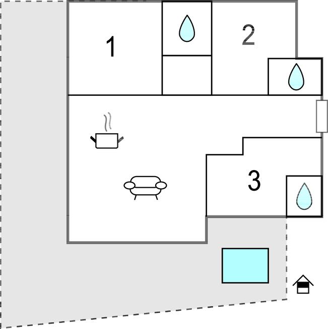 Badeværelse 3m2 (nr. 1) - WC. Varmt og koldt vand. Bruser