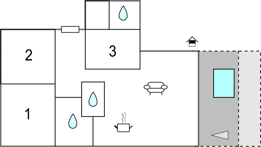 Badeværelse 3m2 (nr. 1) - WC. Varmt og koldt vand. Bruser