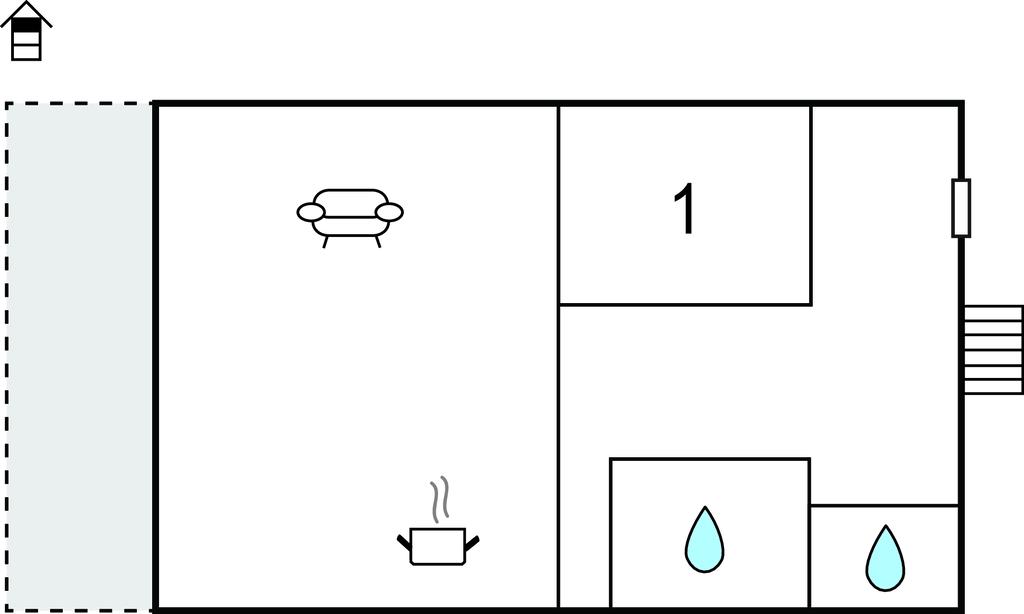 Opholdsstue/køkken 32m2 - 2 Sovepladser. (Sofa, madras eller lignende).