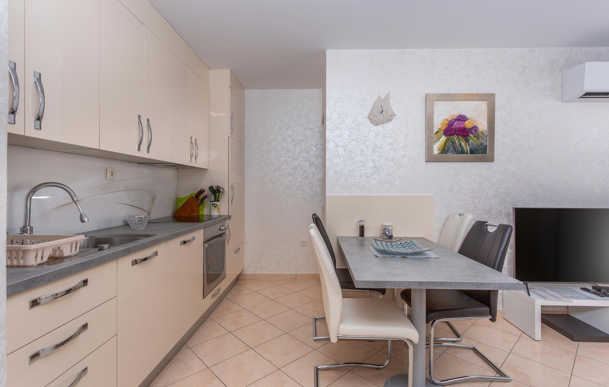 Forkæl jer selv med en pause fra hverdagen og tilbring jeres ferie her. Denne charmerende lejlighed byder på gode indretningsløsninger og en varm, indbydende atmosfære. Nyd de afslappende stunder i den skønne opholdsstue.