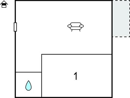 Opholdsstue/køkken 18m2 - 1 Soveplads. (Sofa, madras eller lignende).