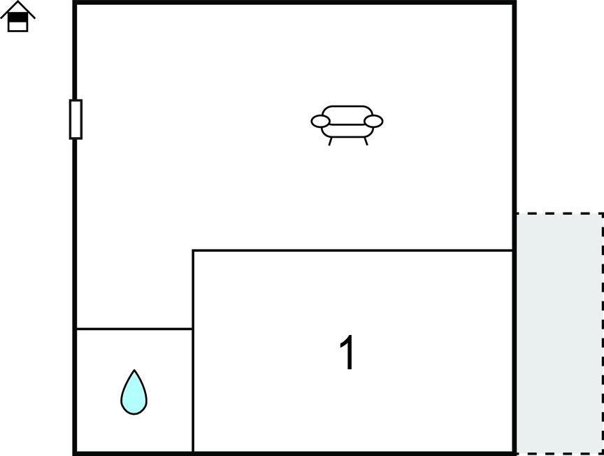 Opholdsstue/køkken 18m2 - 1 Soveplads. (Sofa, madras eller lignende).