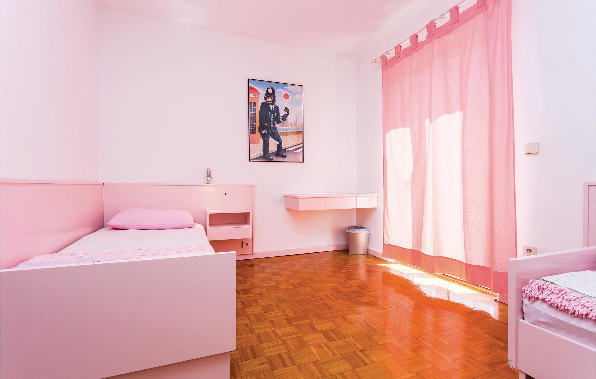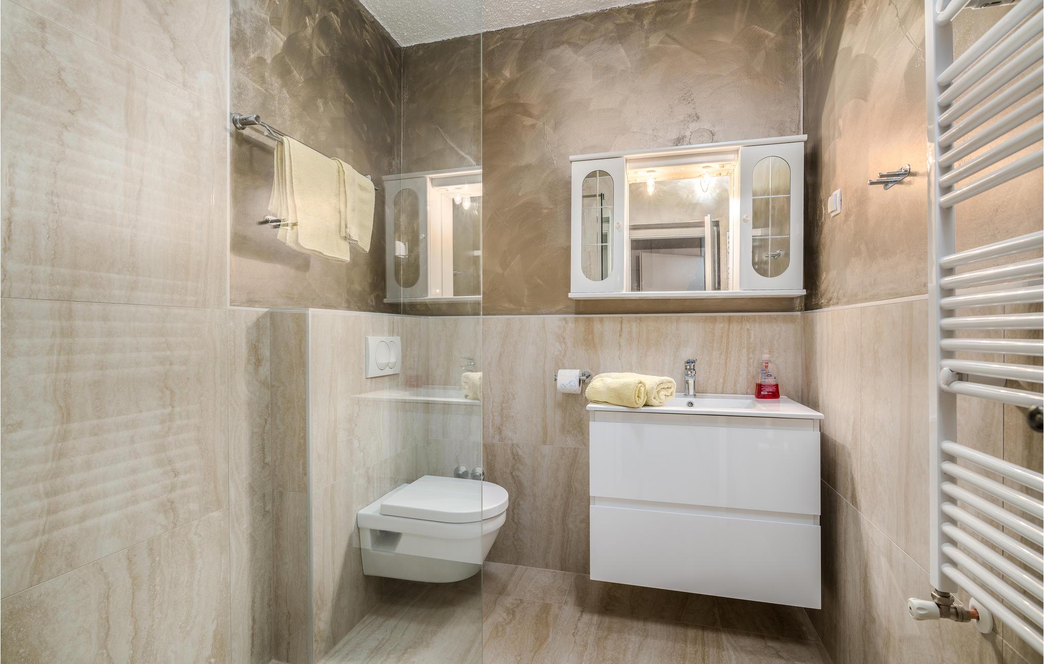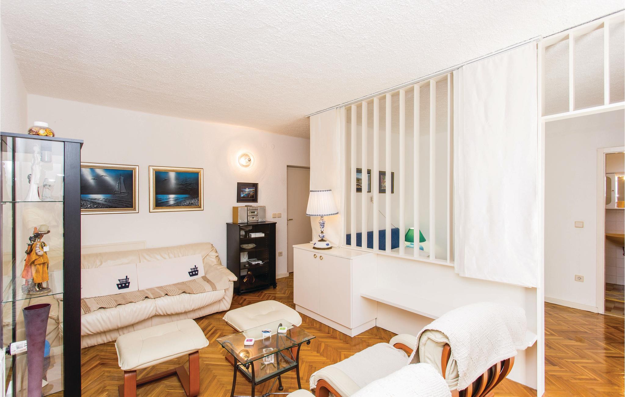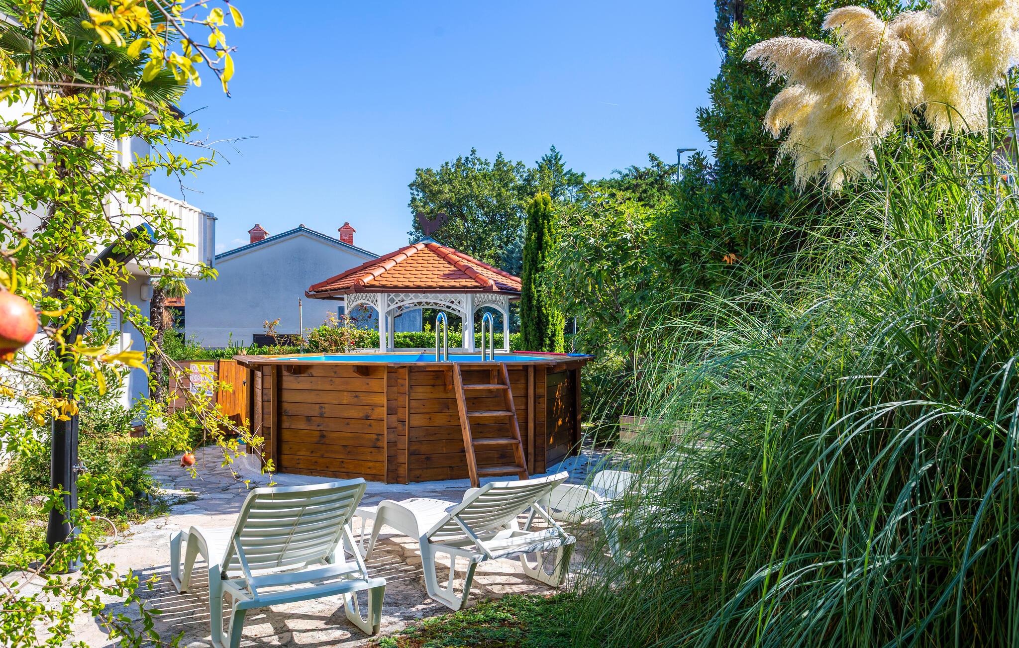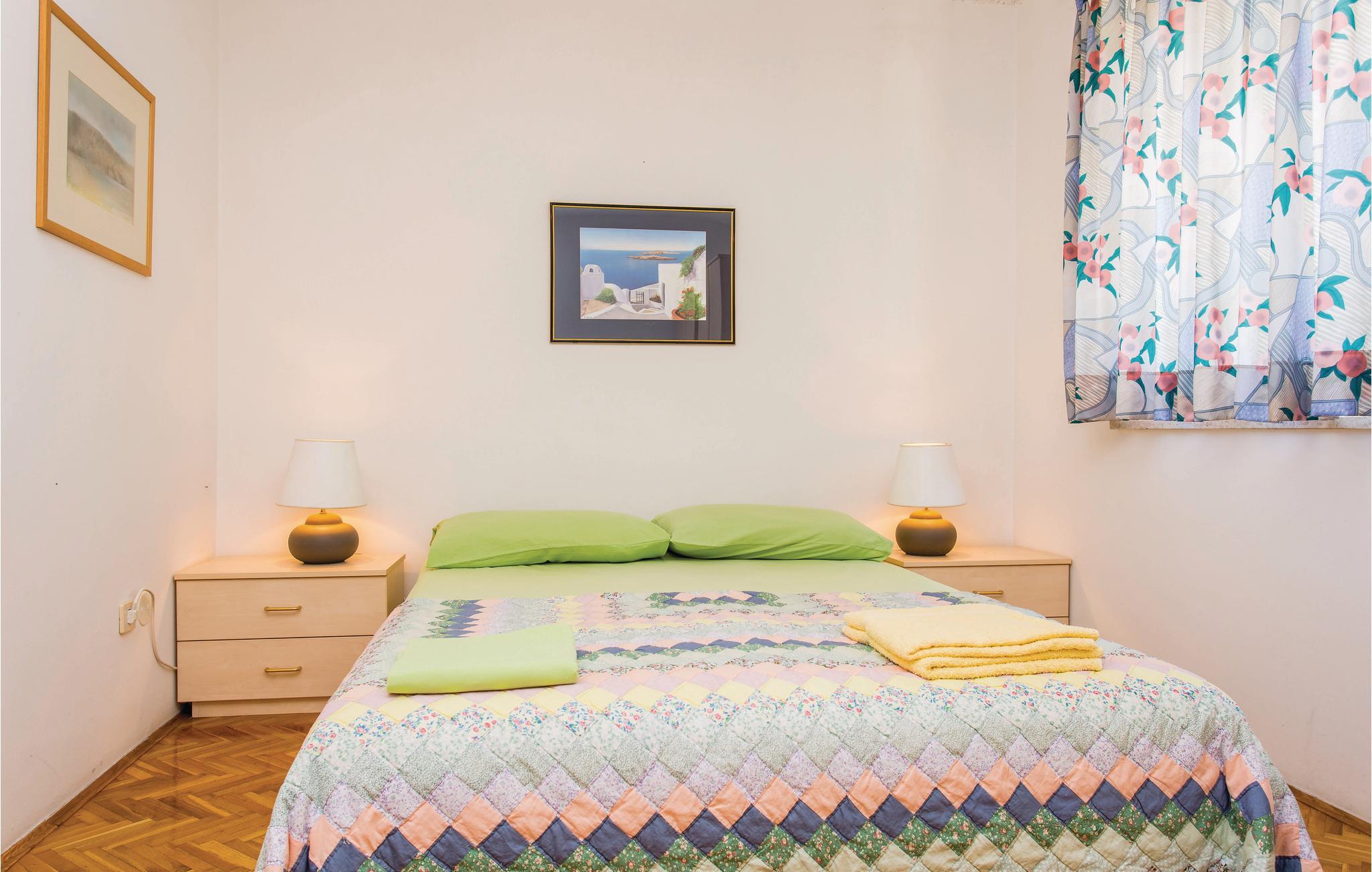 I den populære ferieby Malinska ligger dette feriehus, omgivet af en dejlig have. Det er ideelt til familier. Med overdækket terrasse og badebassin. Stueetagen har en rummelig dagligstue. I overetagen ligger soveværelserne og en lille dagligstue med udgang til den store terrasse. Herfra har I en skøn udsigt til havet. Bag huset ligger en gade. Men den overdådige, grønne have er imellem, og værelserne vender mod havet. Huset ligger i nærheden af byens centrum. I kan gå i vandet på de tre offentlige strande eller i de ensomme bugter. En mængde kulturelle arrangementer med folklore og folkefester sørger for underholdning. Ved siden af den lange og smukke promenade er der forskellige sportsanlæg.