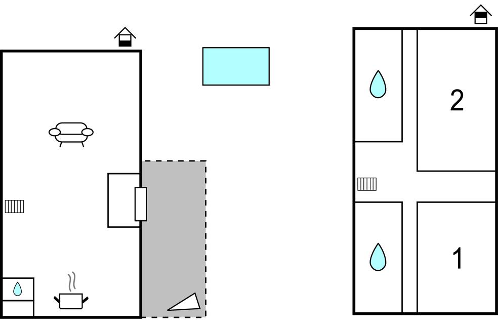 Soveværelse (nr. 1) - 1 Soveplads. (Enkeltseng(e)). 2 Sovepladser. (Dobbeltseng(e)).