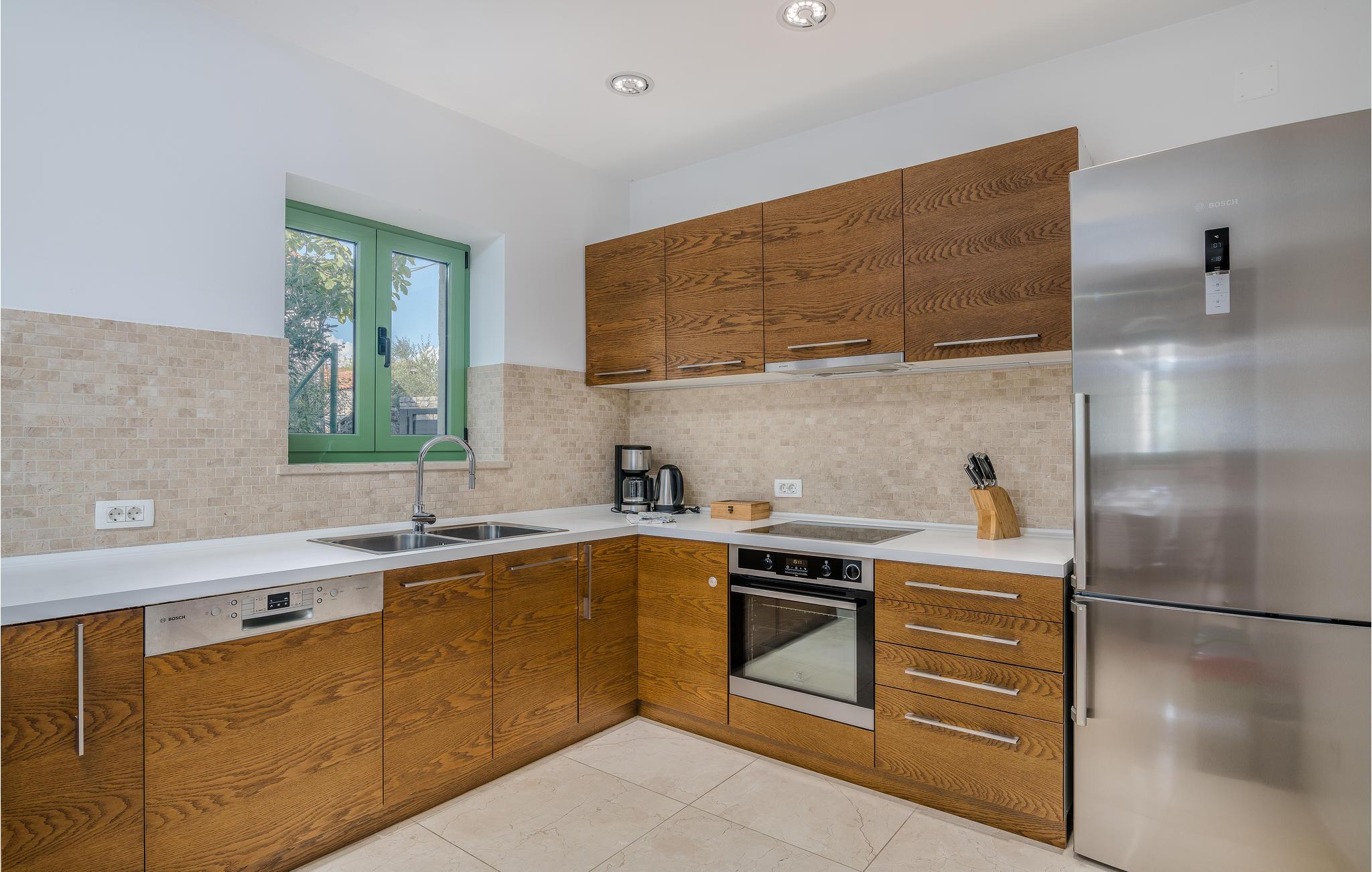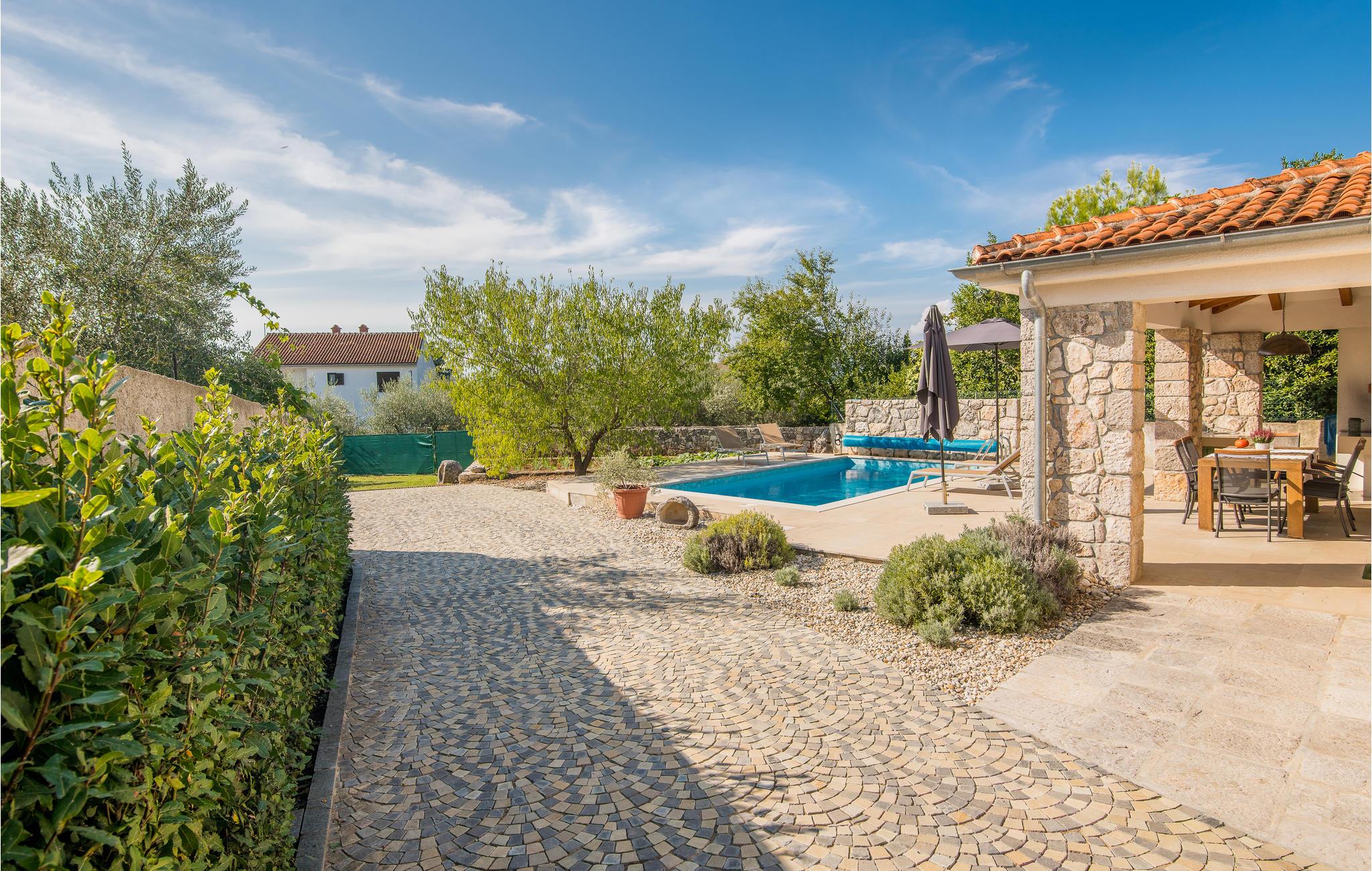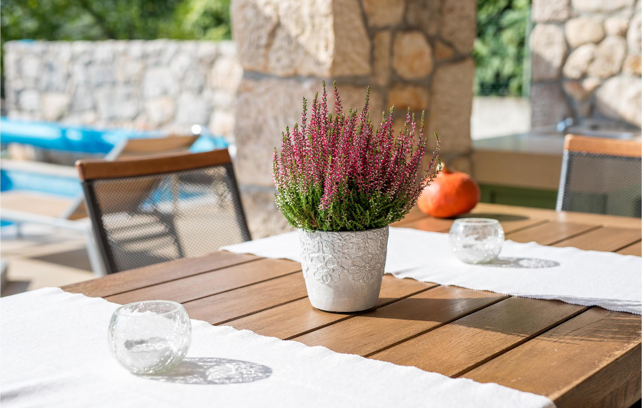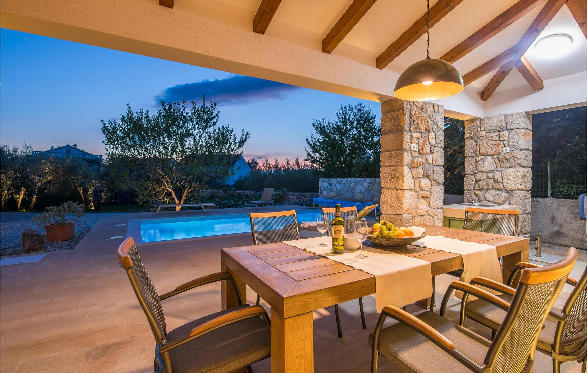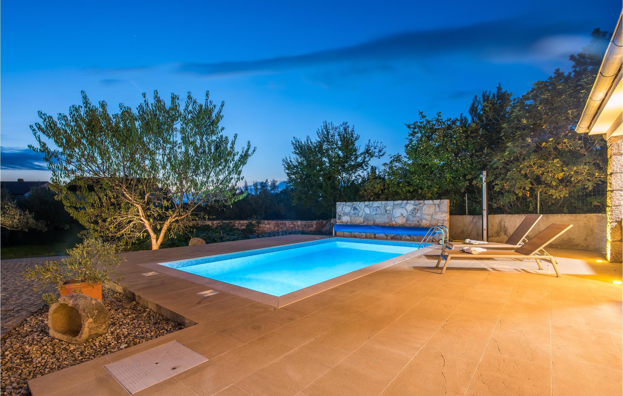 I nærheden af Malinska, i den lille by Radic, ligger dette skønne feriehus. Det er udstyret med alt til bekvem ferie og moderne indrettet, med en charmerende blanding af nyt og moderne. I stueplan er der en rummelig åben opholdsstue med køkken og spiseafdeling. En indre trappe fører op til første sal med to soveværelser og to badeværelser. Den skønt velplejede og indhegnede have med udsigt ud over olivenlunden er oplagt til afslapning, måske med en god bog, mens maden der syder på grillen overvåges. Hop I poolen og køl af hvis heden bliver for heftig. I kan spadsere til kysten og Malinskas strandpromenade. Her er sand- og kiesstrande og ensomme bugter, samt mulighed for at dyrke mange former for sport og med forskellig underholdning. Bag huset er en lokal lille landevej.