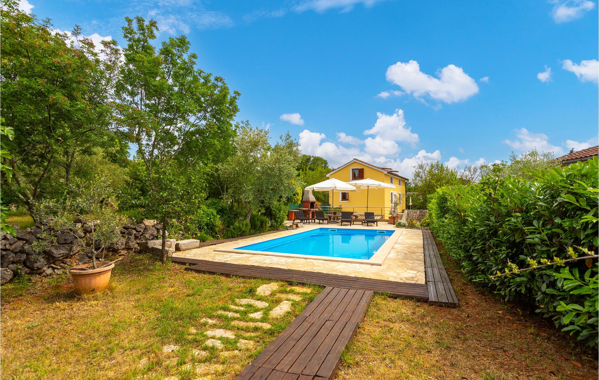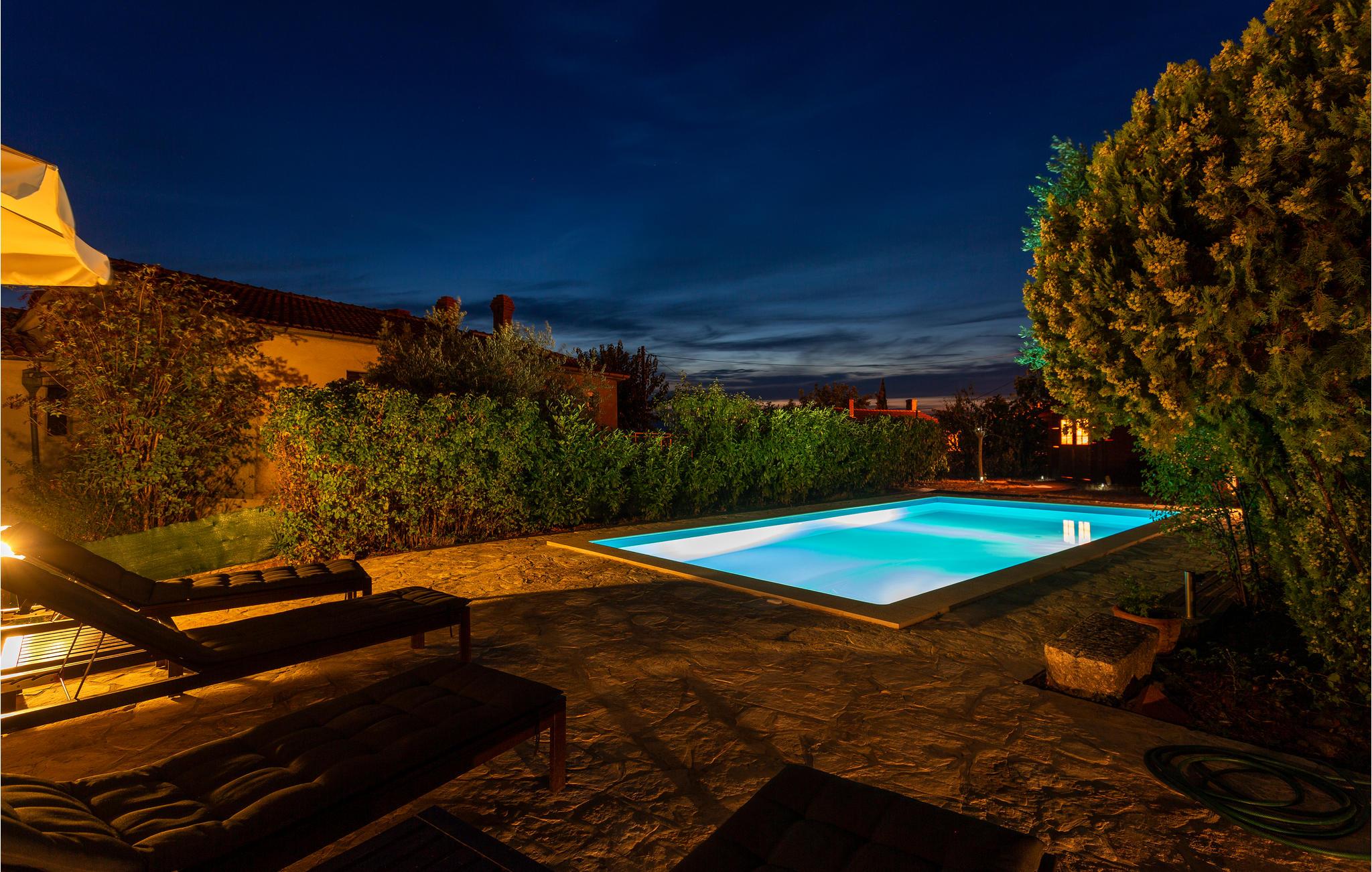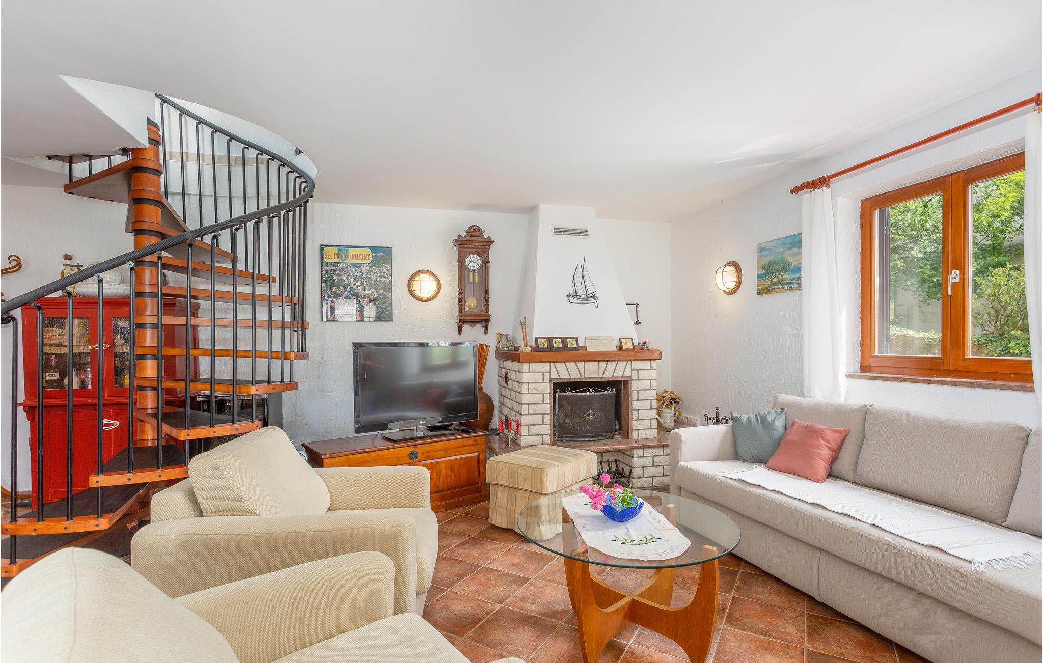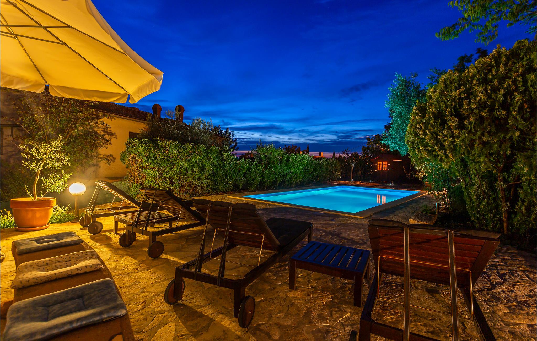 Dette traditionelle feriehus med sin egen skønne pool, ligger i Sveti Vid, en lille by ikke langt fra Malinska. Tilbring en behagelig ferie i dette hus opført i 1860, langt fra byens travlhed. Etagerne er forbundet med vindeltrapper, og trapperne op til hemsen er meget stejle og ikke egnet til ældre eller små børn. Laveste loftshøjde under taget er 1,50 m. Grunden er omhyggeligt anlagt og indhegnet, så jeres børn kan lege ugeneret. Der er mange cykel- og vandringsstier og andre fritidsmuligheder i nærheden.