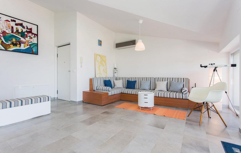 Velkommen til en fortryllende udsigt til havet. Denne helt særlige, luksuriøst indrettede ferielejlighed ligger på 2. sal af en moderne bygning i landsbyen Zidarici in nærheden af Malinska. Lejligheden er komfortabel og helt klimatiseret. I vil blive overvældet af havudsigten fra stuen, køkkenet og terrassen, mens I drikker jeres morgenkaffe eller slapper af i aftentimerne med et godt glas vin. Der er en kort gåtur til stranden. Krk er en ø med en bred vifte af muligheder for en aktiv ferie. I et af soveværelserne er den laveste loftshøjde 110 cm.
