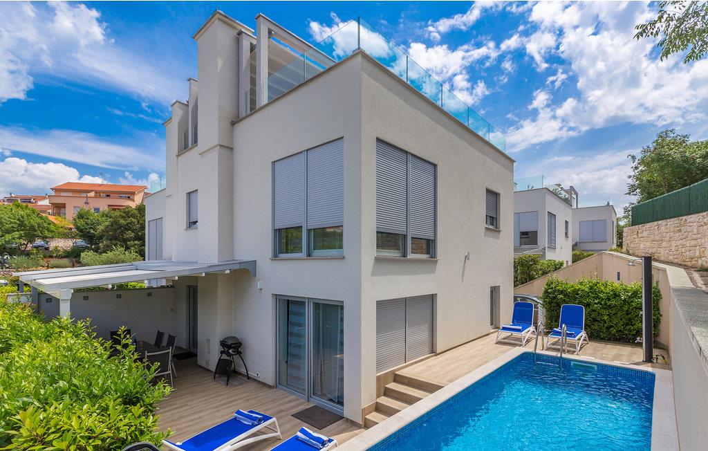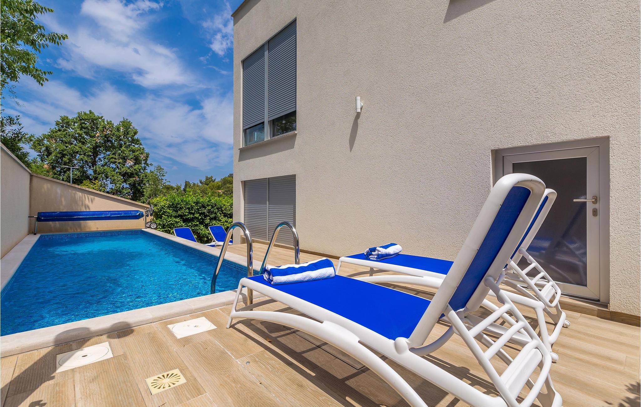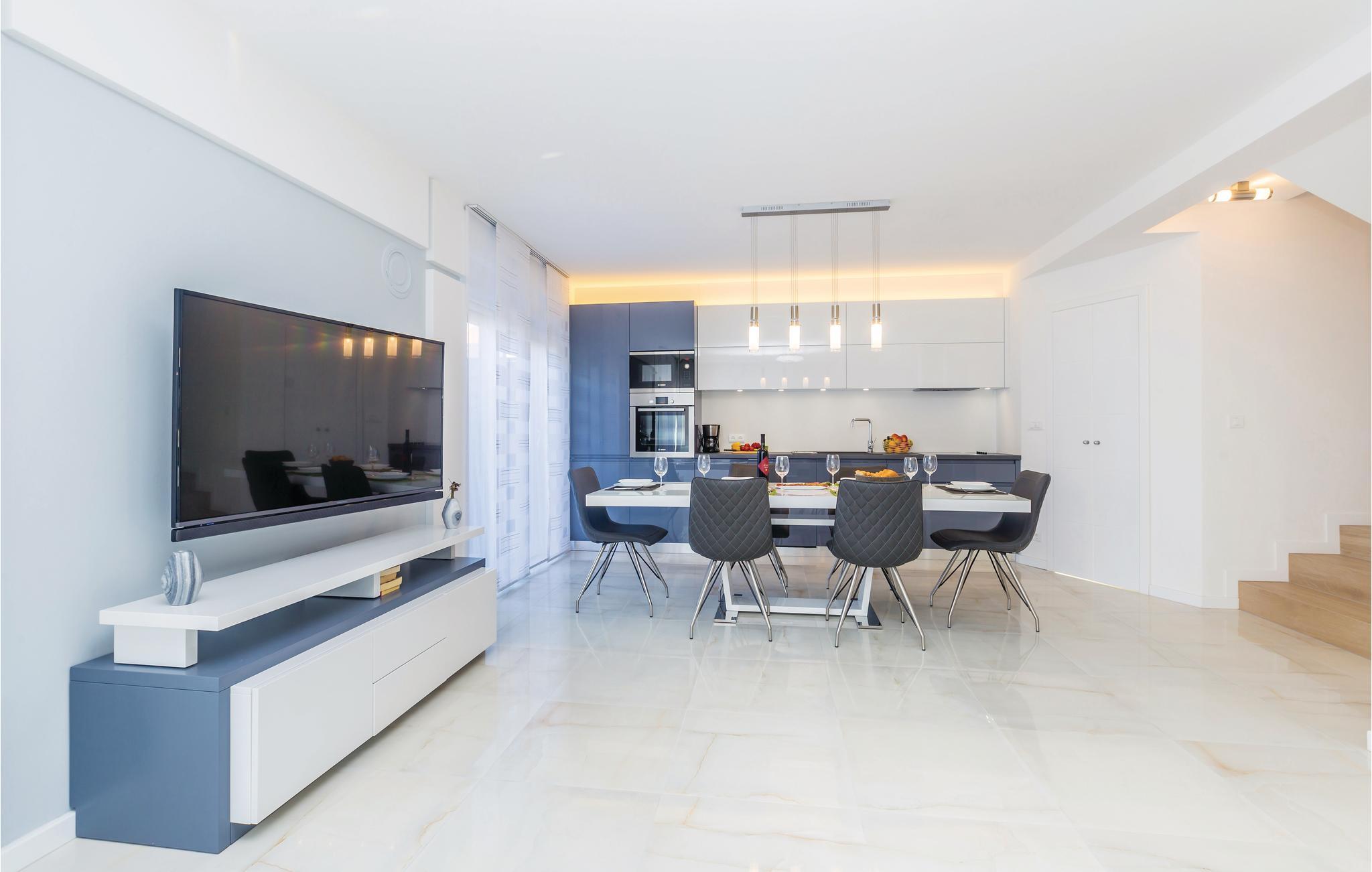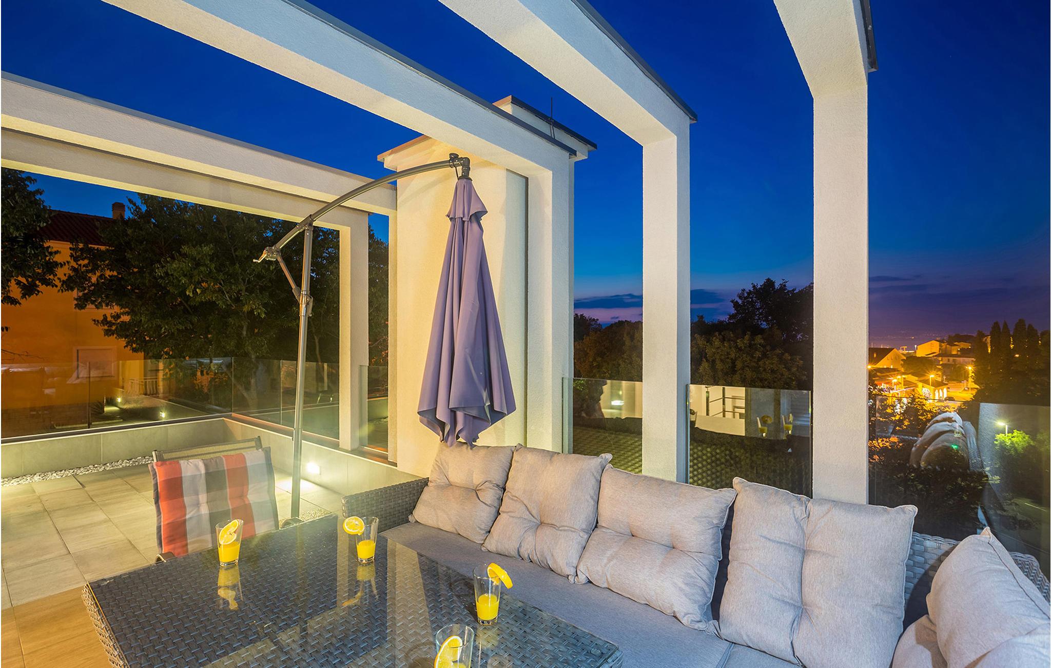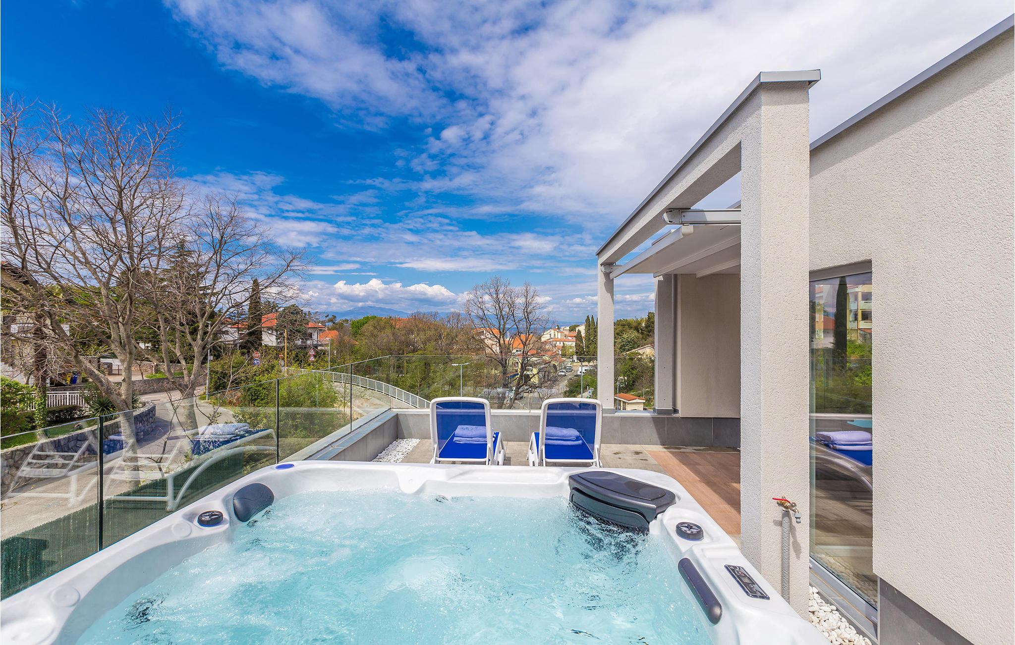 Denne luksuriøse ferielejlighed ligger i et dobbelthus i Malinska, en lille ø-landsby med gode muligheder for at holde en aktiv ferie. I stueetagen er en stor stue med udgang til en terrasse, et soldæk og en opvarmet swimmingpool. På 1. etage ligger et soveværelse, og på 2. etage finder I en attraktiv tagterrasse med udekøkken og flot udsigt over havet og Malinska. Huset er som skabt til at trække sig tilbage og stresse af, men ligger alligevel tæt på byens centrum, hvor der er indkøbsmuligheder, souvenirshops, apotek, restauranter, caféer og barer. Vil I svømme i havet, er der kun få skridt til de nærliggende strande. Malinska er en interessant lille by med mange former for bekvemmeligheder. Lær øens rige historie og kulturhistorie at kende – den er rigtig spændende. Hold en aktiv ferie med wake-boarding i Punta eller sus rundt på go-kartbanen i Krk. Gå afslappede romantiske ture på den skønne promade og besøg udsigtspunkter på de mange vandre- og cykelstier som øen er dækket af. Tag også til de mange andre byer, fx Vrbnik, og smag den berømte vin Vrbnicka Zlahtina, på en af de mange vingodser. Tag også til den lille by Košljun med Franciscanerkloster, hvis munke er øens eneste beboere. I byen Baska ligger en af de skønneste strande ved det nordlige Adriaterhav. .