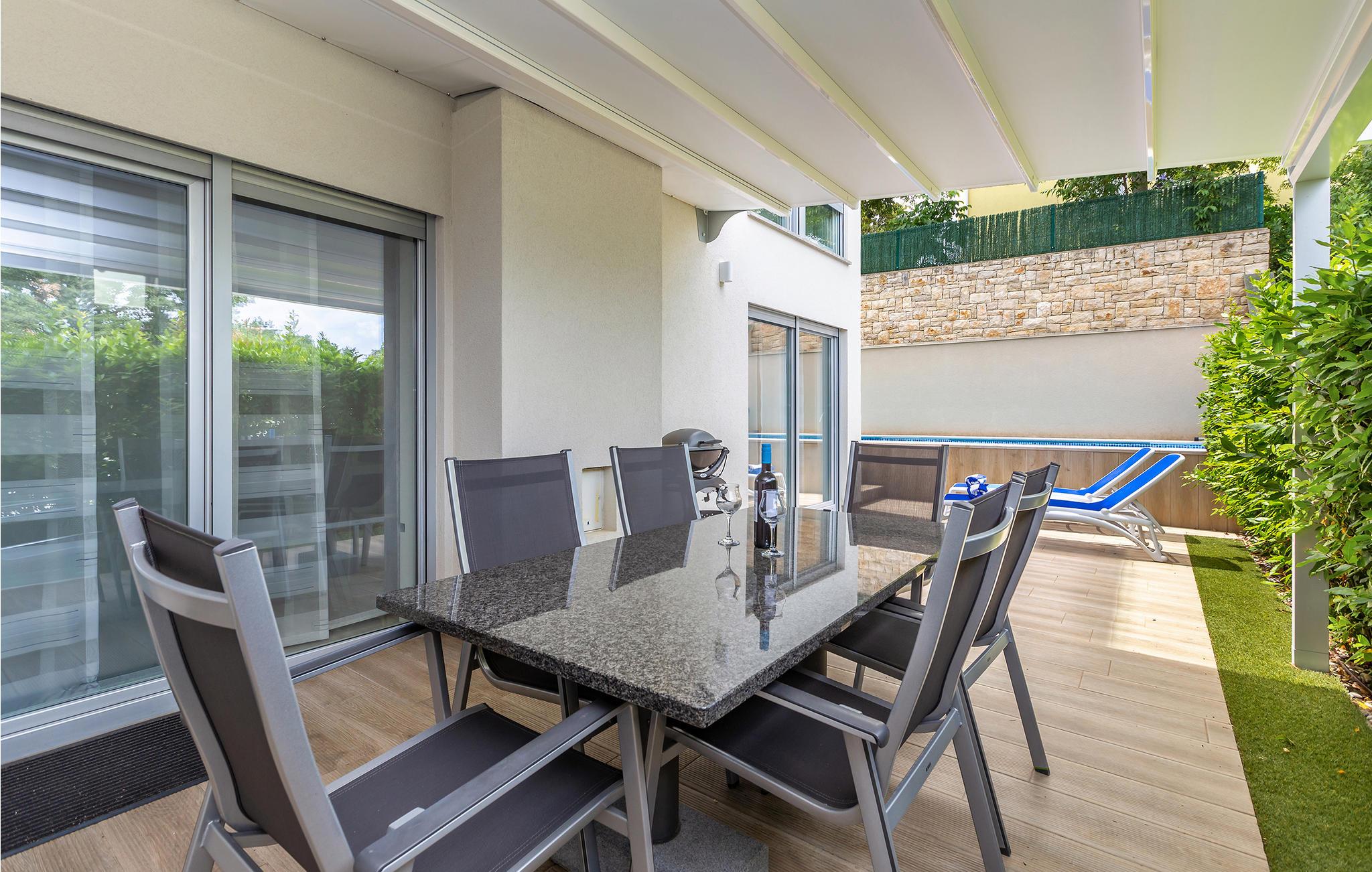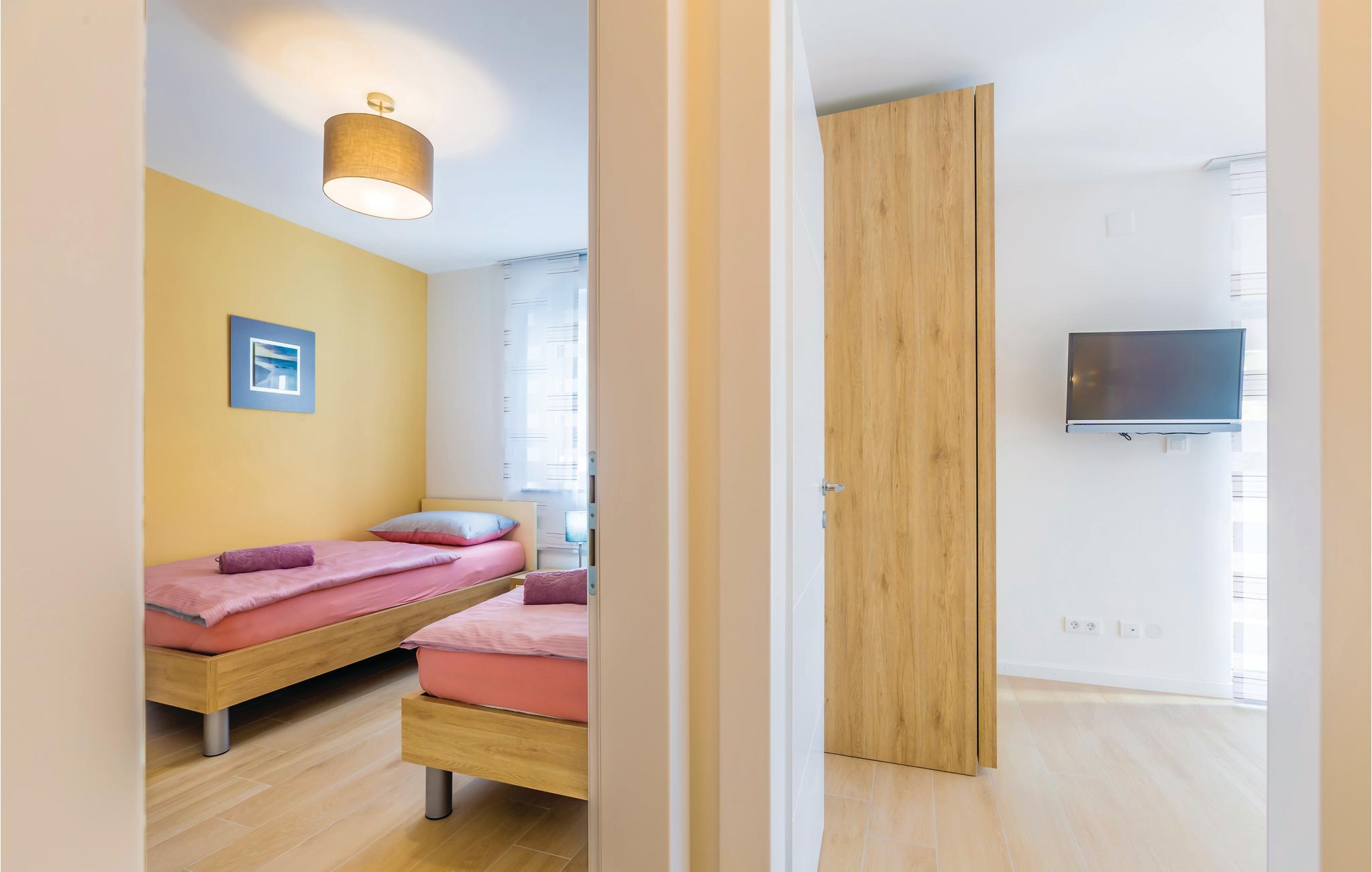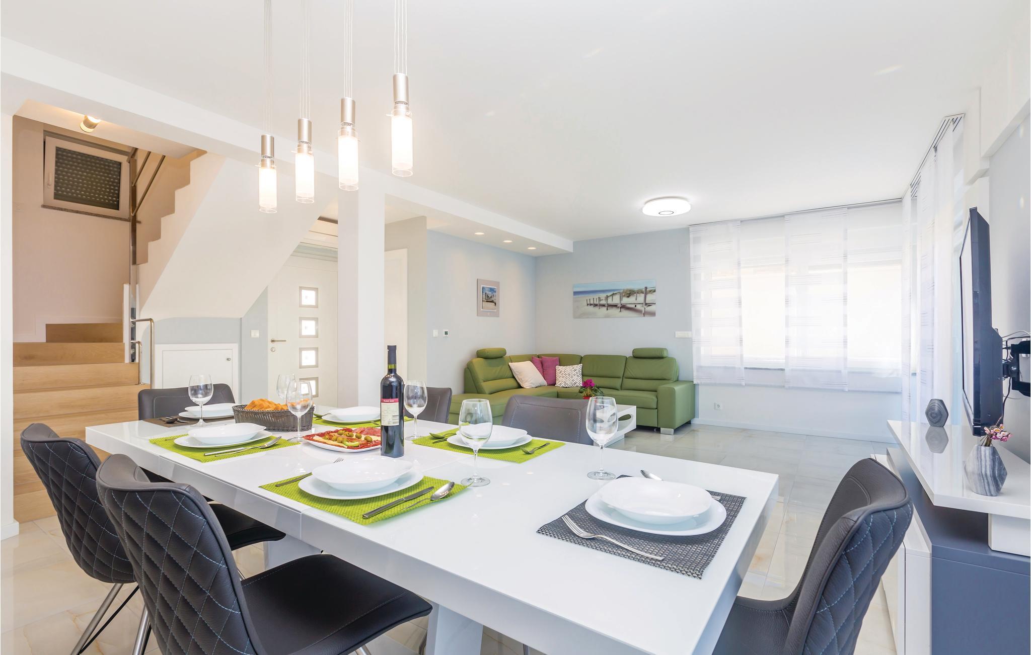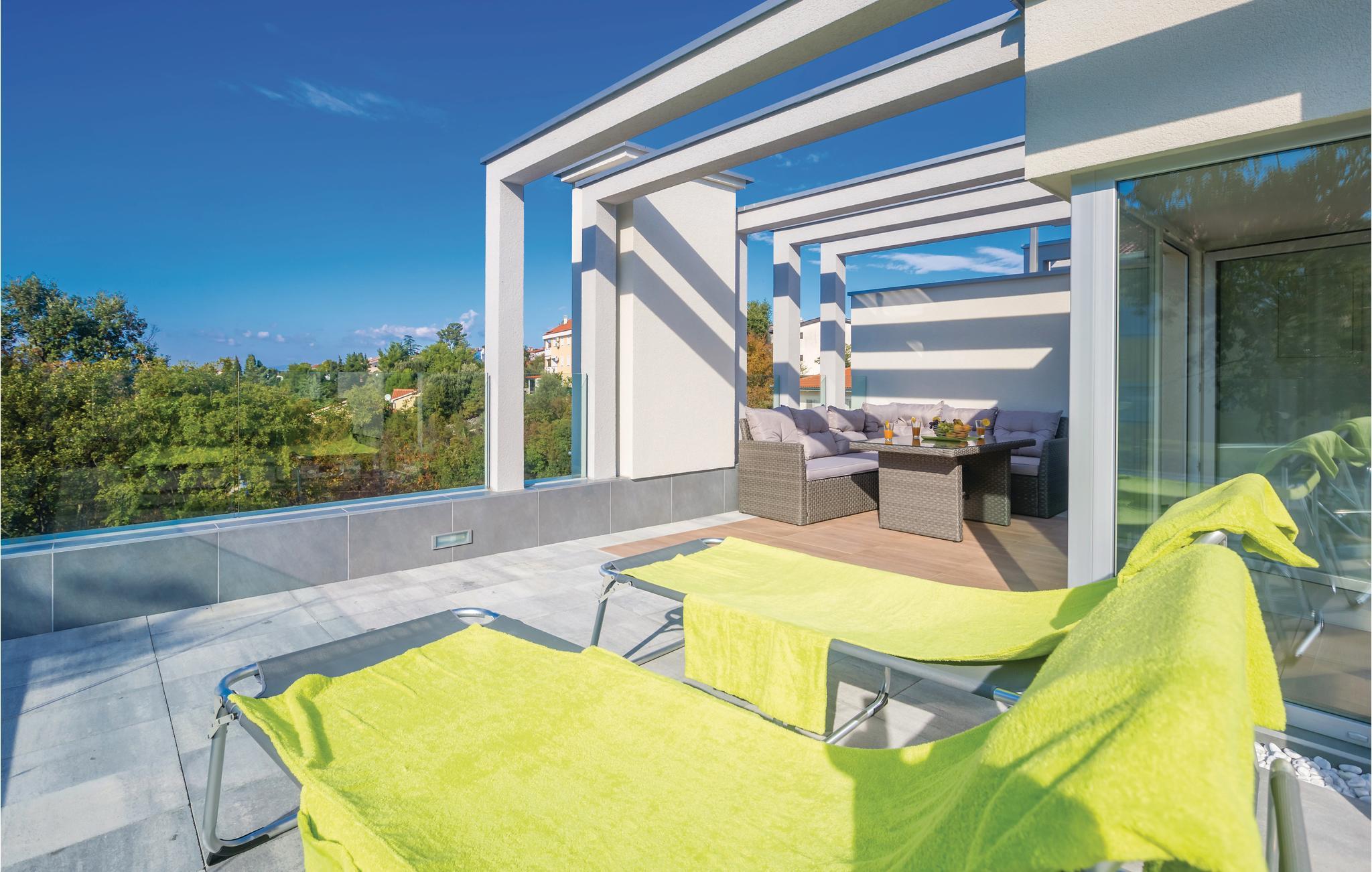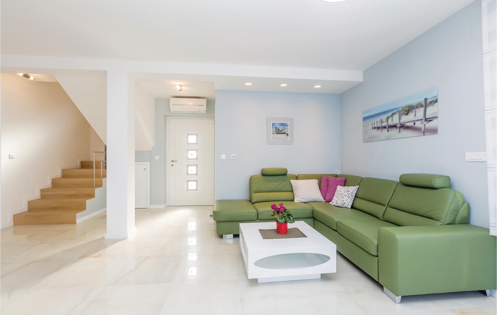 Denne luksuriøse ferielejlighed ligger i et dobbelthus i Malinska, en lille ø-landsby med gode muligheder for at holde en aktiv ferie. I stueetagen er en stor stue med udgang til en terrasse, et soldæk og en opvarmet swimmingpool. På 1. etage ligger et soveværelse, og på 2. etage finder I en attraktiv tagterrasse med udekøkken og flot udsigt over havet og Malinska. Huset er som skabt til at trække sig tilbage og stresse af, men ligger alligevel tæt på byens centrum, hvor der er indkøbsmuligheder, souvenirshops, apotek, restauranter, caféer og barer. Vil I svømme i havet, er der kun få skridt til de nærliggende strande. Malinska er en interessant lille by med mange former for bekvemmeligheder. Lær øens rige historie og kulturhistorie at kende – den er rigtig spændende. Hold en aktiv ferie med wake-boarding i Punta eller sus rundt på go-kartbanen i Krk. Gå afslappede romantiske ture på den skønne promade og besøg udsigtspunkter på de mange vandre- og cykelstier som øen er dækket af. Tag også til de mange andre byer, fx Vrbnik, og smag den berømte vin Vrbnicka Zlahtina, på en af de mange vingodser. Tag også til den lille by Košljun med Franciscanerkloster, hvis munke er øens eneste beboere. I byen Baska ligger en af de skønneste strande ved det nordlige Adriaterhav. .
