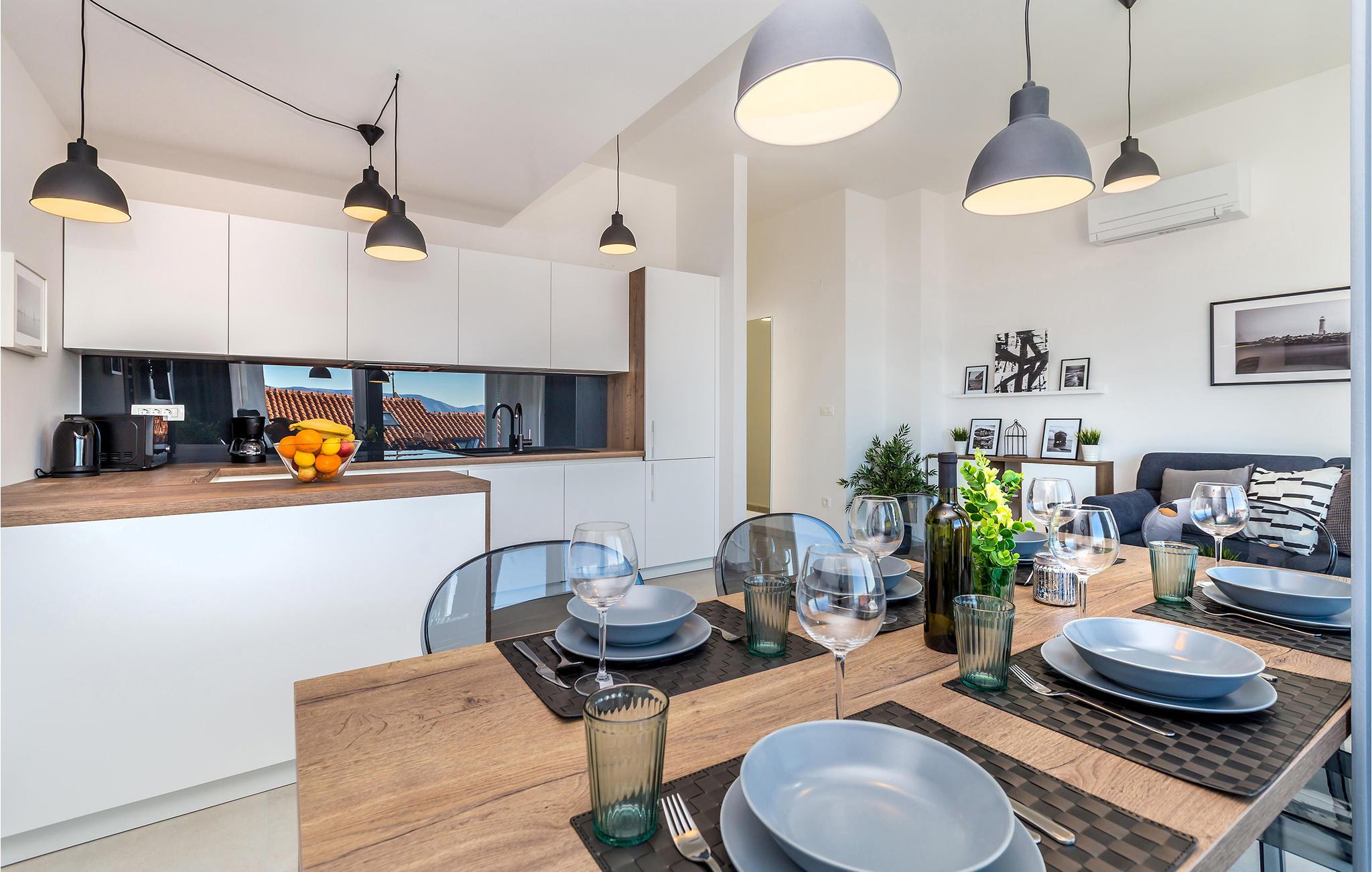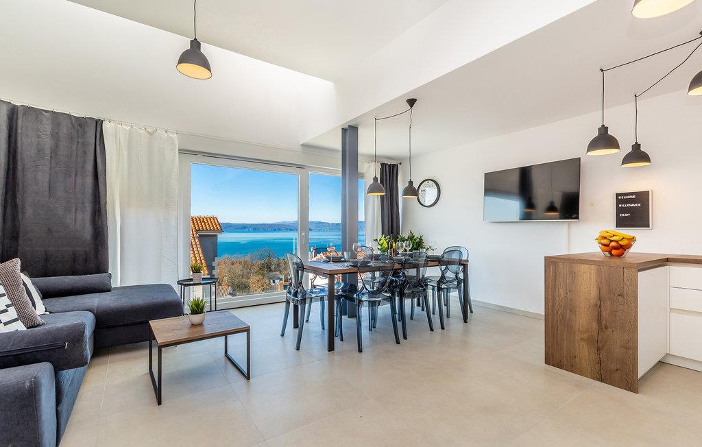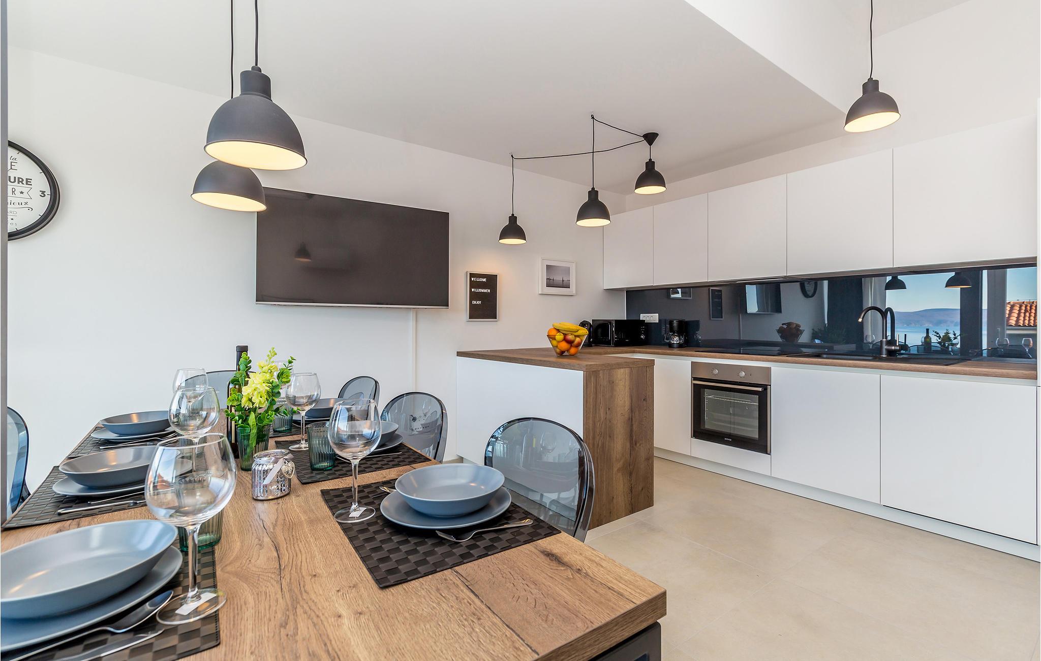 Dette stilfuldt indrettede parcelhus ligger i Njivice, et smukt sted på den gyldne ø Krk. Huset ligger i et rækkehus på en skråning, hvorfra du har en vidunderlig panoramaudsigt over det blå hav.