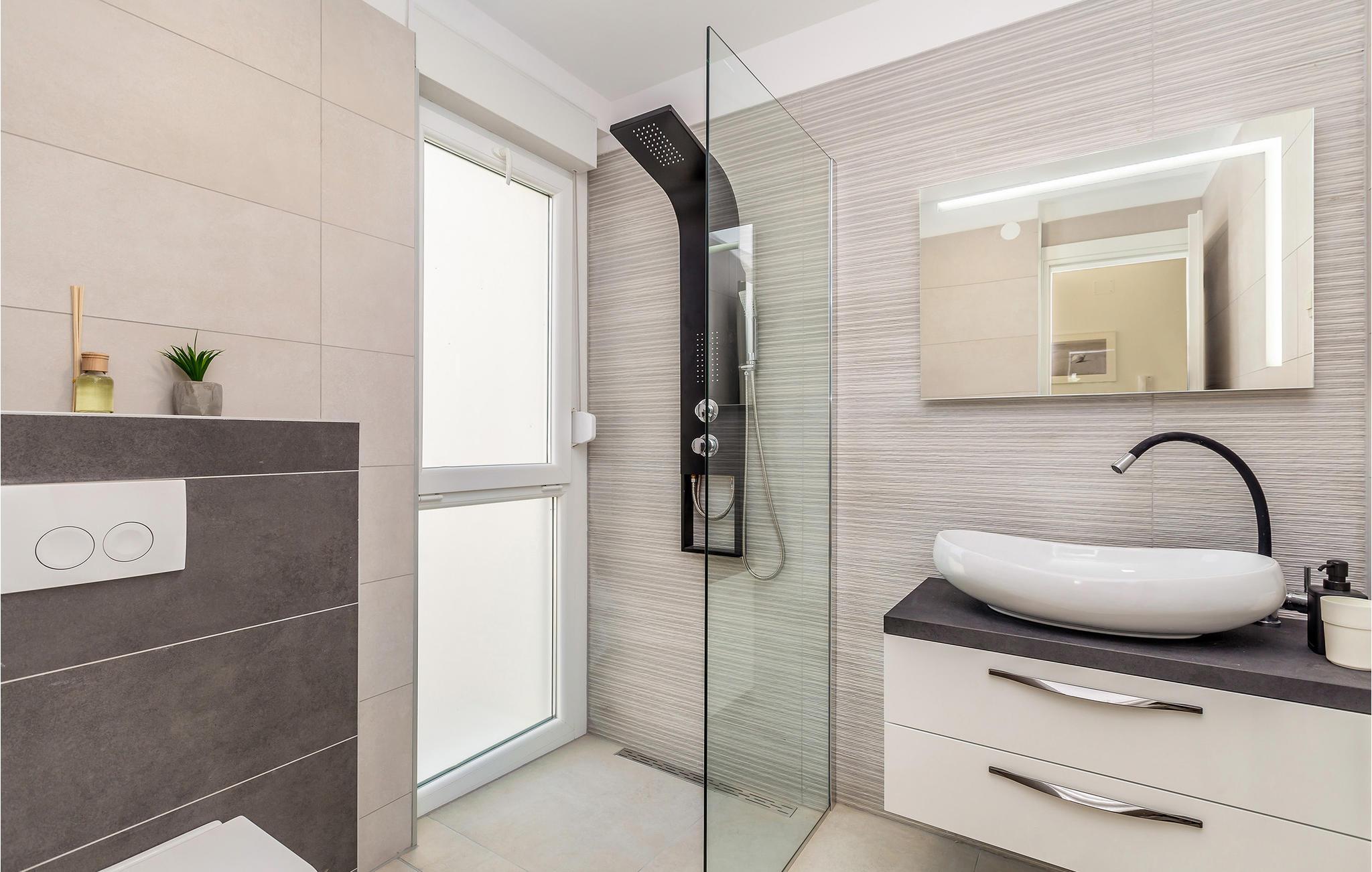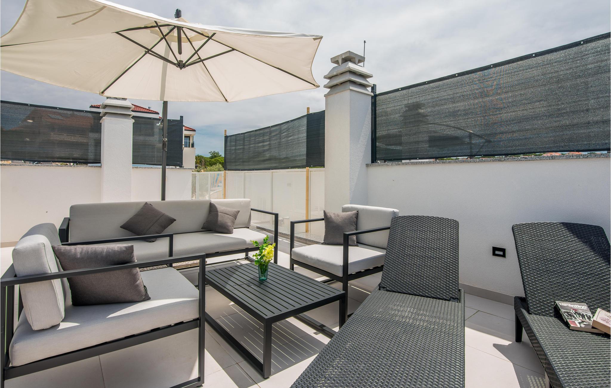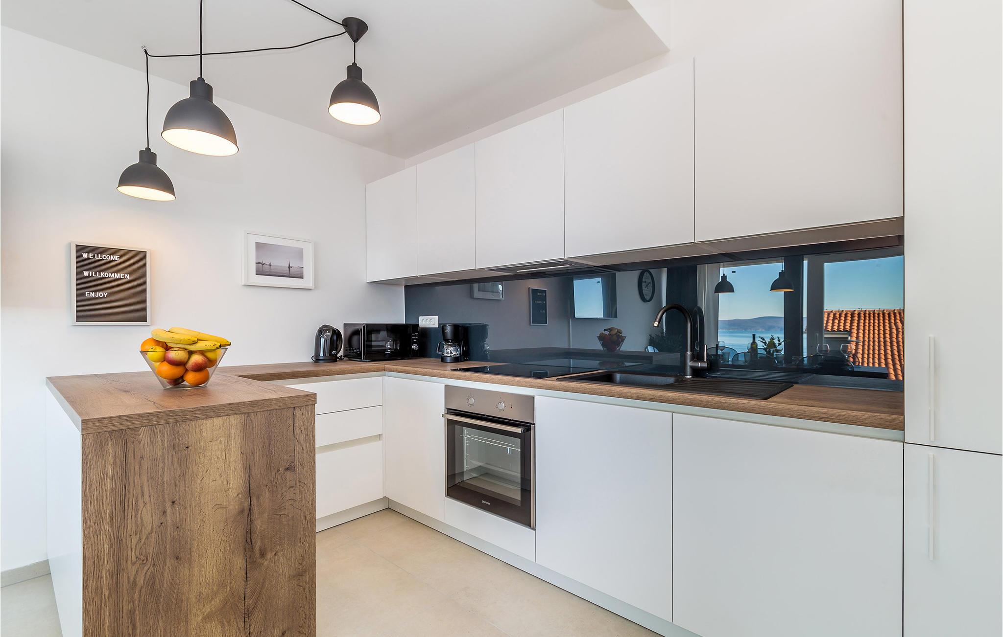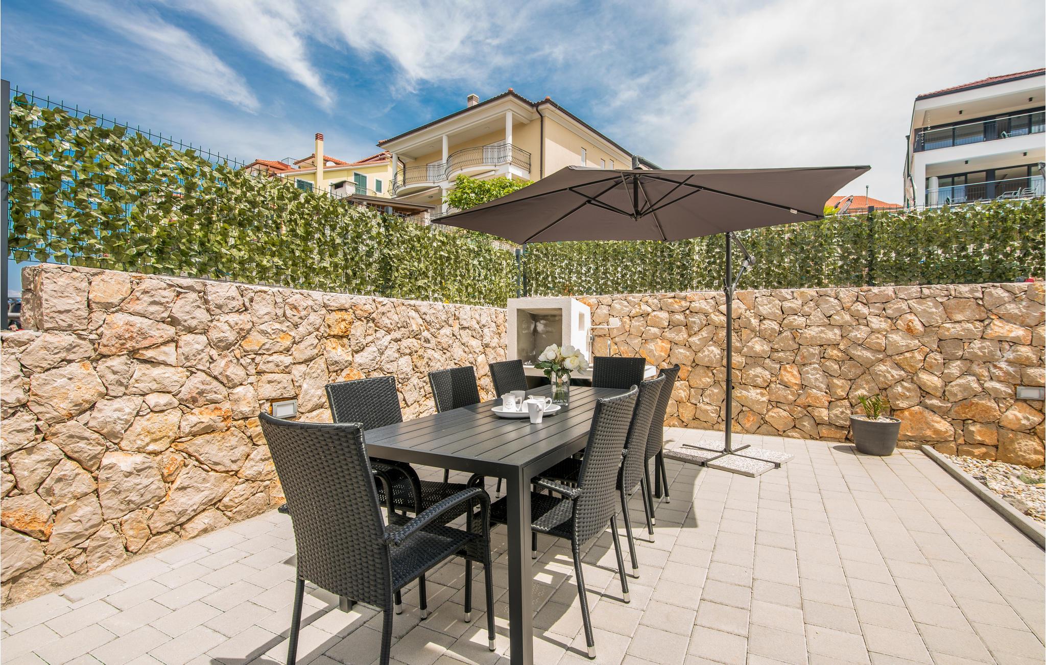 Huset består af en stueetage og en første sal samt en smuk tagterrasse med soldæk og pool. Indgangen til huset er på bagsiden af ??bygningen, hvor der er to parkeringspladser. Haven er indhegnet og ligger på samme niveau som stueetagen, hvor der er et soveværelse med eget badeværelse. I haven er der en murstensgrill med plads til udendørs madlavning. Ovenpå er der en rummelig stue med køkken og to soveværelser med badeværelser. På tagterrassen finder du et opholdsområde ved poolen og et soldæk med liggestole. Alle detaljer og udstyr inde og ude er omhyggeligt designet til at fylde dit ophold med fred, nydelse og afslapning. Stenstranden ligger ca. 300 m væk og kan nås til fods. På øen Krk kan de aktive feriegæster forvente en fantastisk ferie. Der er promenader, kilometerlange cykel- og løbestier, der fører gennem det smukke landskab; en ideel måde at opdage den fantastiske naturskønhed på.