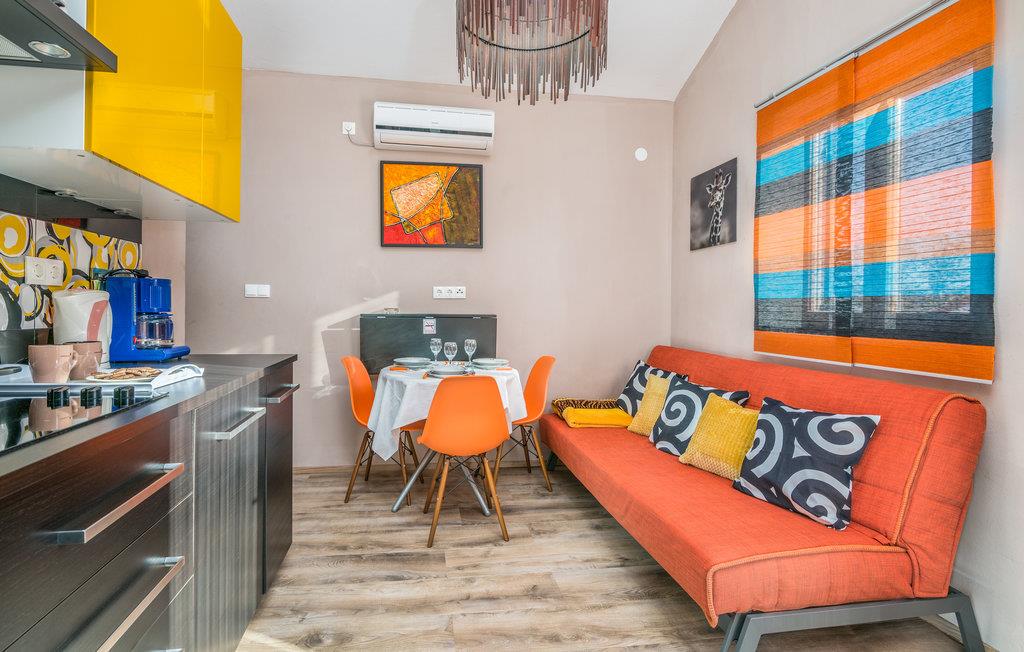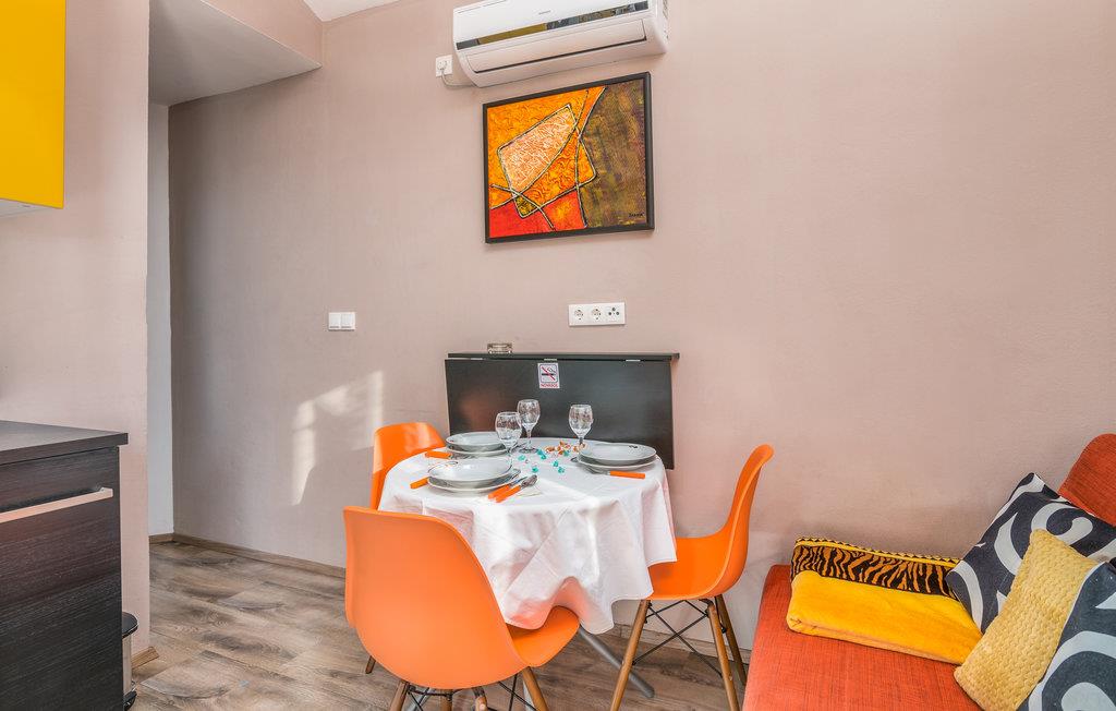 Denne smukke lejlighed er lys og moderne og tilbyder plads i 1 soveværelse og 1 badeværelse. På den overdækkede terrasse kan du tilbringe dejlige øjeblikke i den friske luft og planlægge dagens aktiviteter. På varme dage sikrer klimaanlægget behagelige temperaturer i lejligheden. Takket være satellit-tv er der garanteret underholdning.