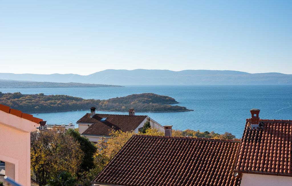 Rummelig lejlighed med panoramaudsigt over havet fra terrassen.