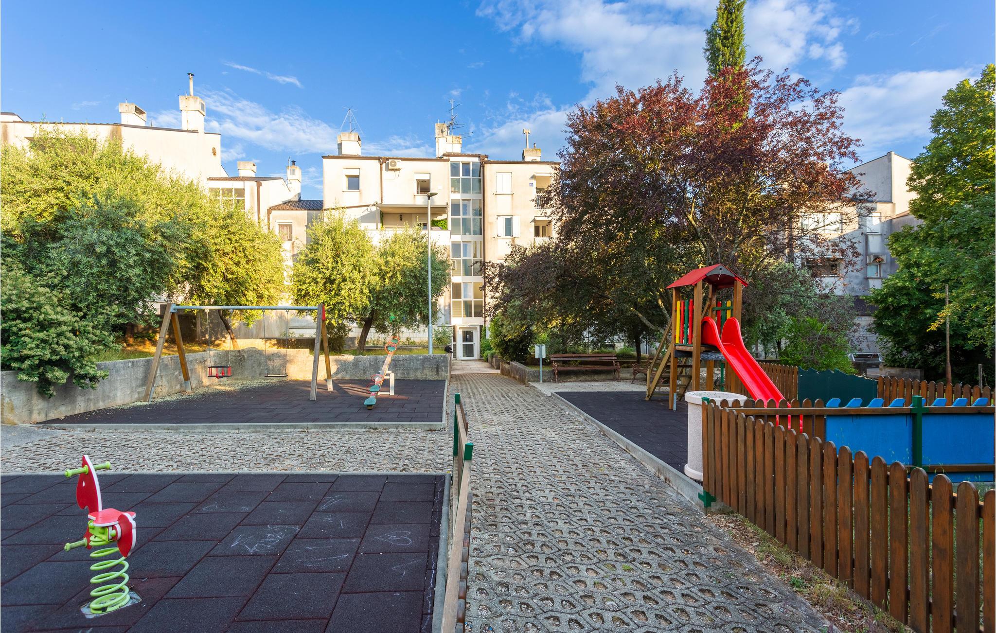 Velkommen til denne praktiske lejlighed i Njivice. Kom her med jeres elskede eller jeres lille familie og tilbring en ubekymret ferie i denne kompakte lejlighed. Lejligheden er udstyret med alt hvad I behøver for at have det godt og slappe af. Slap af på jeres tagterrasse om aftenen, nyd et glas vin og se ud over øens tage og landskab. Der er også en stor legeplads for børn, hvor jeres barn kan blive venner med nabobørnene. Gå til stenstranden få hundrede meter væk og nyd havet. Udforsk denne øs kulturarv og oplev aktive ferier, wakeboarding i Punta, gokart i Krk eller vandre- og cykelstier. Oplev smukke strande og besøg Vrbnik og den lille ø Kosljun. Besøg vinkældrene og smag traditionelle retter i en af de mange restauranter på øen. Tilbring en vidunderlig ferie på Krk!