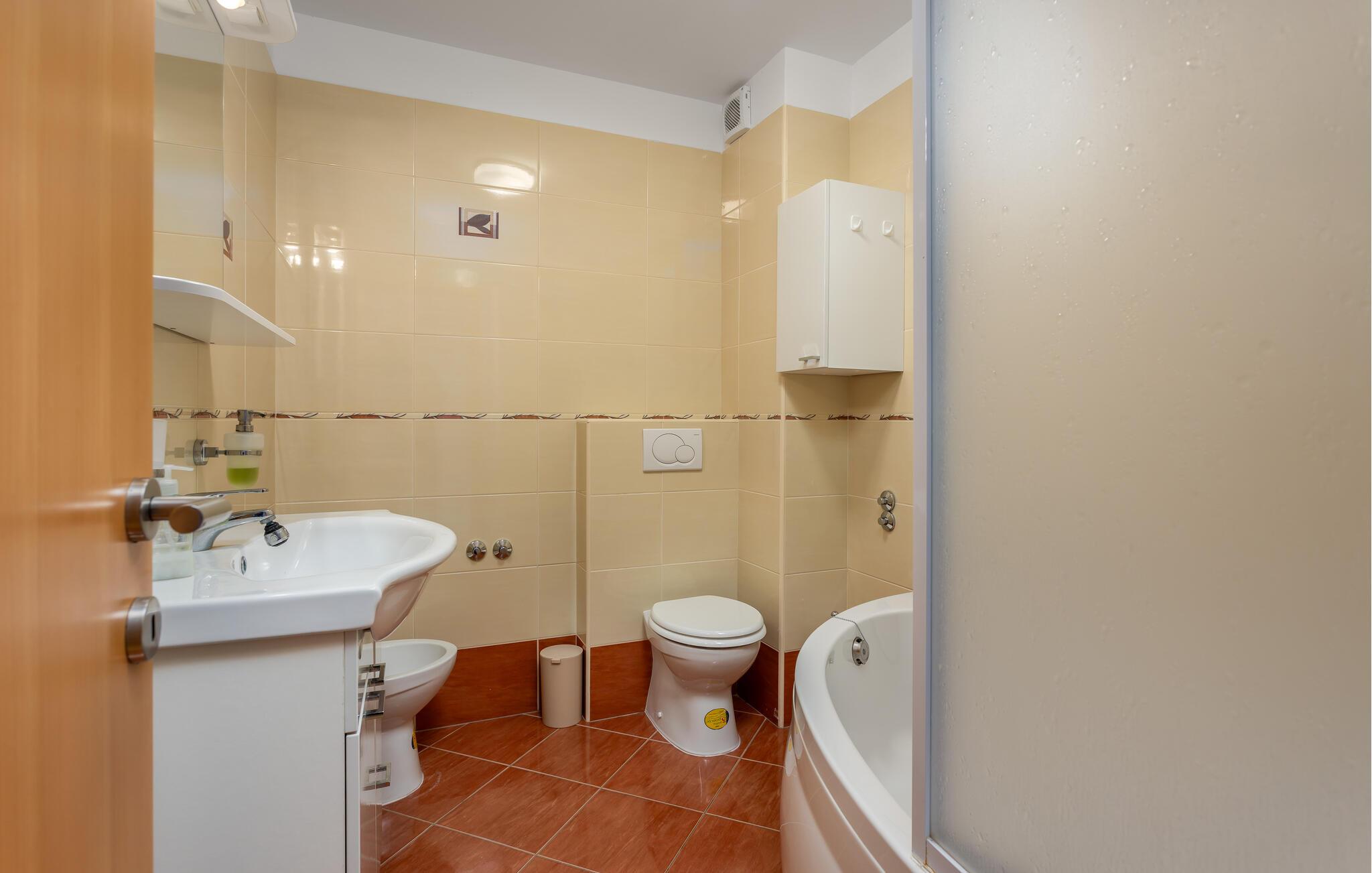 Badeværelse 4m2 (nr. 3) - WC. Varmt og koldt vand. Badekar