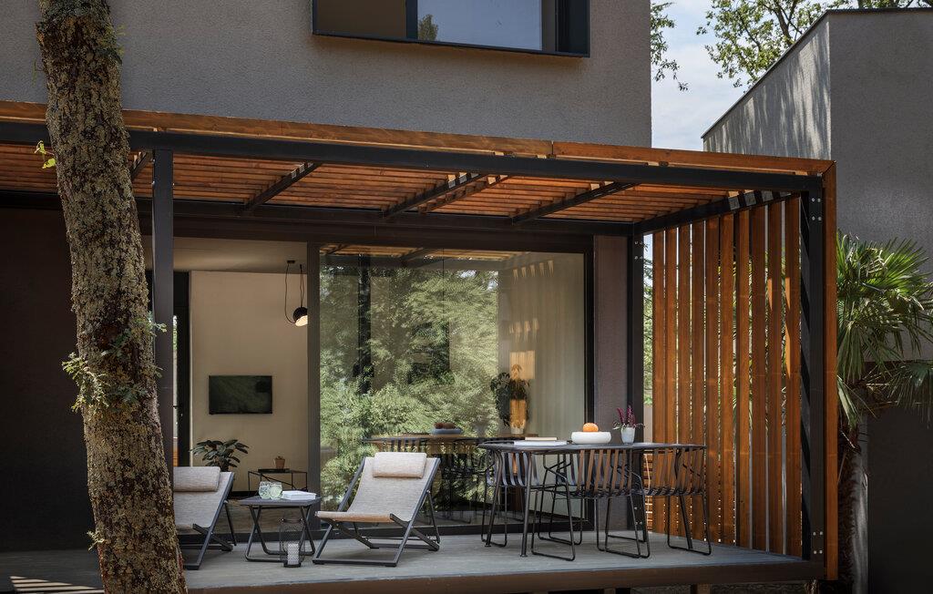 Den åbne terrasse lægger op til masser af tid udendørs – uanset om I læser, snakker eller nyder en stille aften i den friske luft. Tag en dukkert i den fælles pool, nyd en forfriskende svømmetur eller spil vandpolo med børnene.