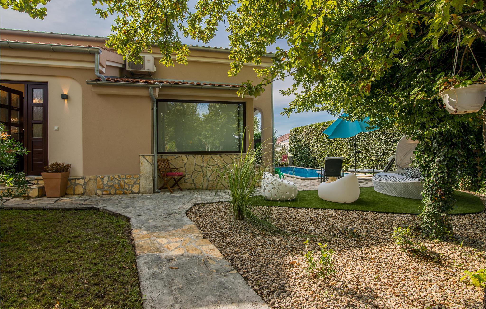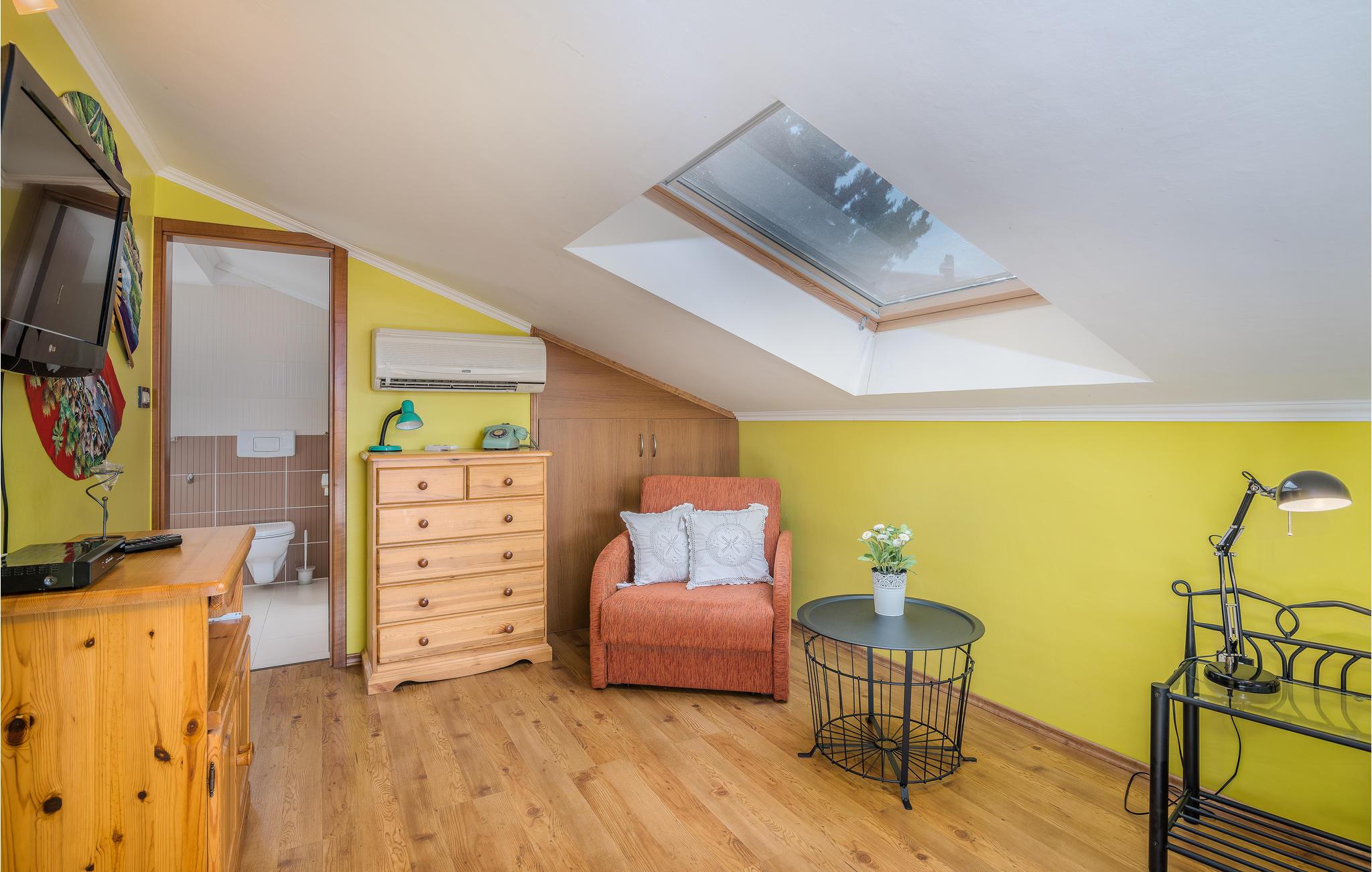 Dette venlige feriehus ligger i den forhenværende fiskerlandsby Njivice på øen Krk, der er vokset til en velrenommeret ferieby. Huset ligger dog i en mere rolig del af landsbyen, uden at være langt fra centrum og strandene. Der er en stejl trappe op til loftet, med laveste loftshøjde på 80 cm, hvor der er yderligere et soveværelse og badeværelse. I souterrain kan I tilbringe hyggelige stunder i fællesskab i opholdsrummet. Der ligger endnu en lille bungalow med køkken, badeværelse og stue på grunden. Forfrisk jer i poolen og slap af i solen, mens jeres børn leger.