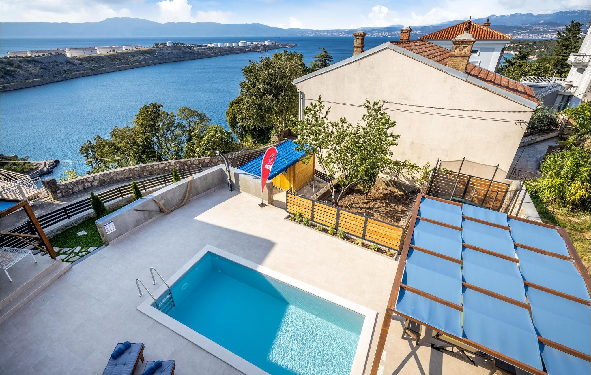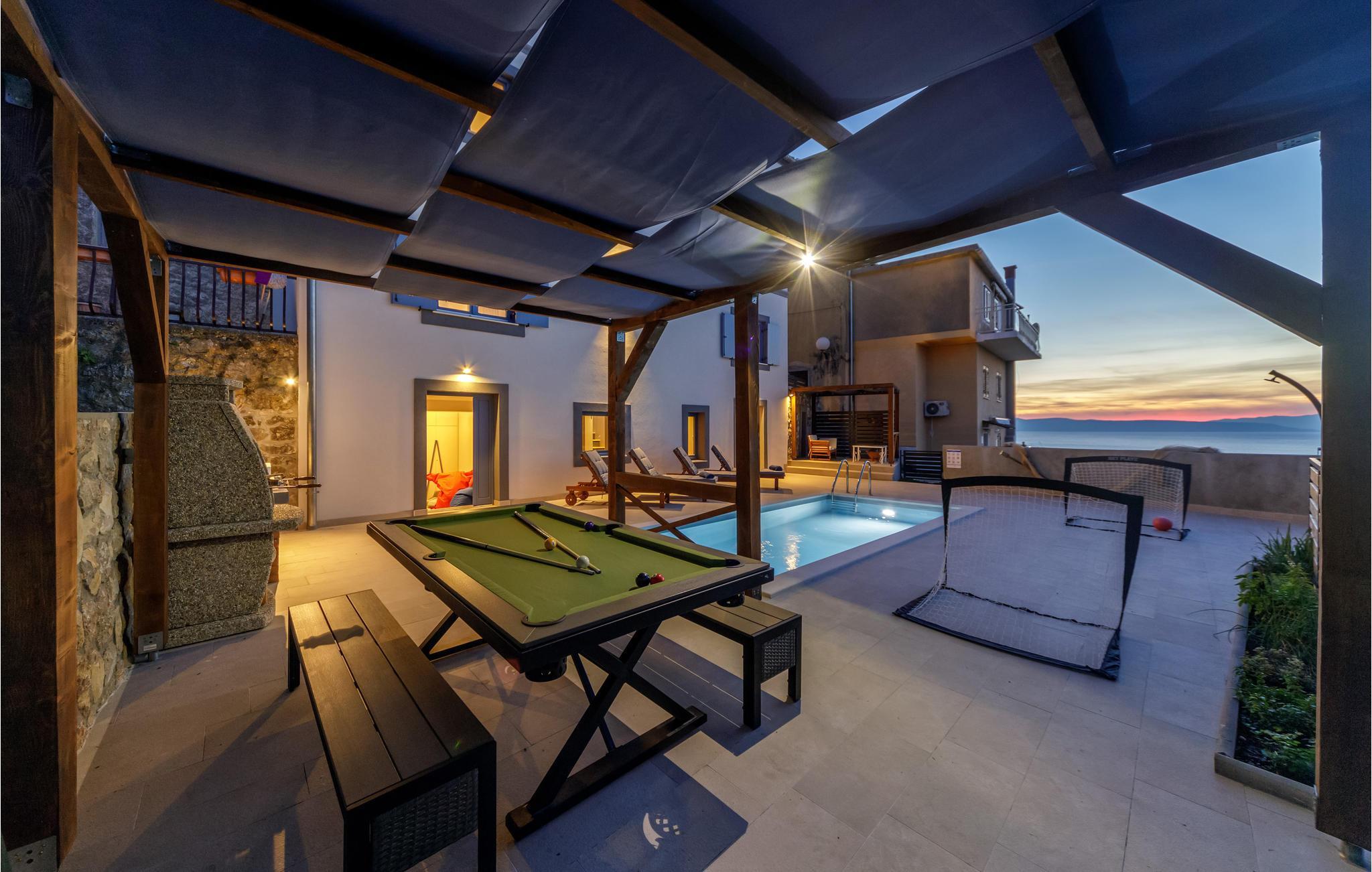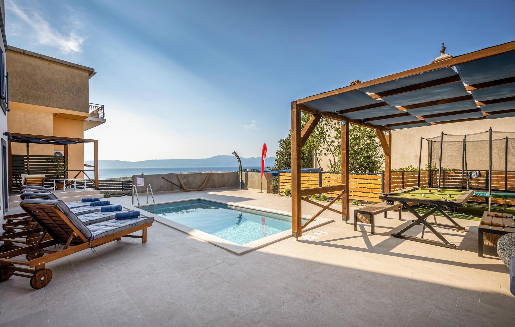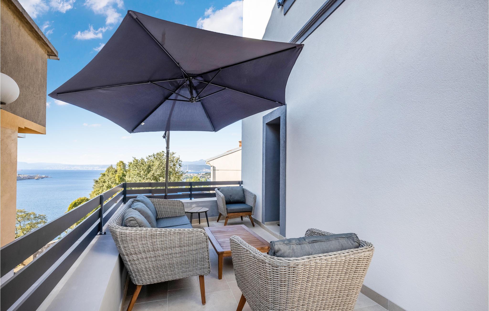 Dette moderne feriehus ligger i udkanten af ??den gamle bydel i Omisalj i en rolig, høj beliggenhed med en smuk udsigt.
