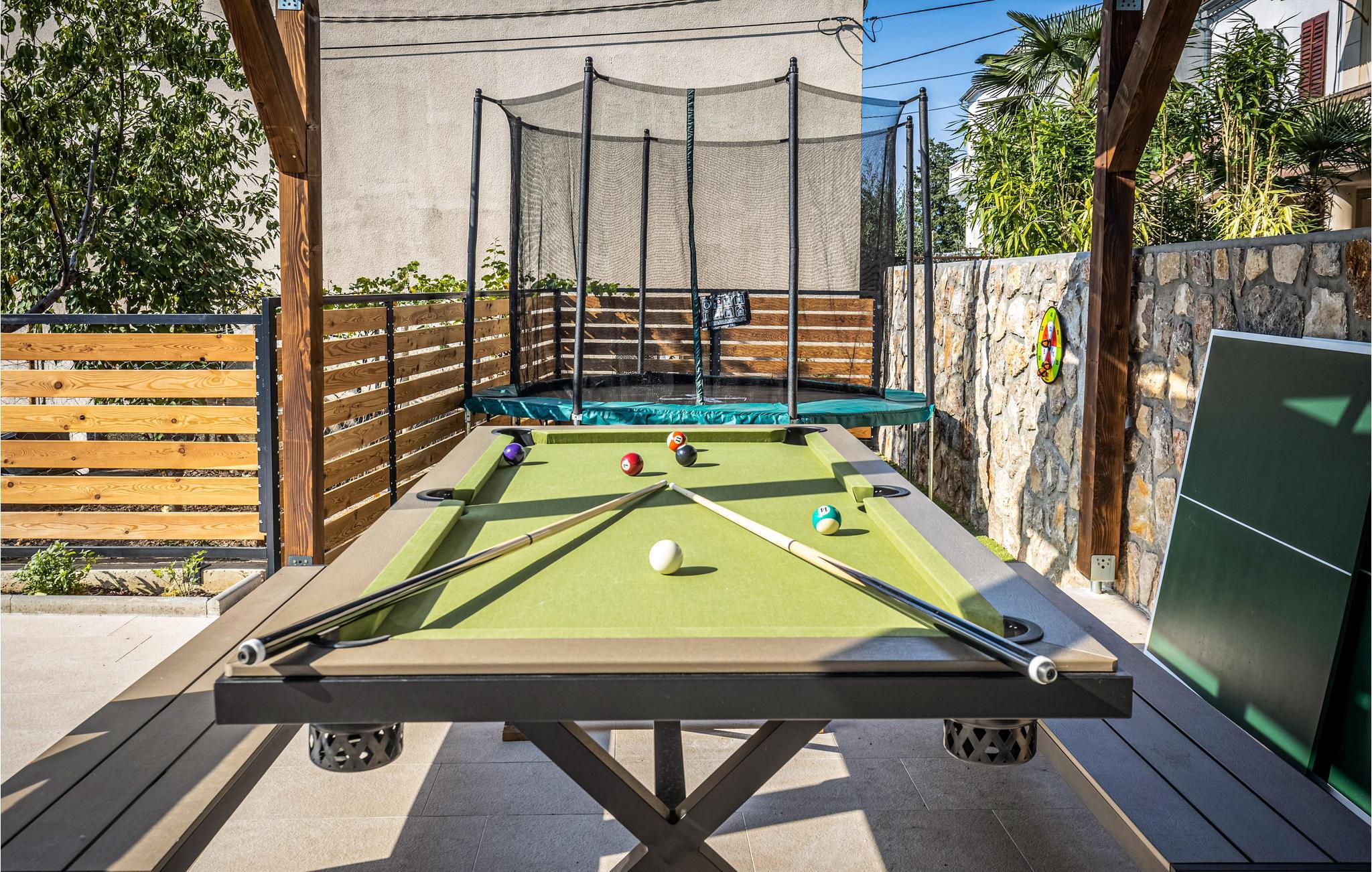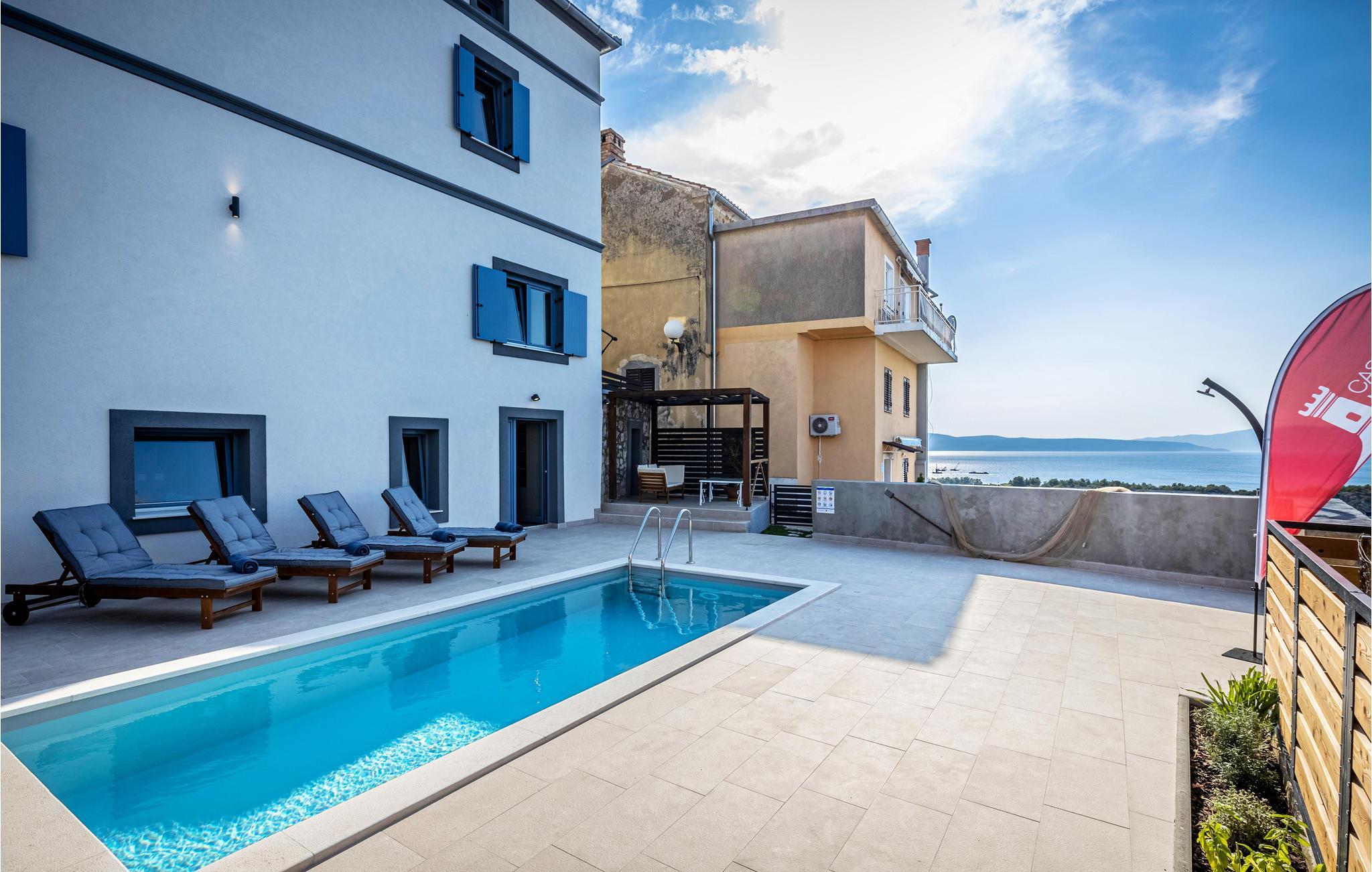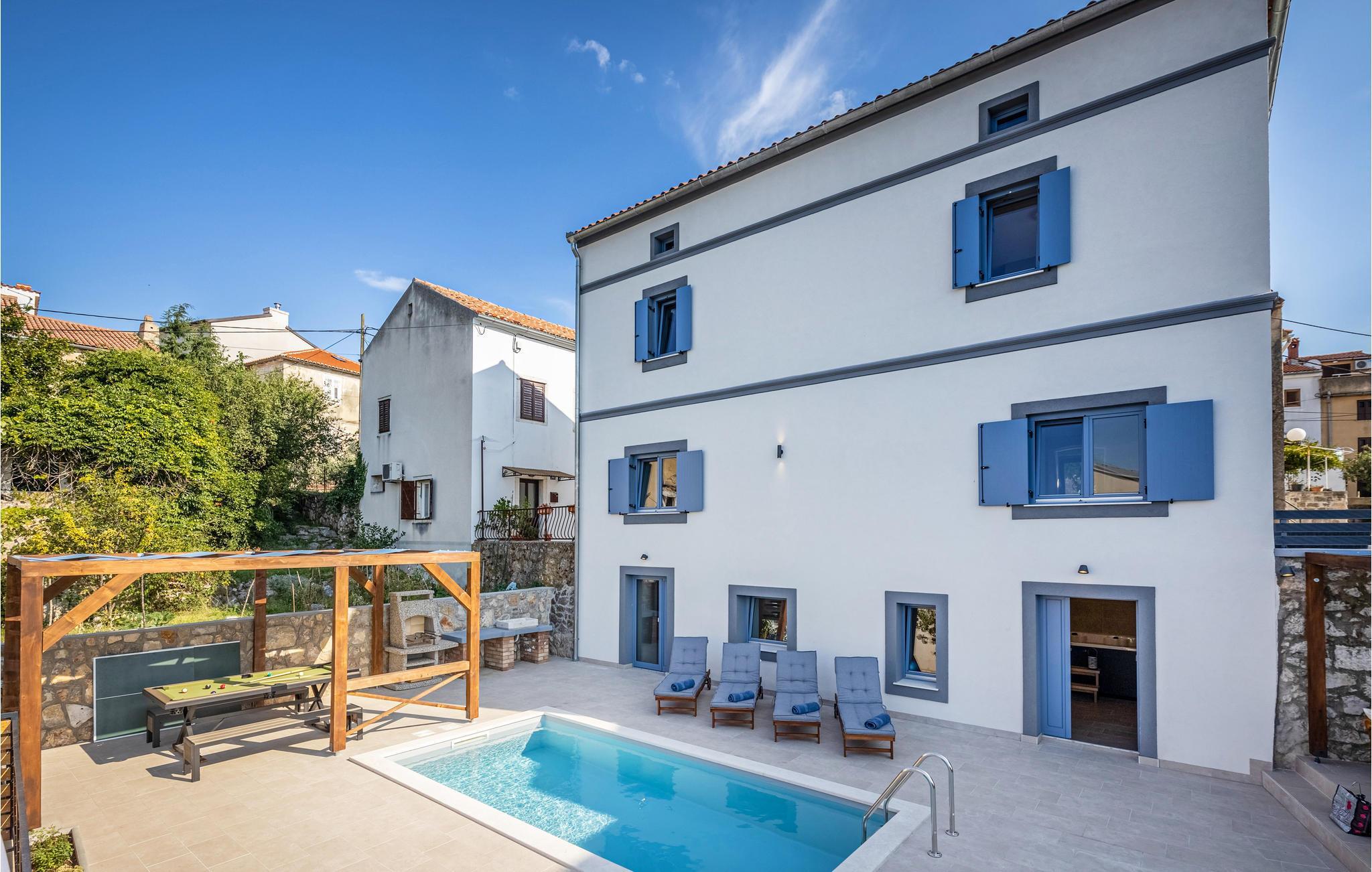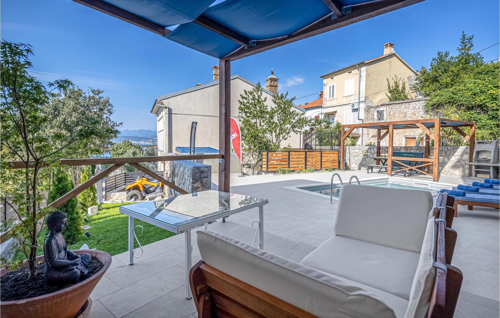 Dette moderne feriehus ligger i udkanten af ??den gamle bydel i Omisalj i en rolig, høj beliggenhed med en smuk udsigt.
