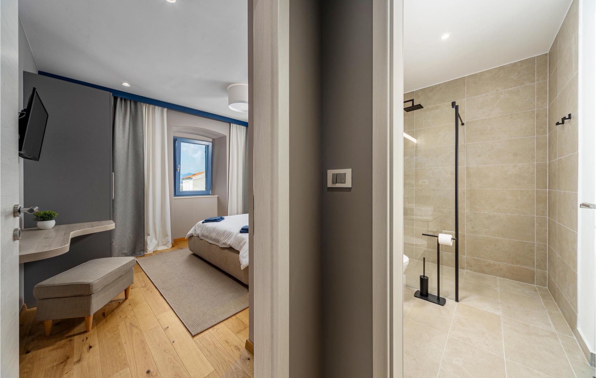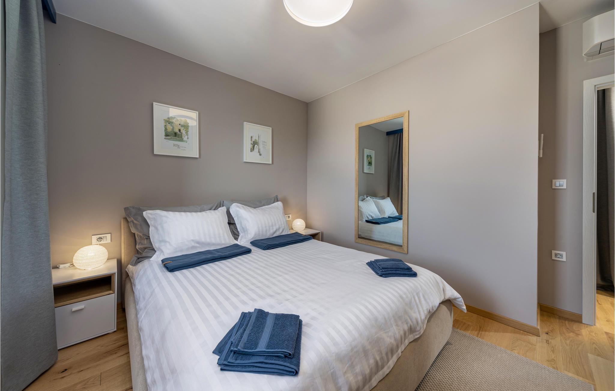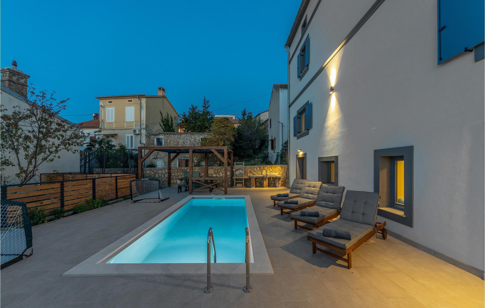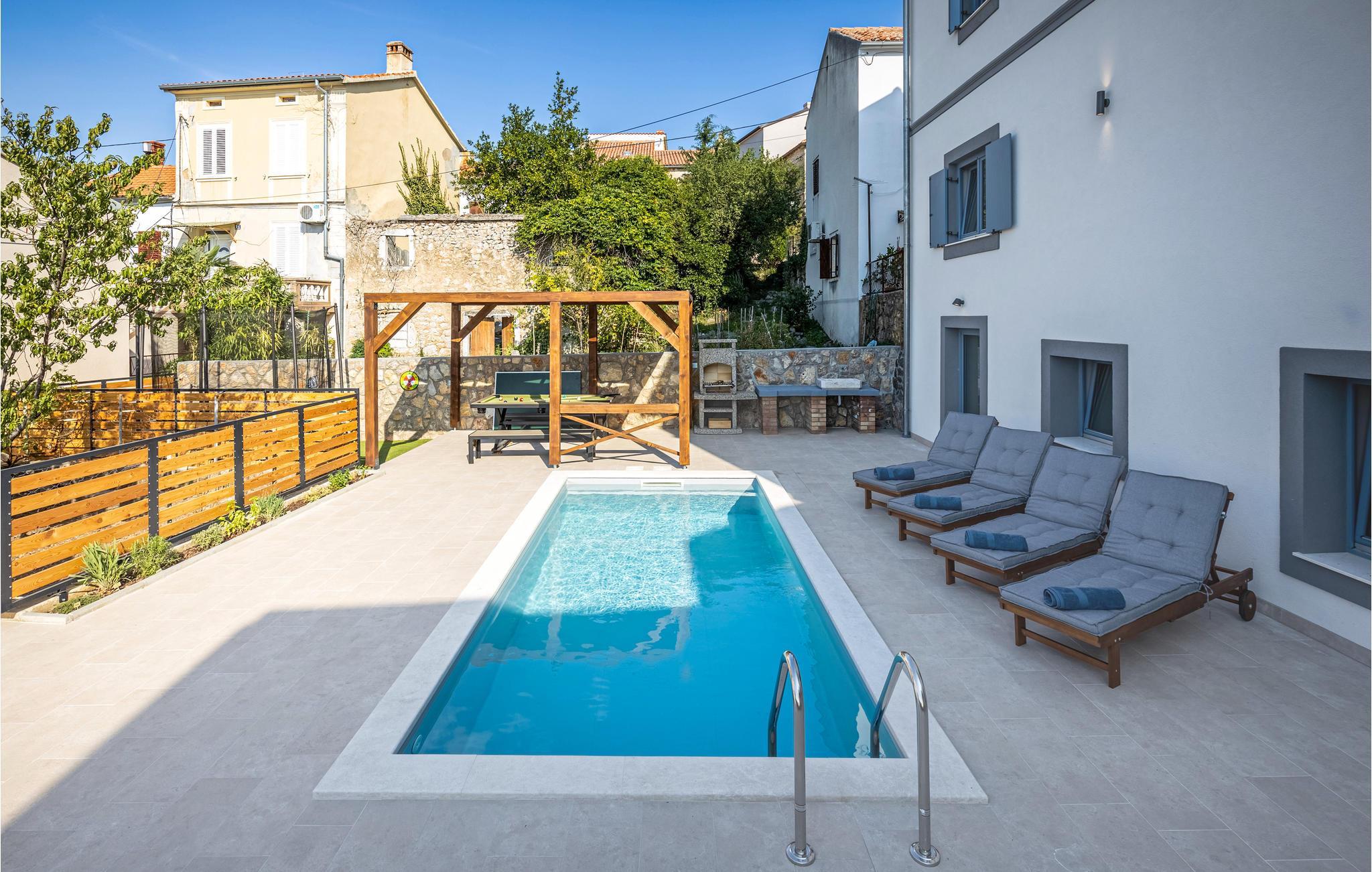 Dette moderne feriehus ligger i udkanten af ??den gamle bydel i Omisalj i en rolig, høj beliggenhed med en smuk udsigt.