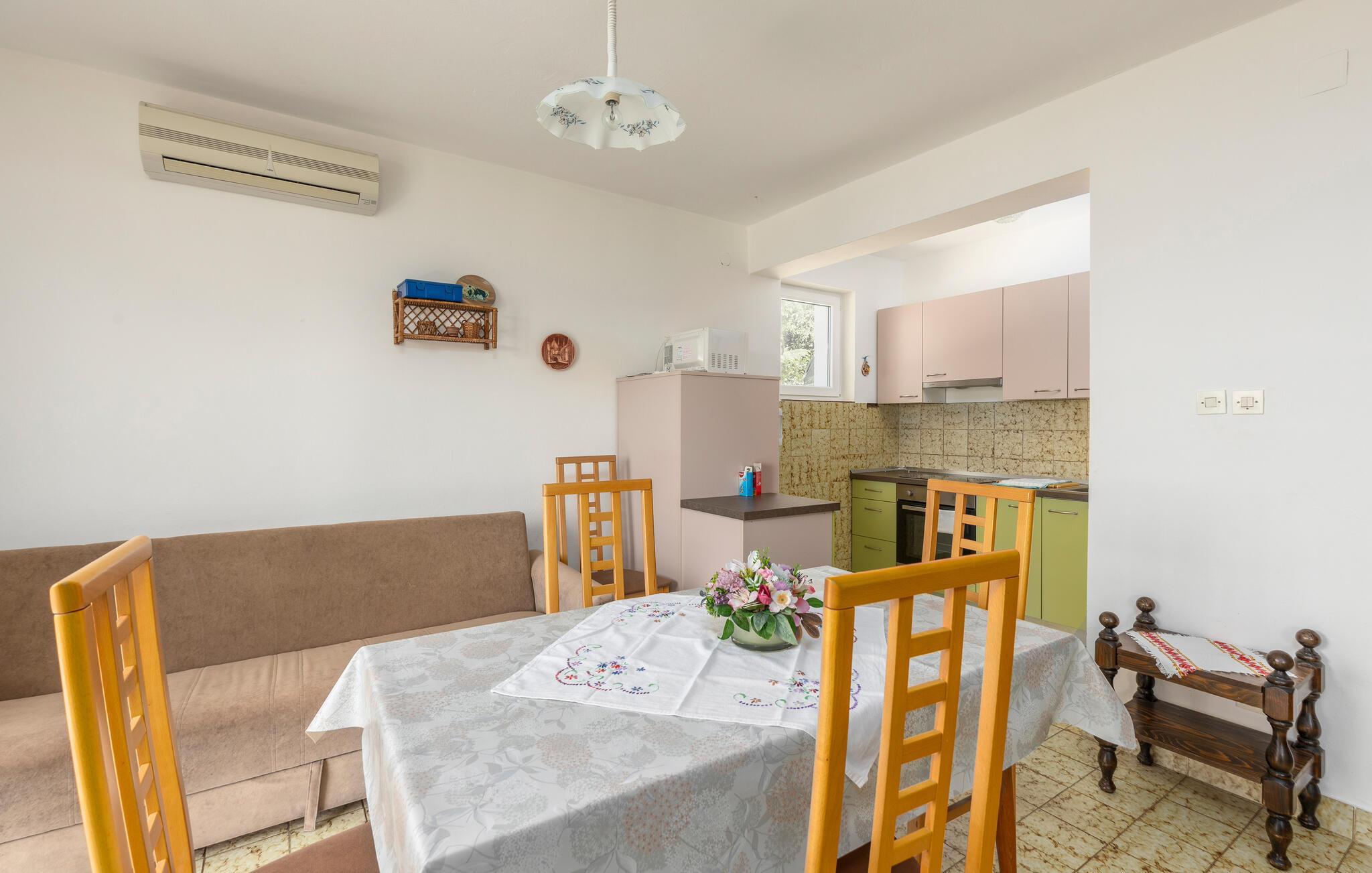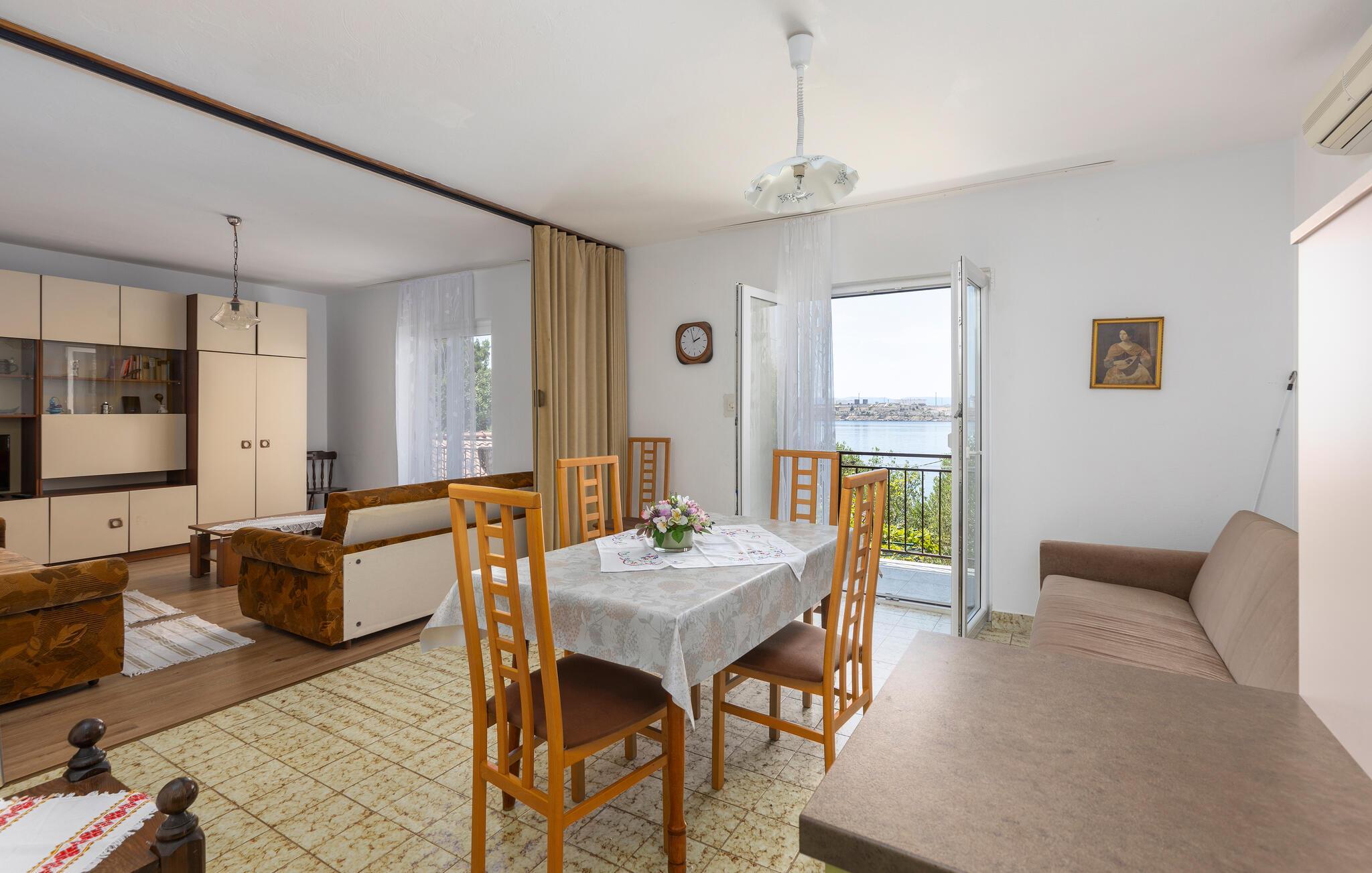 Velkommen til jeres praktiske og funktionelle ferielejlighed med udsigt over havet. Huset indeholder flere ferieboliger og ligger lige ved siden af stranden. Indenfor møder I en hjemlig stemning, hvor I kan nyde jeres feriedage til fulde. Lejligheden har alt, hvad I behøver for en solskinsferie i Kroatien. Hvis I rejser flere familier sammen, kan I afhængigt af tilgængelighed leje flere lejligheder.