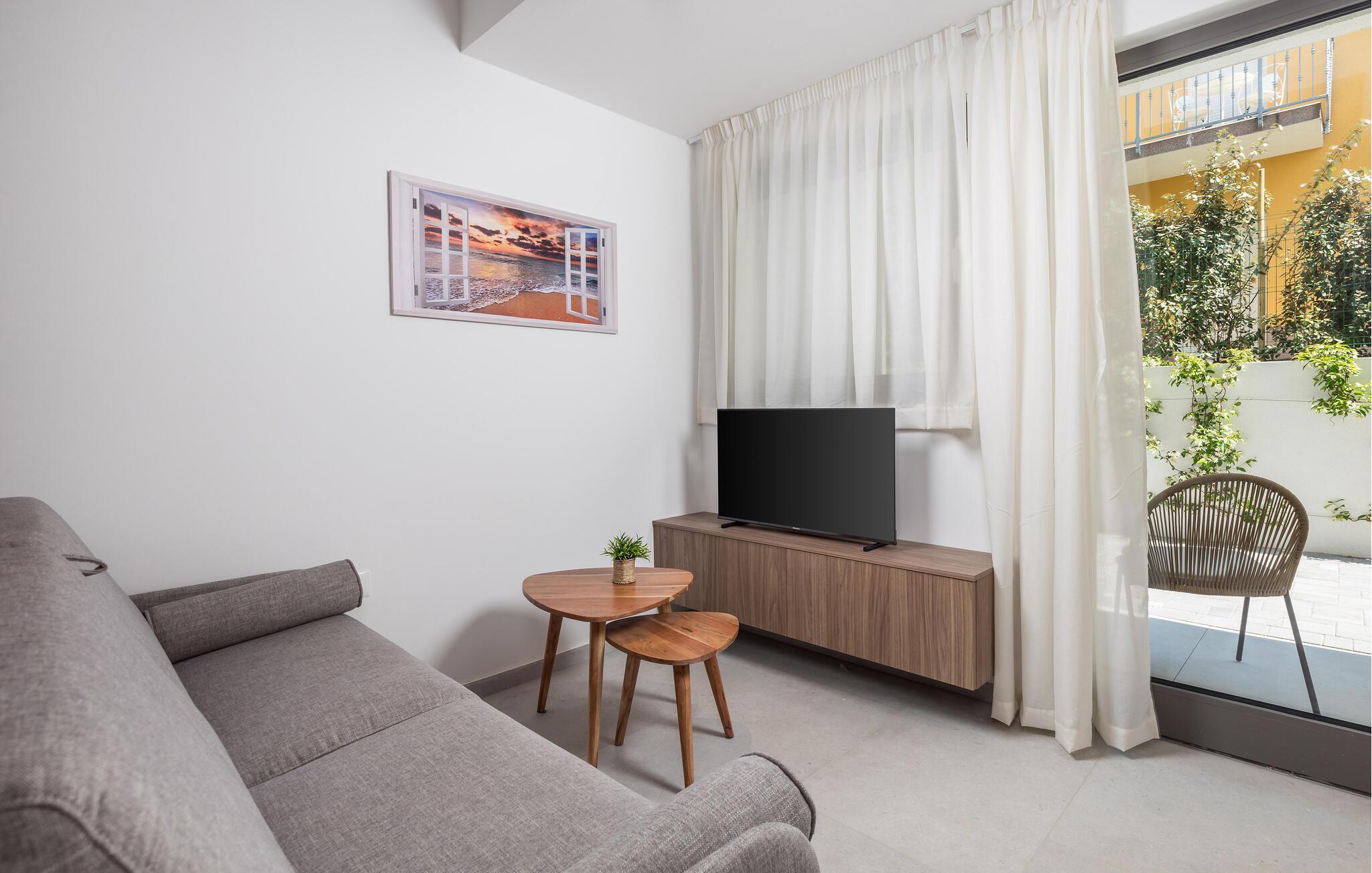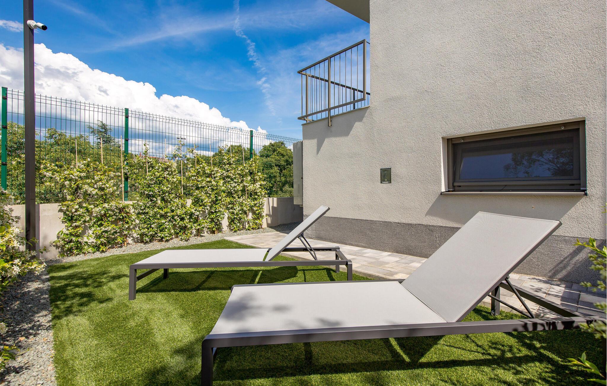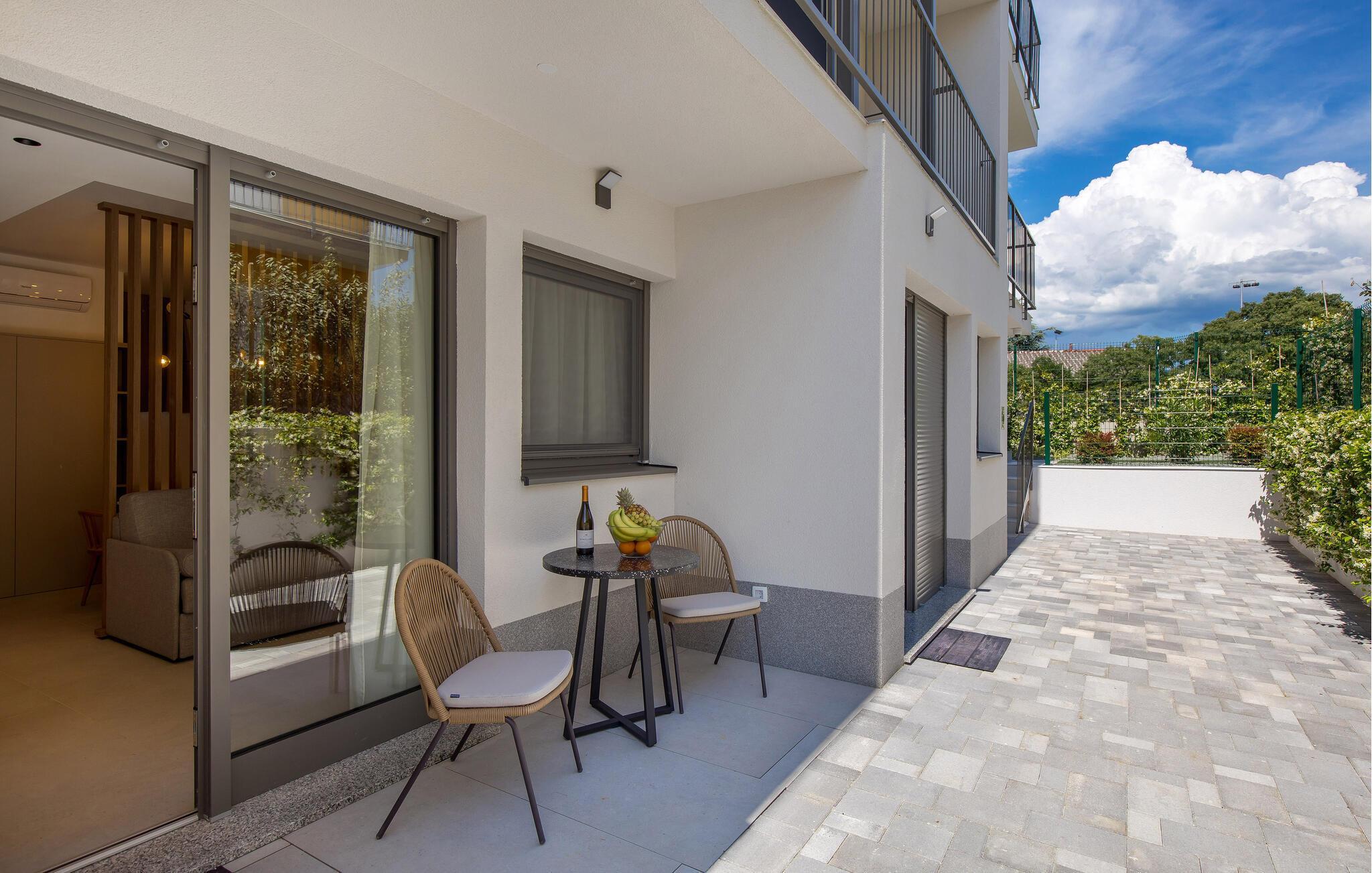 Glæd jer til denne luksuslejlighed med privat have og opvarmet fælles pool.