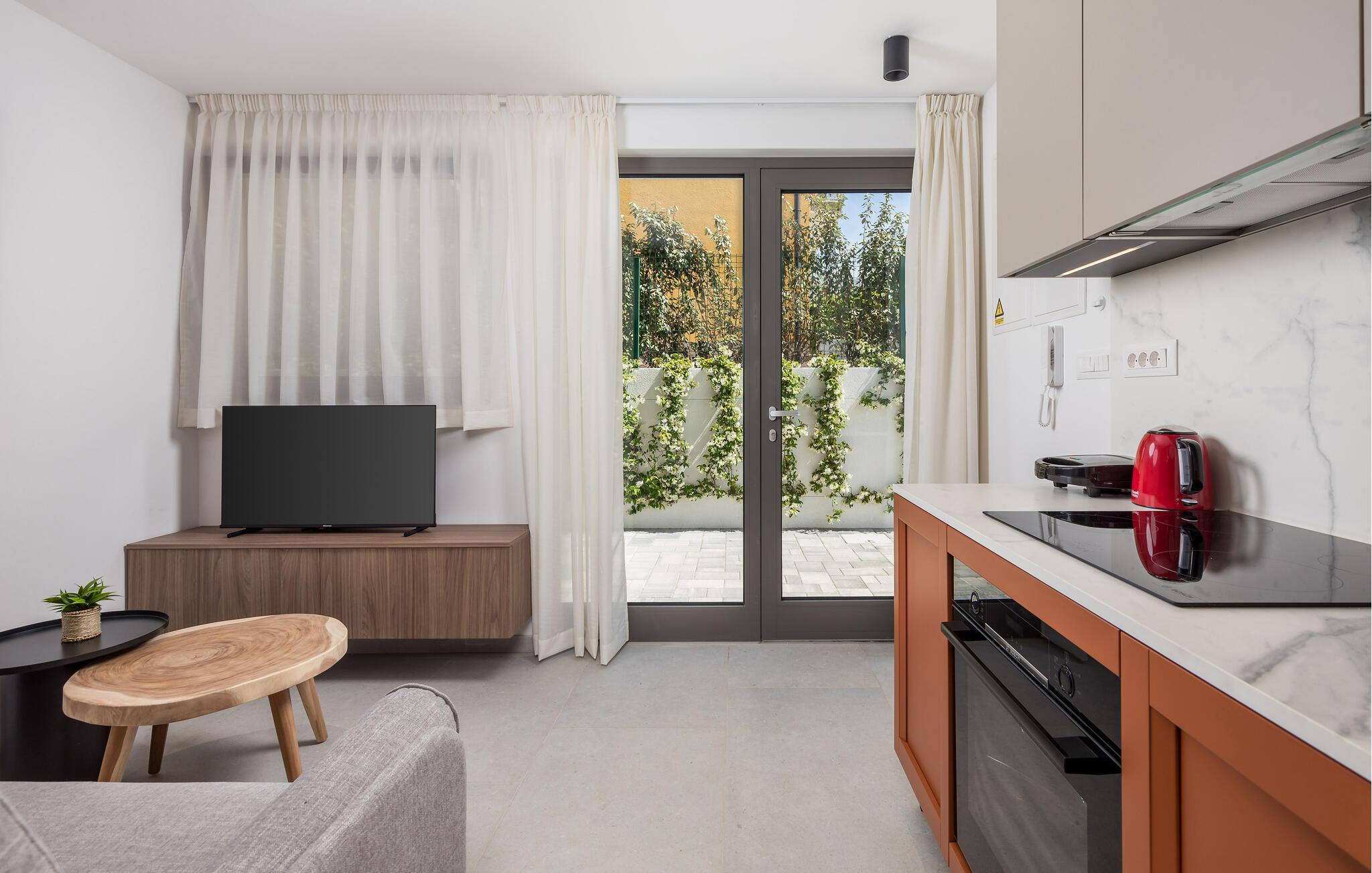 Tilbring jeres ferie i denne luksuslejlighed med privat haveområde og opvarmet fælles pool.