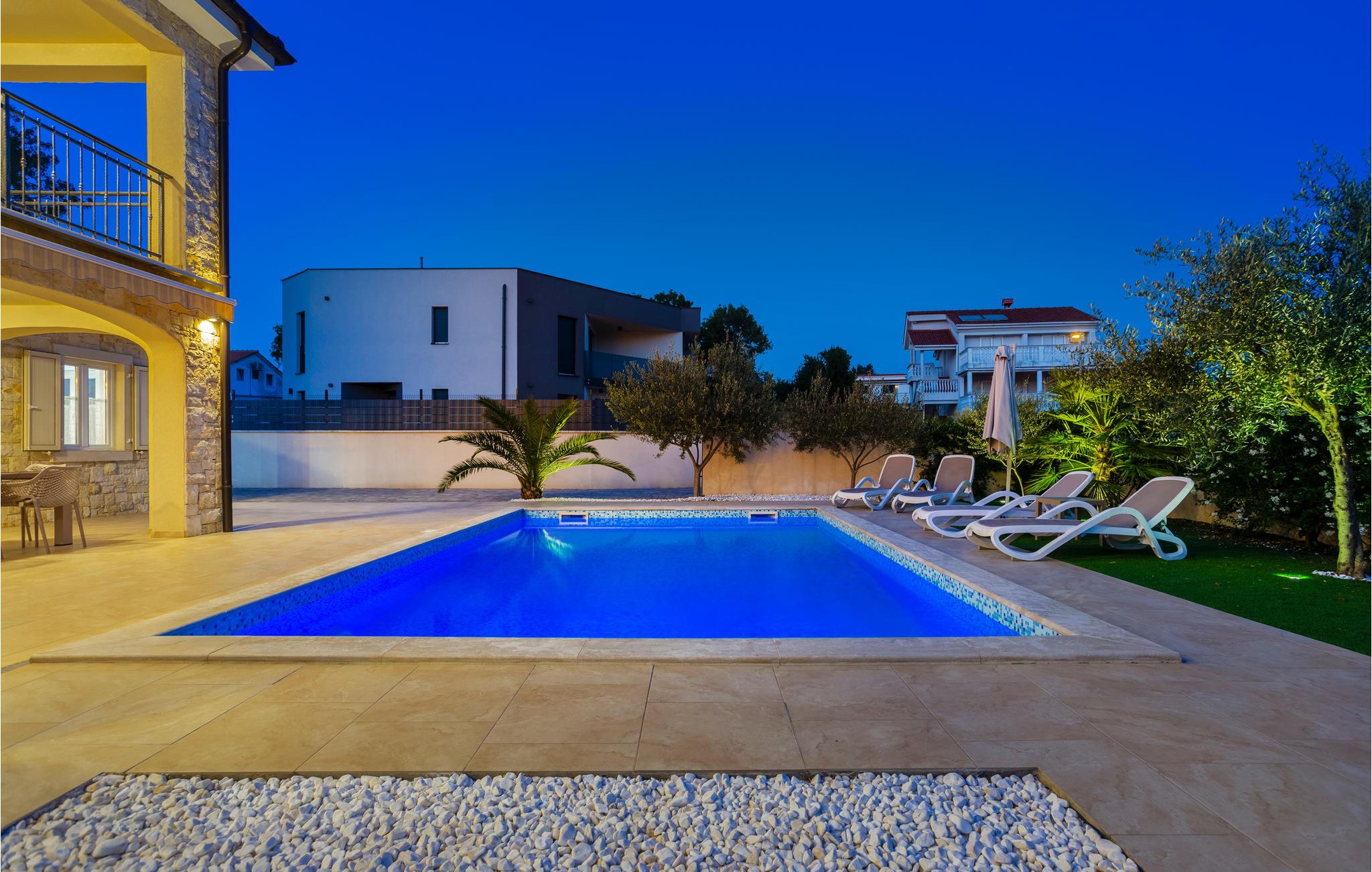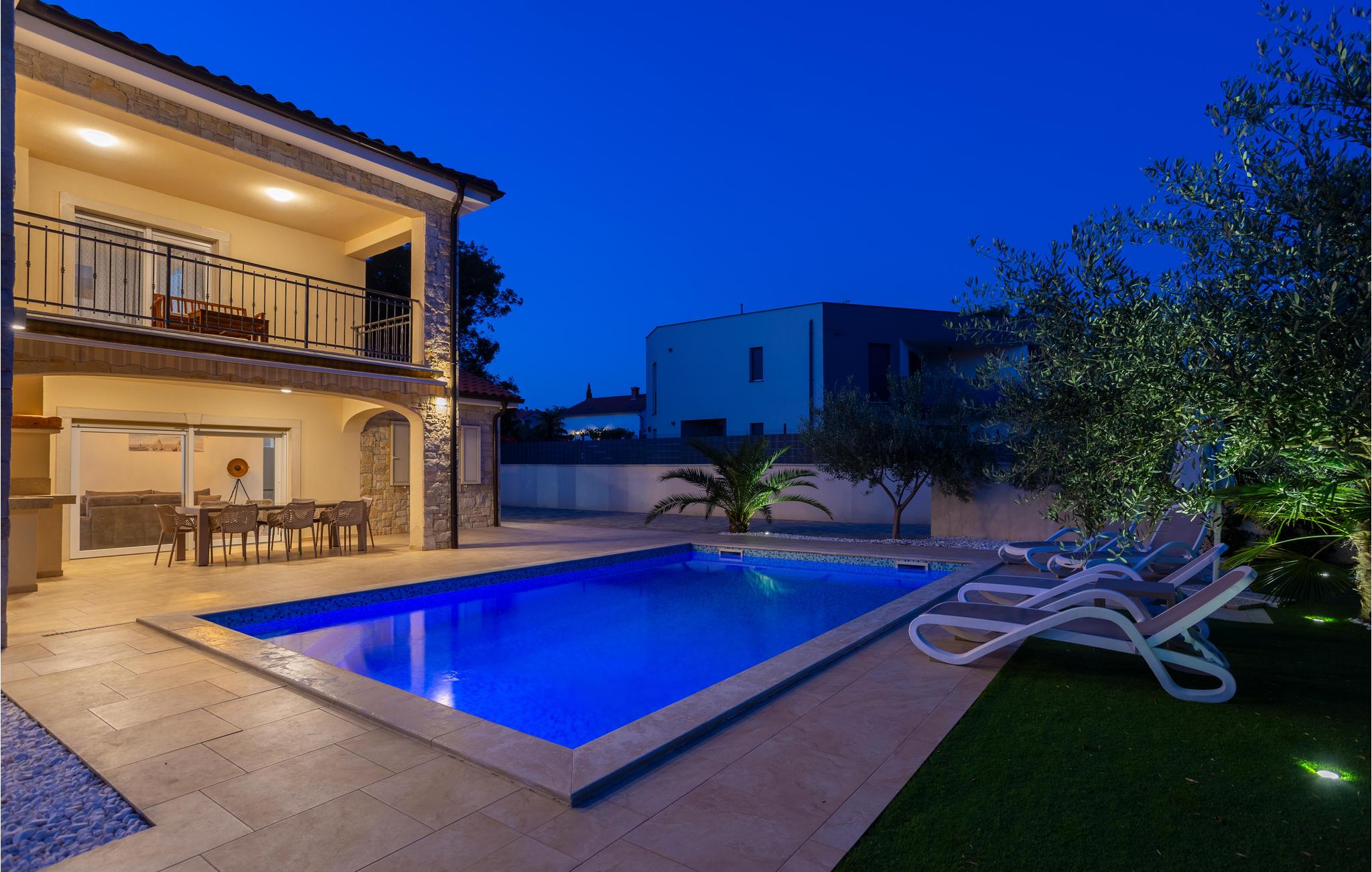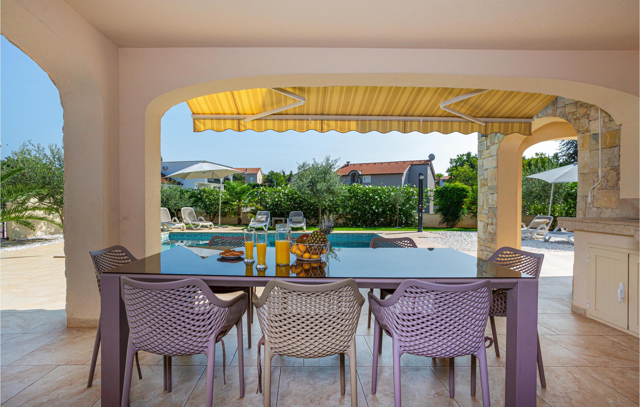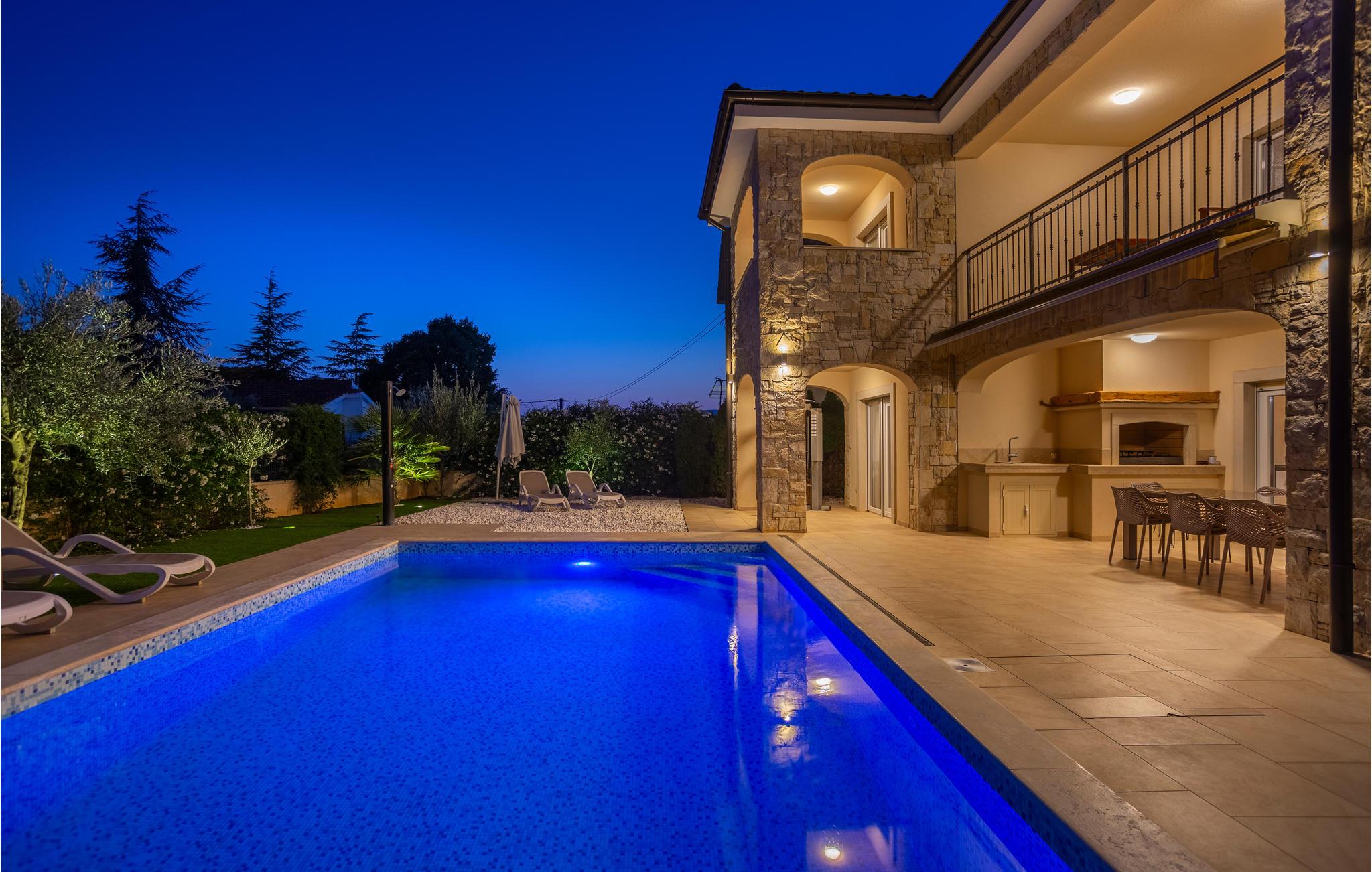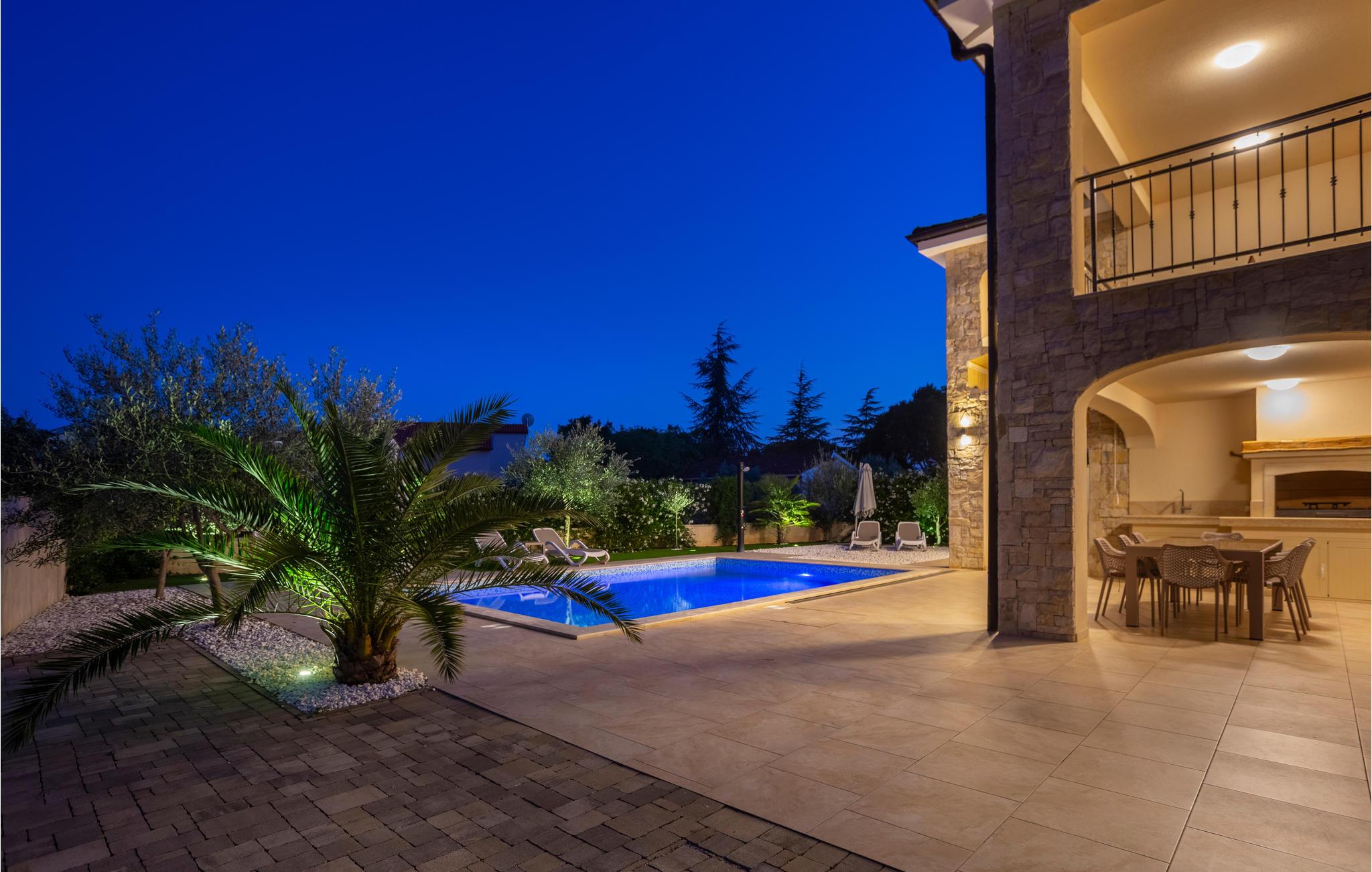Men det er ikke kun selve huset, I vil nyde i stor stil. Haven er nemlig særdeles attraktiv med palmer, oliventræer og en stor pool. Udekøkkenet er aldeles veludstyret, så I behøver ikke lave mad eller grille i huset. I kan se frem til at bade i poolen i mange timer og til blot at slappe af i solen.
