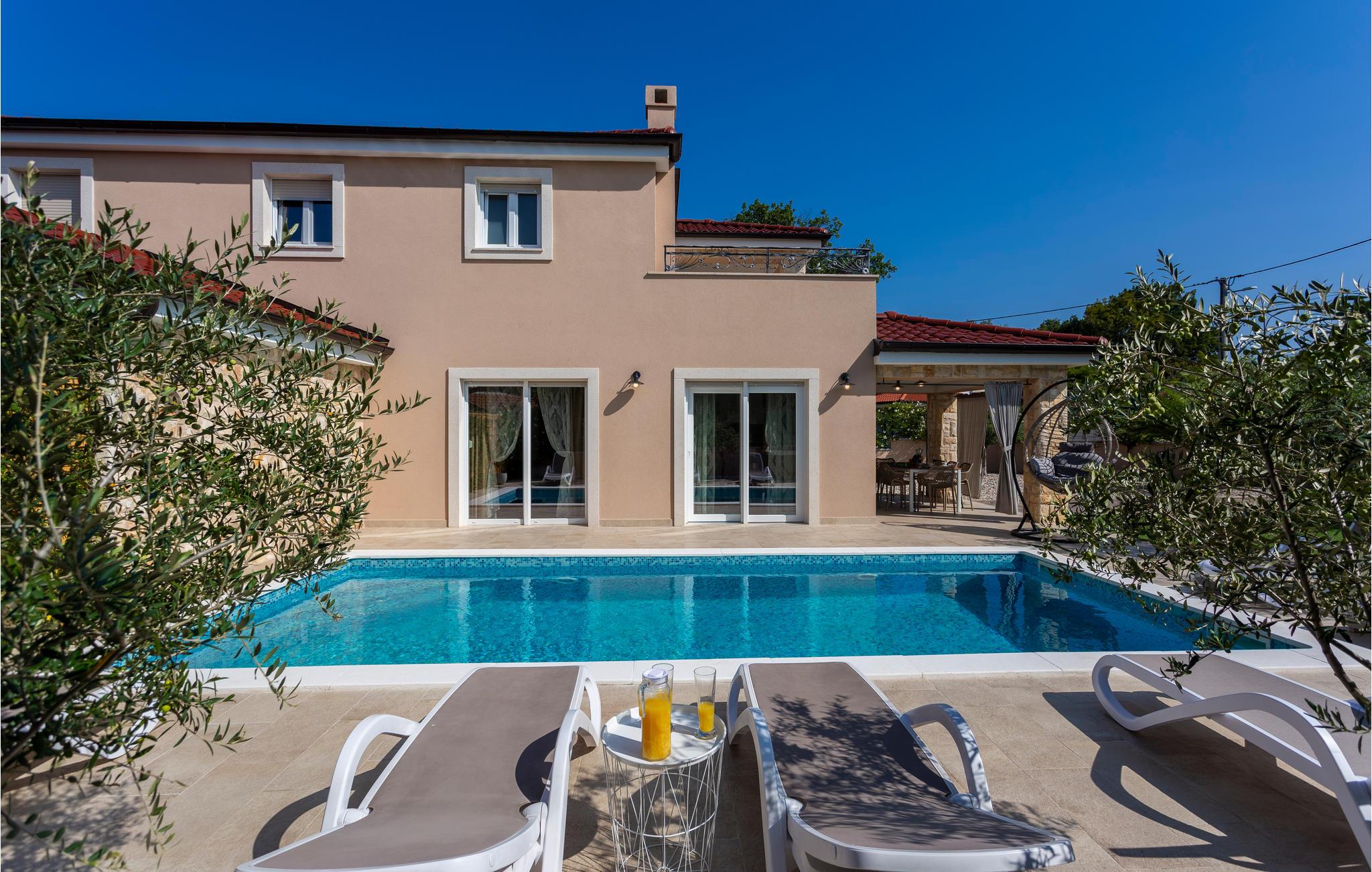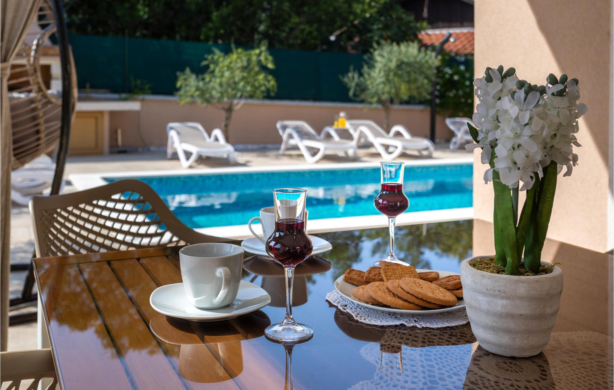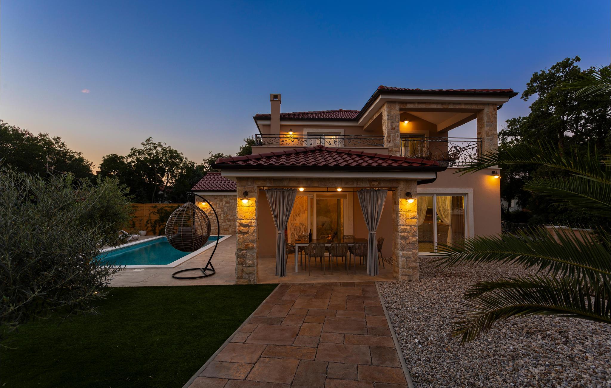 Dette smukke, rustikke hus med swimmingpool ligger i en dejlig beliggenhed i rolige Pinezici. Her kan I udforske stenstrandene i nærheden eller besøge de to sandstrande på øen i Sil og Risika. I kommer til at bo i et smukt landskab, der er velegnet til en aktiv ferie. I kan gå en tur langs de mange promenader, udforske de afmærkede vandrestier eller afprøve en lang række muligheder for sport og andre aktiviteter ved havet. Vi anbefaler jer at besøge den gamle bydel i Krk, som er fuld af charme og historie. Men der er også andre glimrende udflugtsmål tæt på, herunder Vrbnik og dens vingårde, svævebanen i Punat, Amostan på øen Kosljun og olivenoliefabrikken i Punat.