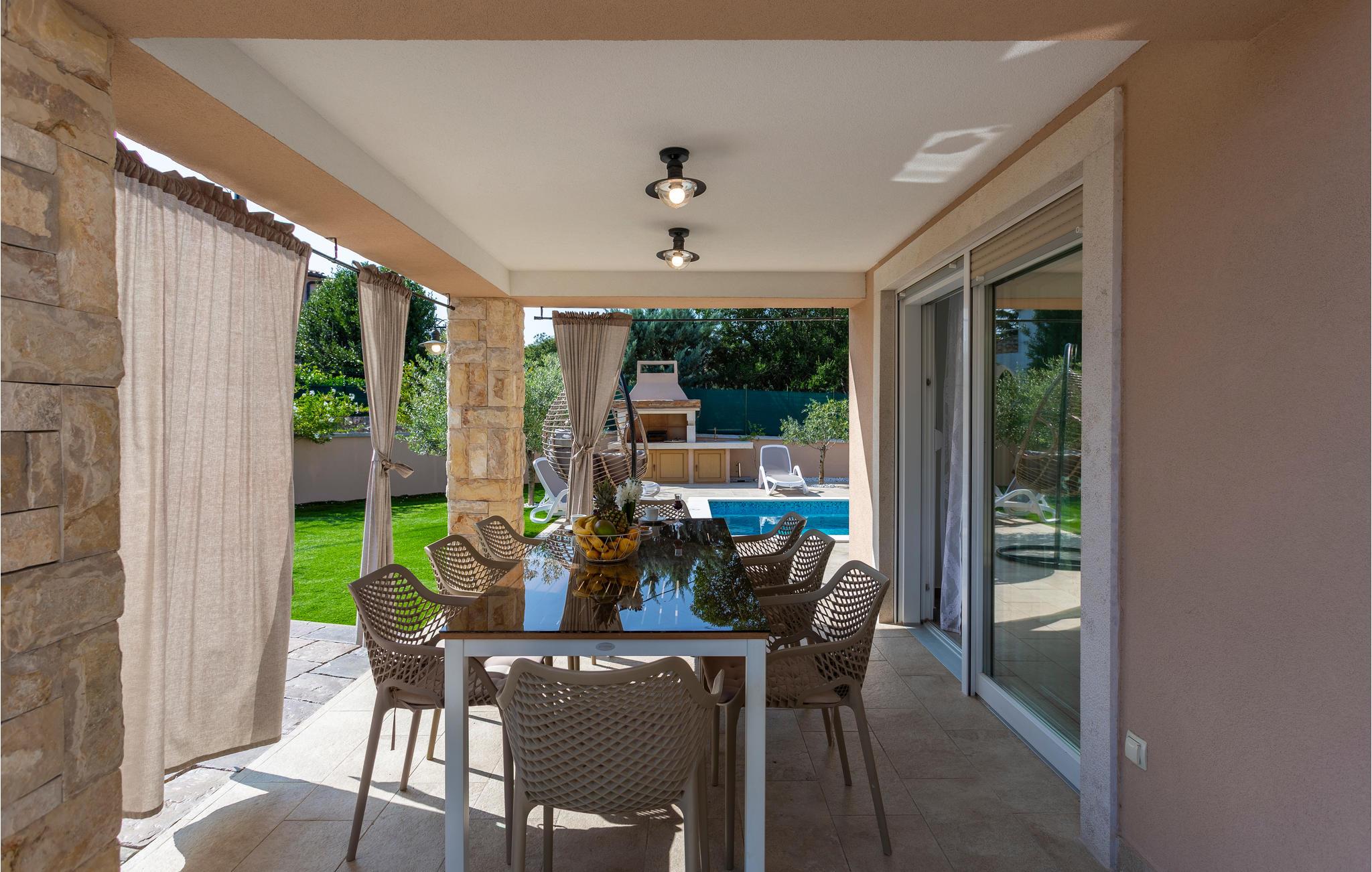 Her kan I holde ferie med jeres udvidede familie eller en vennefamilie, og I vil straks føle jer hjemme her. Smagfulde møbler, en attraktiv indretning og møbler af høj kvalitet skaber en helhedsoplevelse, der ikke lader noget tilbage at ønske. Kan man forestille sig noget bedre end at træde ud af soveværelset ud på altanen eller terrassen, hvor I kan nyde udsigten over landskabet eller svømme dagens første baner i poolen? Næppe. Her vil I bruge en masse dejlig tid sammen udendørs, hvor I kan nyde nogle festlige stunder ved middagsbordet, tage nogle dejlige badeture i vandet og se jeres børn lege rundt på det udendørs areal.