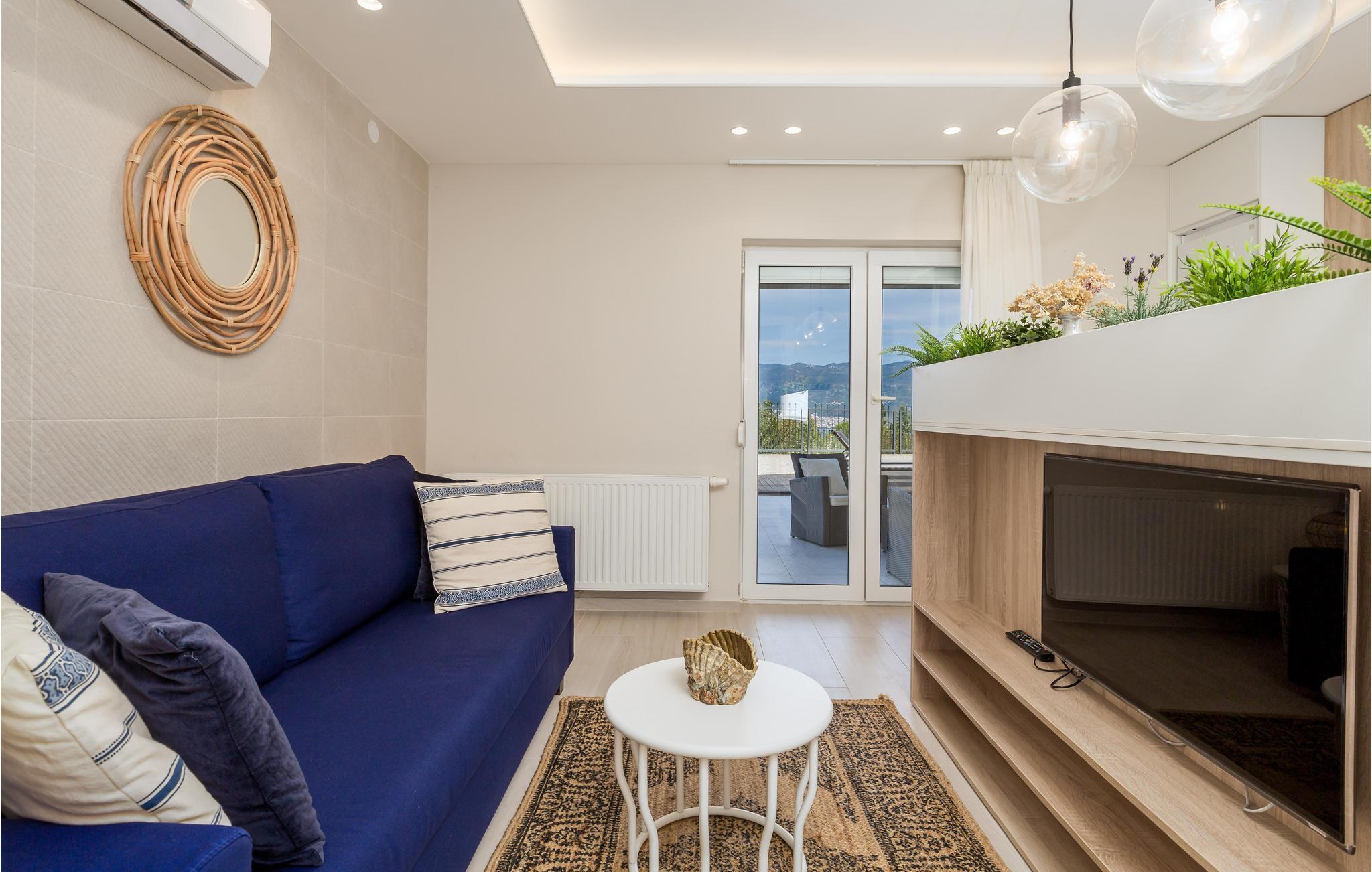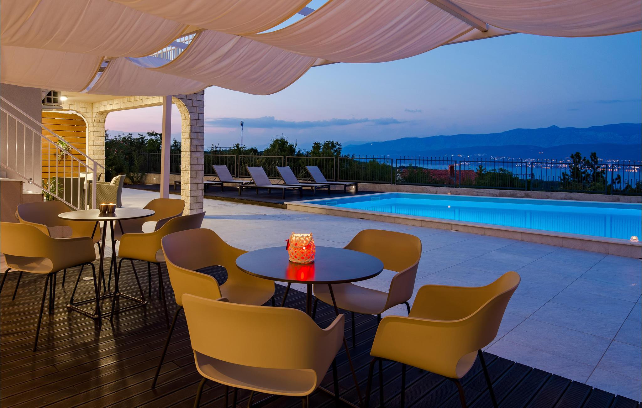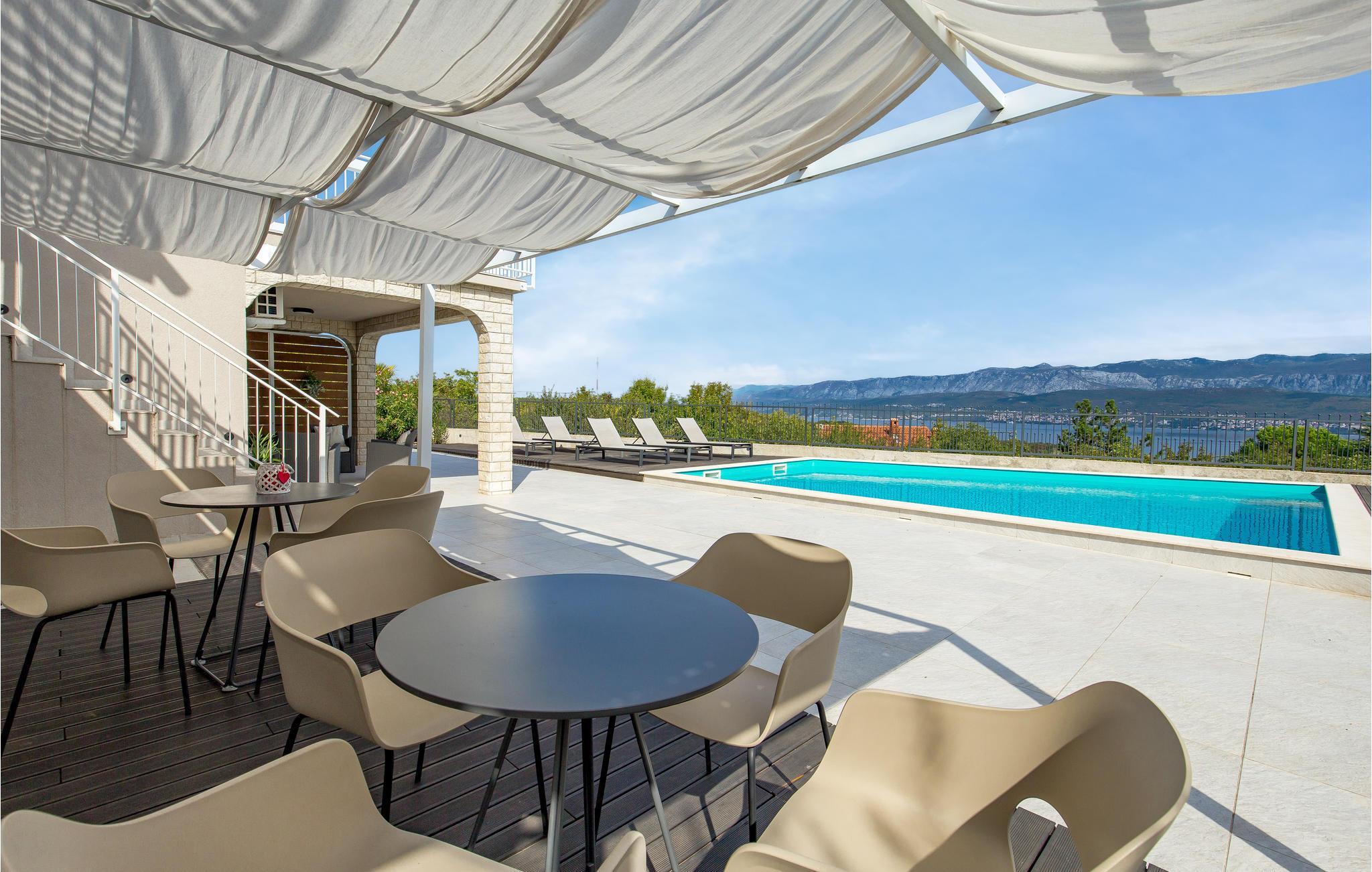 Fra dette feriehus, der ligger i den rolige by Polje på øen Krk, er der en vidunderlig udsigt til havet.