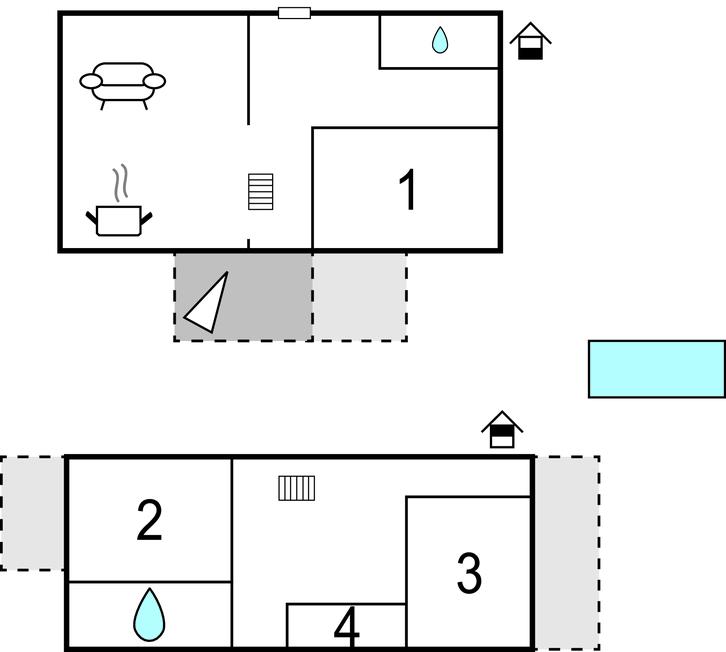 Soveværelse (nr. 1) - 1 Soveplads. (Enkeltseng(e)). 2 Sovepladser. (Dobbeltseng(e)).