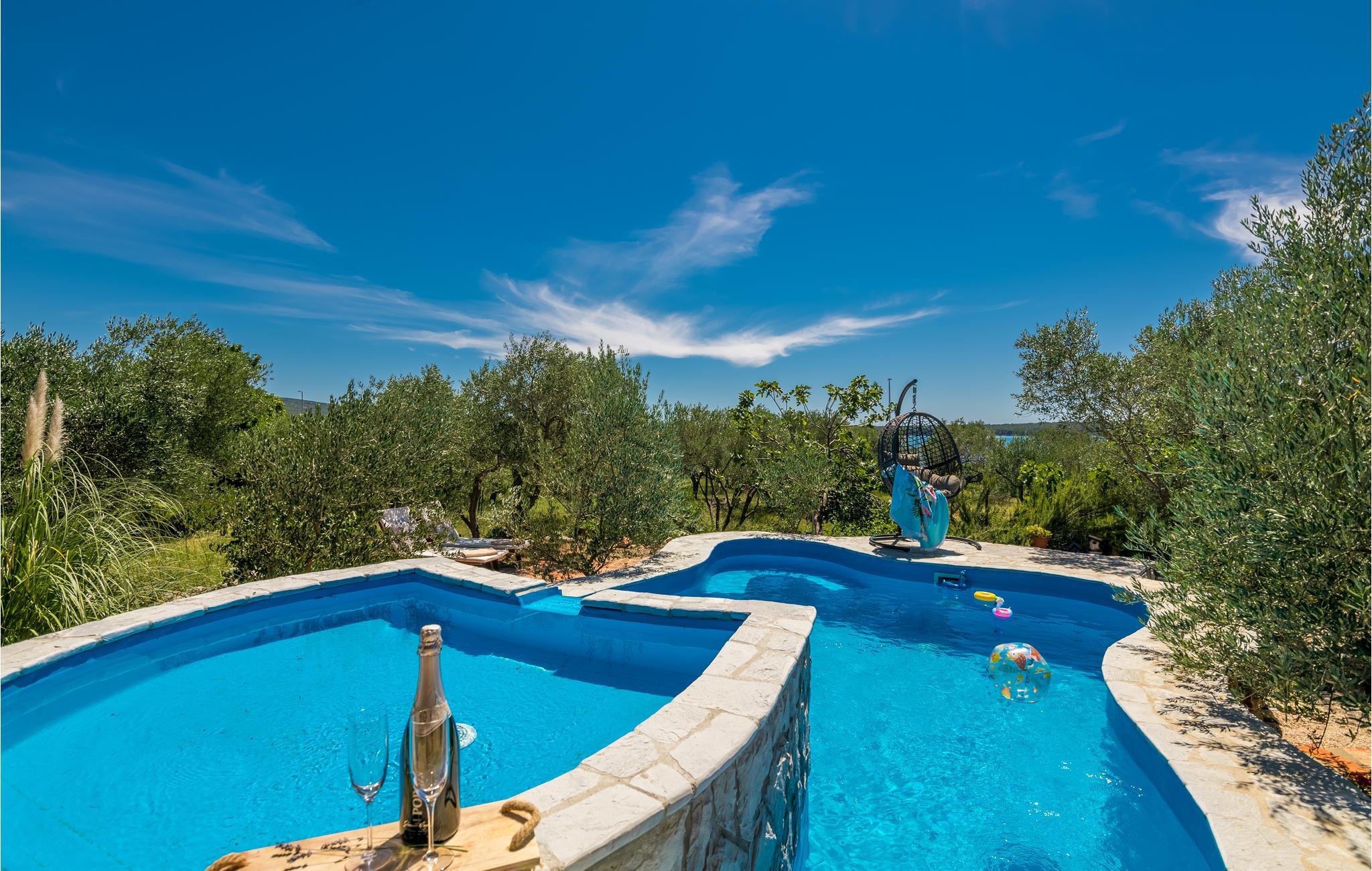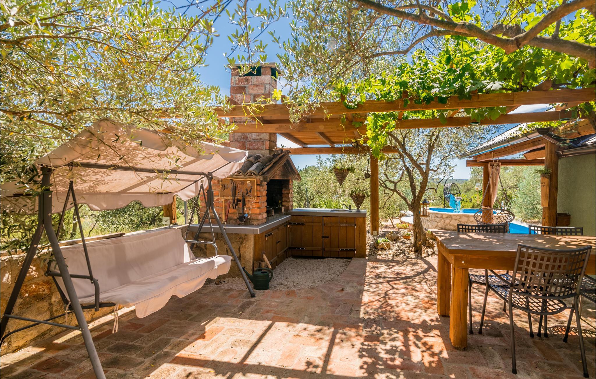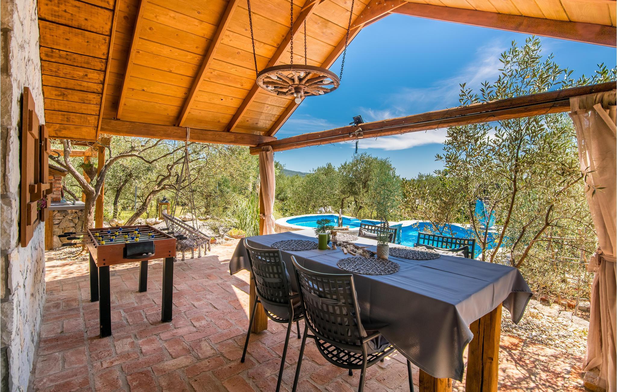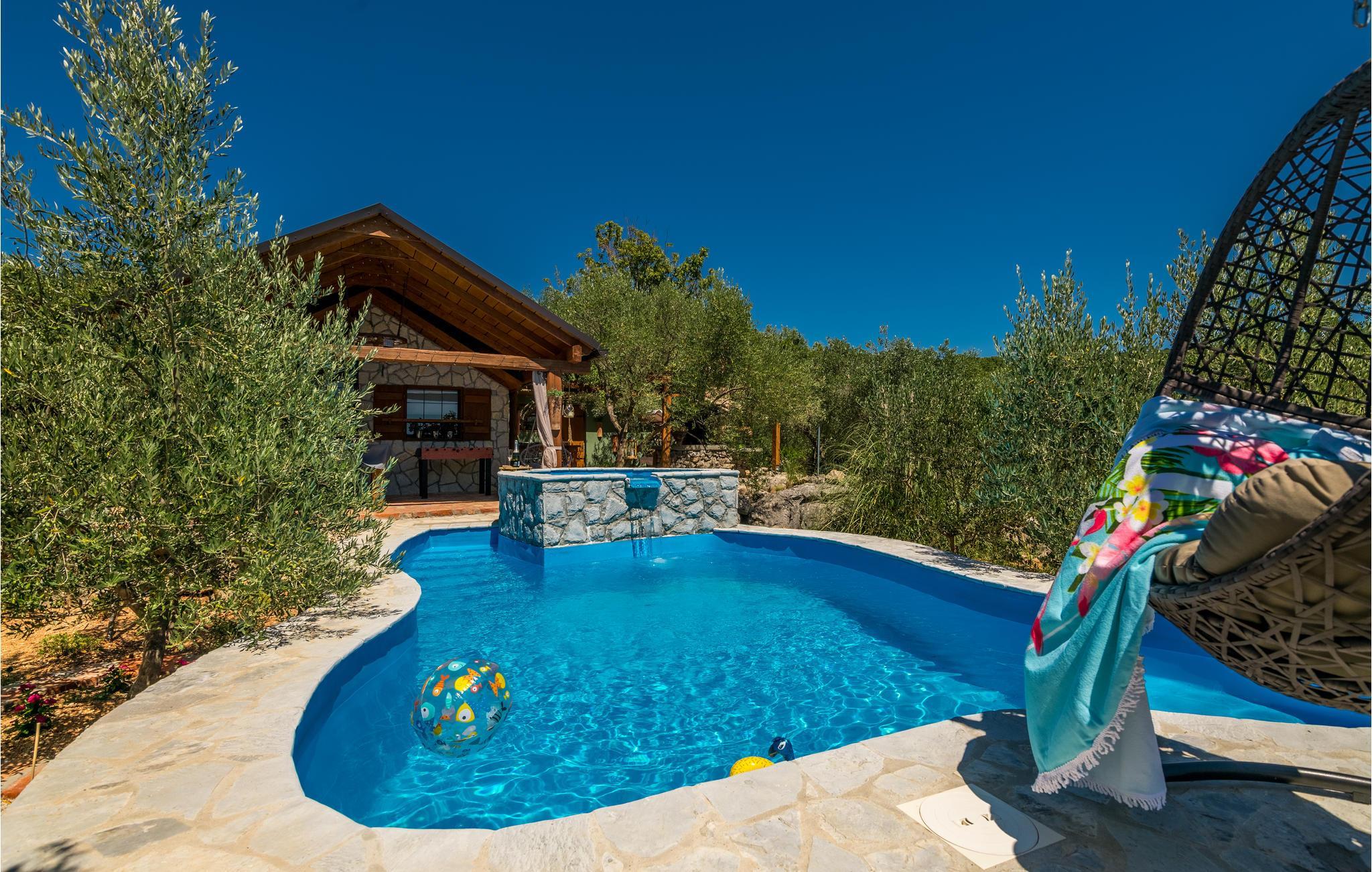 Denne feriebungalow ligger i landsbyen Punat på øen Krk og er omkranset af oliventræer og den smukke natur.