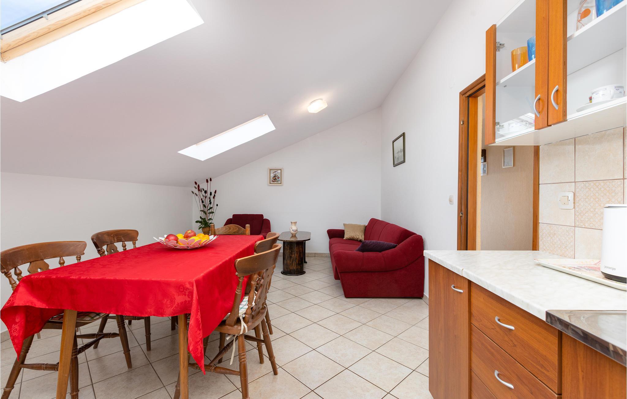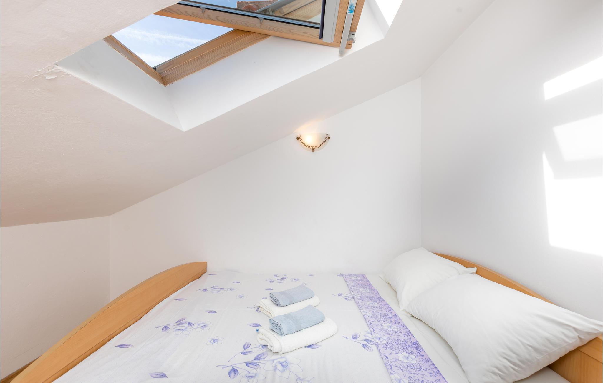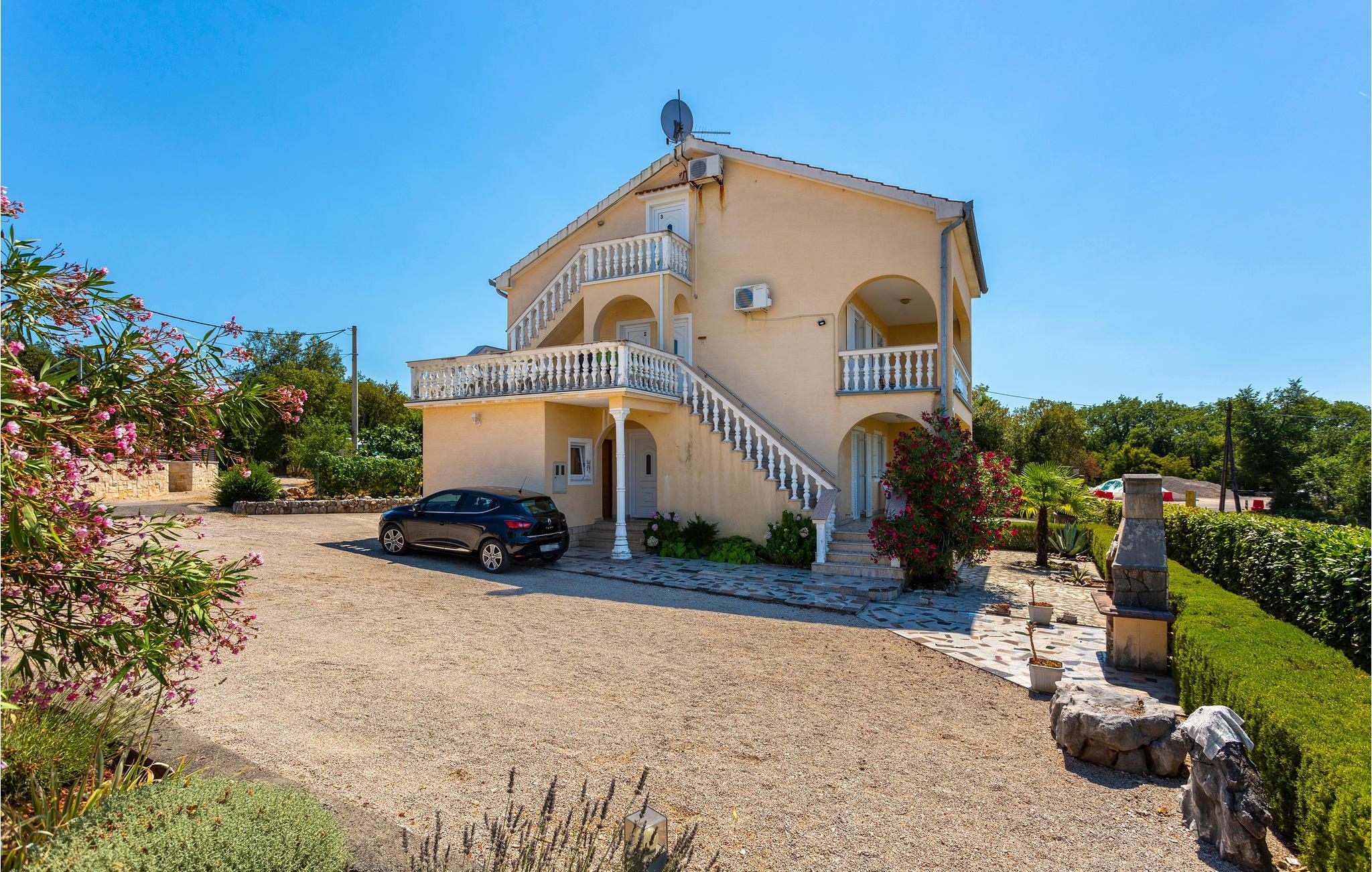 Denne etageejendom ligger i et roligt hjørne af øen Krk. Den skønne have er præget af middelhavsvækster, og her er den fælles grill også placeret. De mindste kan hygge sig på gyngerne, som deles med de andre ferielejligheder. Sommerhuset CKK909 ligger på øverste etage, og taghældningen går ned til 90 cm. I kan benytte den åbne terrasse på 1. sal sammen med gæsterne fra den mindre lejlighed CKK962 og en anden feriebolig. Her får I skønne rammer, når I vil sidde ude og nyde de milde sommeraftener.