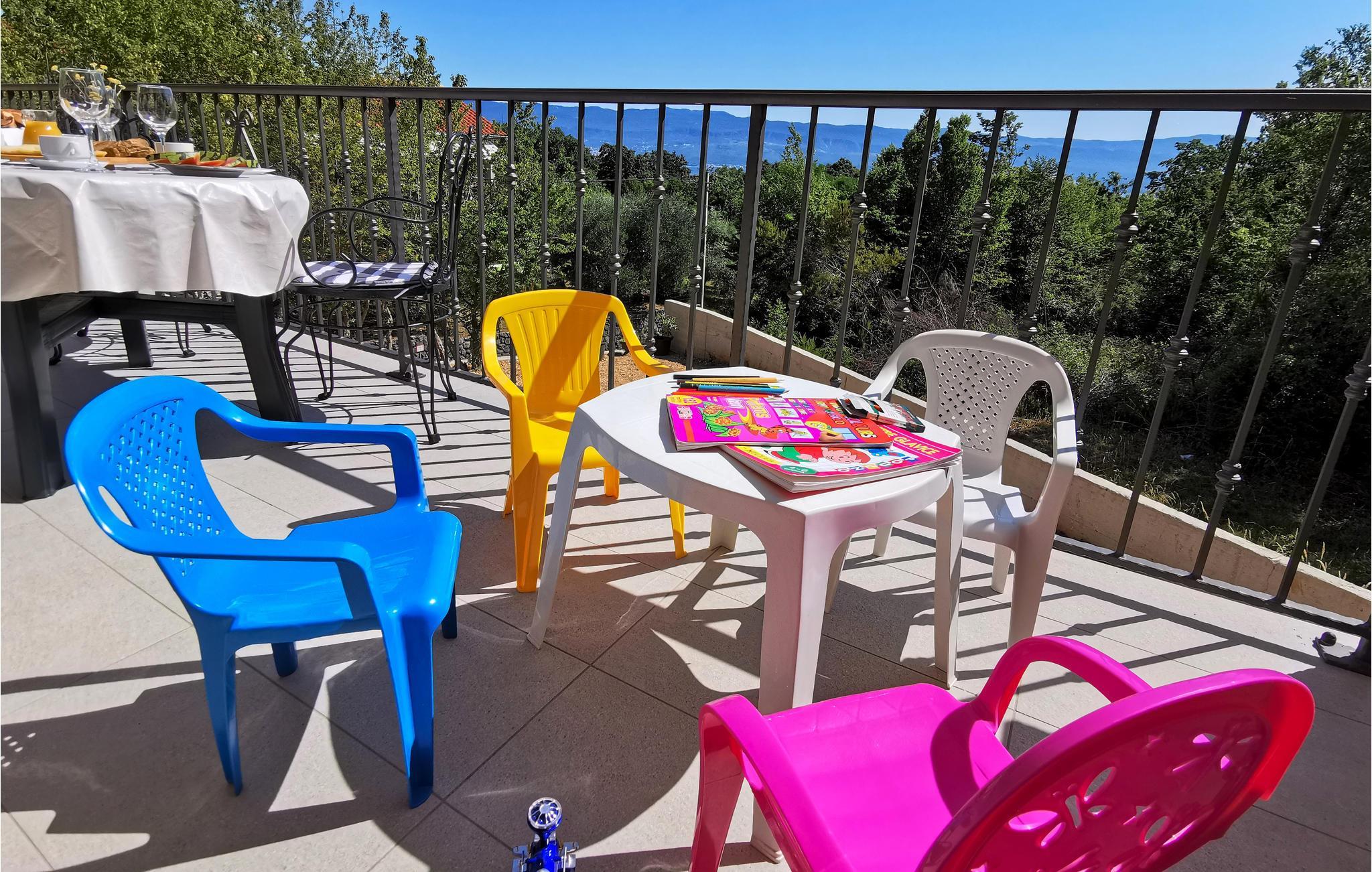 Foran stuen og køkkenet er der en terrasse, hvor I kan nyde jeres morgenmad og dagens første kop kaffe. På øverste etage er der endnu en terrasse med udsigt over havet og skoven, ideel til afslapning om aftenen med et godt glas vin. Det meste af ejendommen er indhegnet.