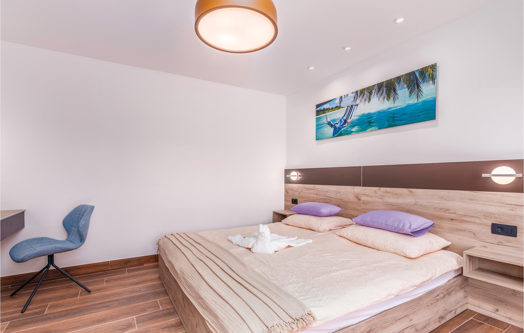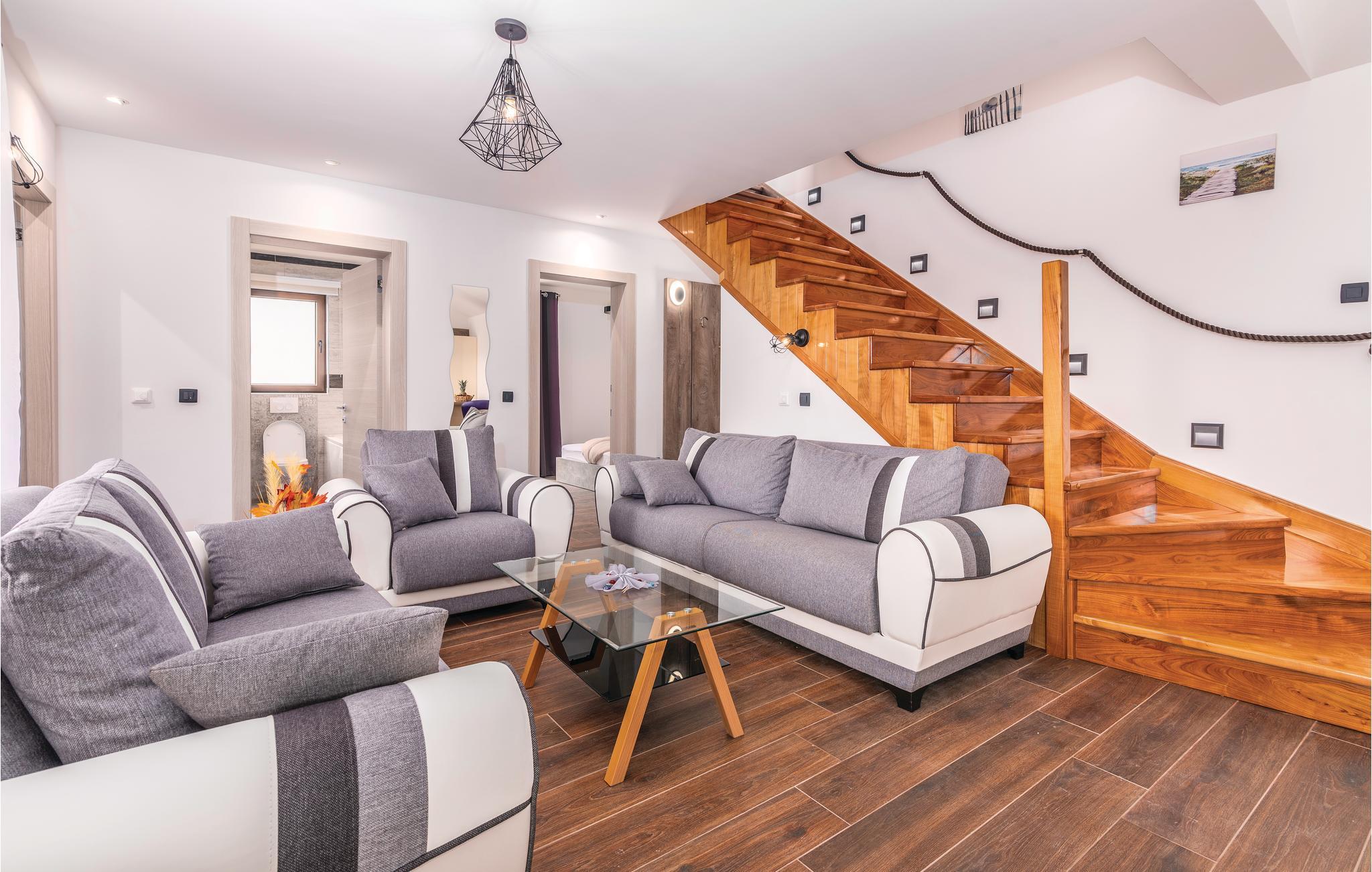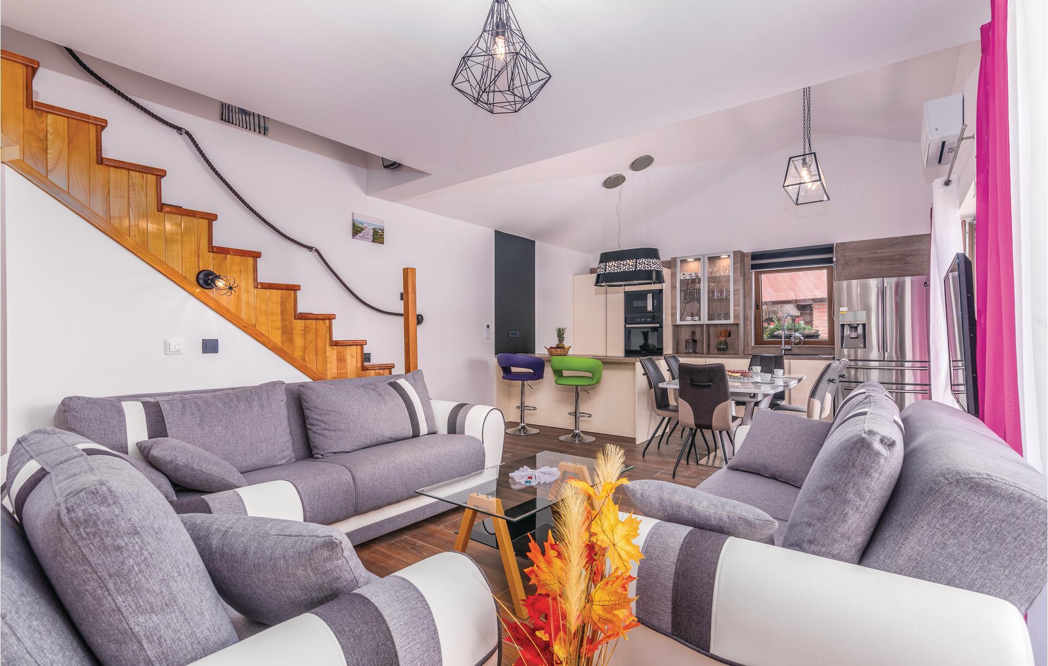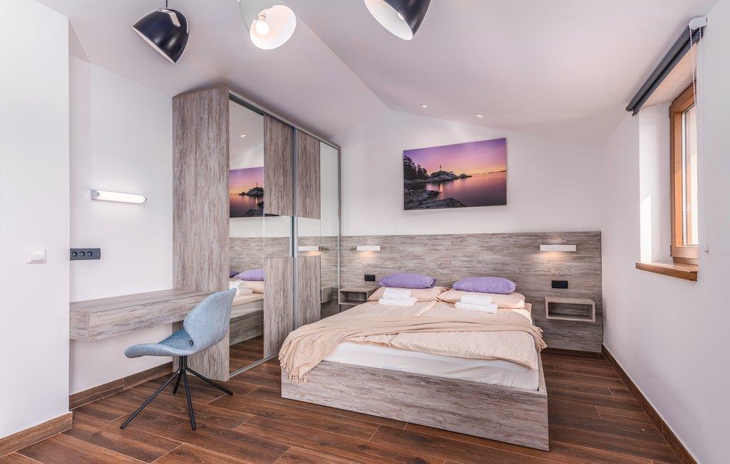 Dette skønne feriehus med pool ligger i Skrpcici, en lille by der ligger på den vestlige del af øen Krk. Det er fordelt på to etager, med en rummelig stue i åben forbindelse med køkken og udgang til poolen og den overdækkede terrasse med grill i stueplan. Fra huset er der ikke langt til Pinezicis strande eller til større byer som Malinska, Krk og Baška. Øens historie strækker sig helt tilbage til antikke, så her kan I fordybe jer i mange interessante historiske seværdigheder. Hver eneste af de små byer på øen, har noget særligt at byde på. Til en aktiv ferie er der markerede vandre- og cykelstier, der er dykker- og wakeboardkurser i Punta.