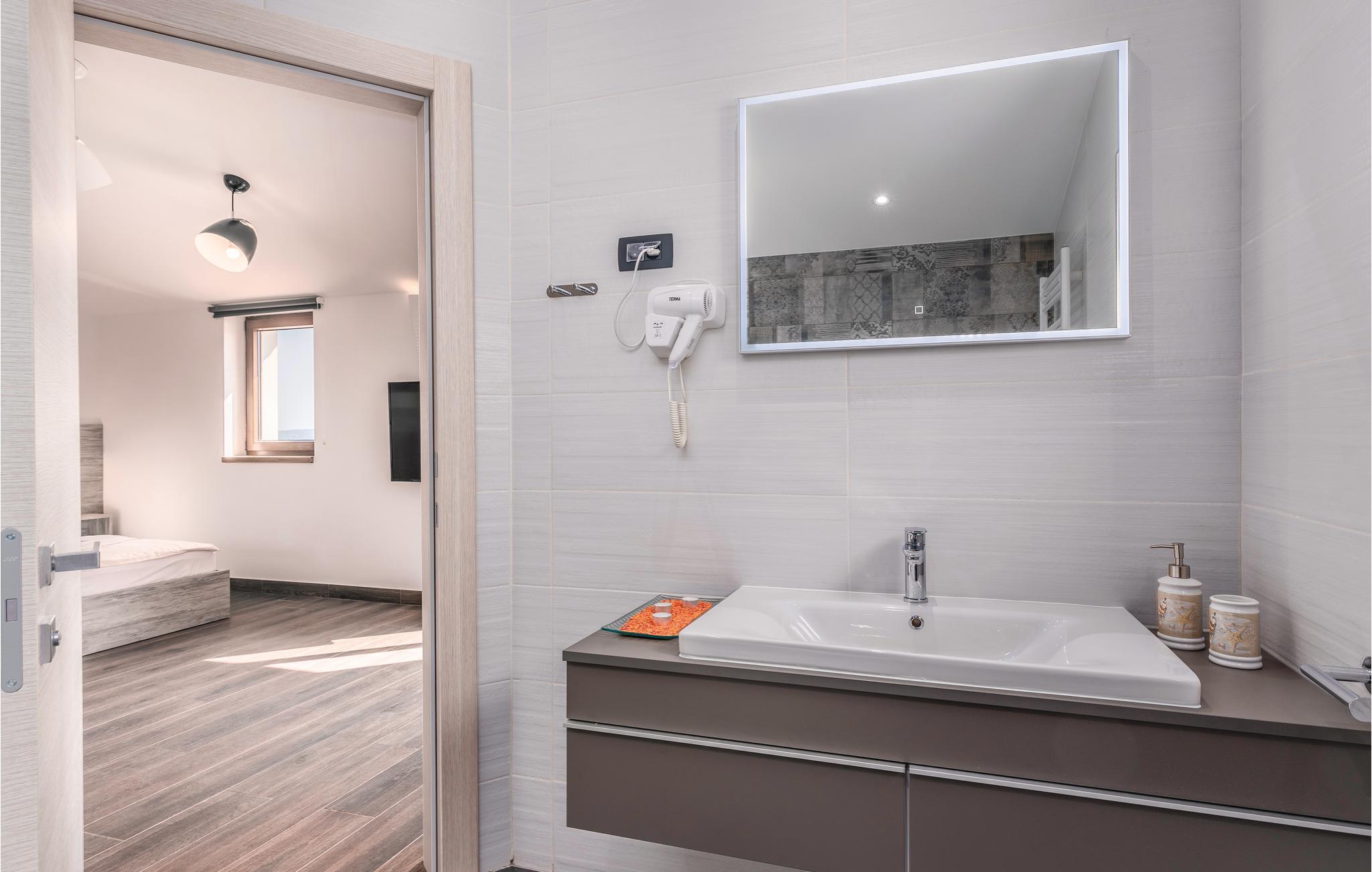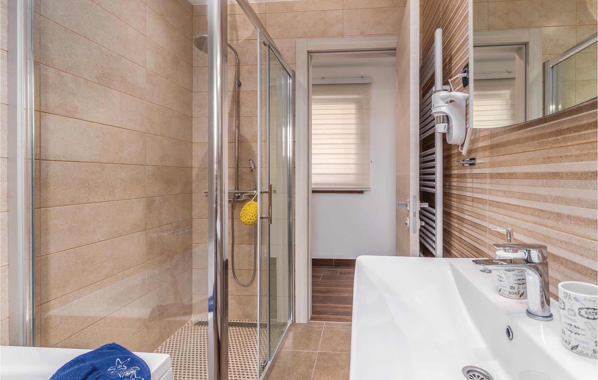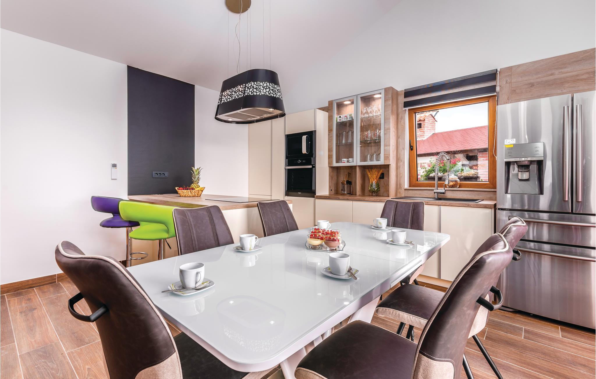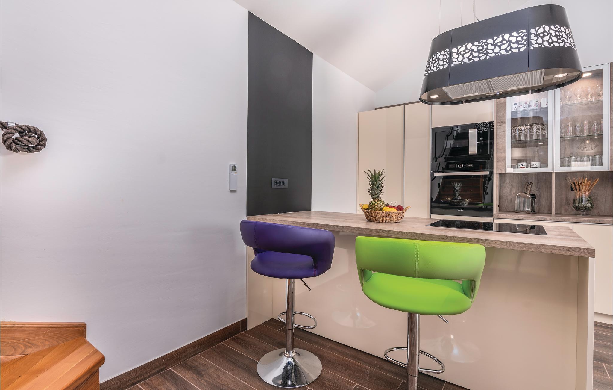 Dette skønne feriehus med pool ligger i Skrpcici, en lille by der ligger på den vestlige del af øen Krk. Det er fordelt på to etager, med en rummelig stue i åben forbindelse med køkken og udgang til poolen og den overdækkede terrasse med grill i stueplan. Fra huset er der ikke langt til Pinezicis strande eller til større byer som Malinska, Krk og Baška. Øens historie strækker sig helt tilbage til antikke, så her kan I fordybe jer i mange interessante historiske seværdigheder. Hver eneste af de små byer på øen, har noget særligt at byde på. Til en aktiv ferie er der markerede vandre- og cykelstier, der er dykker- og wakeboardkurser i Punta.