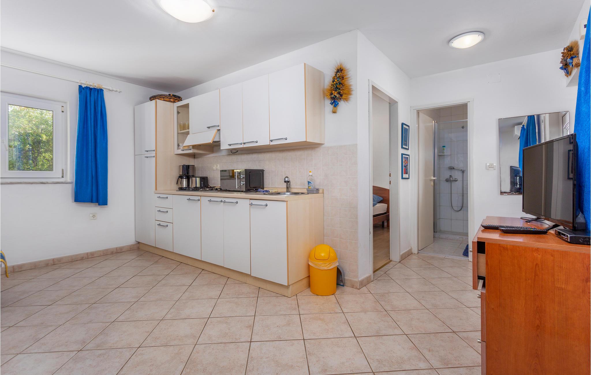 Tilbring jeres ferie ved Kvarner-bugten og bo i denne lejlighed med en central beliggenhed på den populære, gyldne ø Krk. Her kommer I ned i tempo og kan nyde tiden sammen fuldt ud i den fælles have omgivet af idyllisk natur. Lejligheden er godt indrettet og udstyret, og her er alt, hvad I behøver for at føle jer godt tilpas. Den store terrasse er også et dejligt sted at starte ferien med en morgenmad i det fri. Nyd morgenkaffen til en dejlig udsigt, inden I går ud i haven og hopper i poolen. Efter jeres udflugter kan I grille i haven om aftenen og få en snak med gæsterne i det andet feriehus.