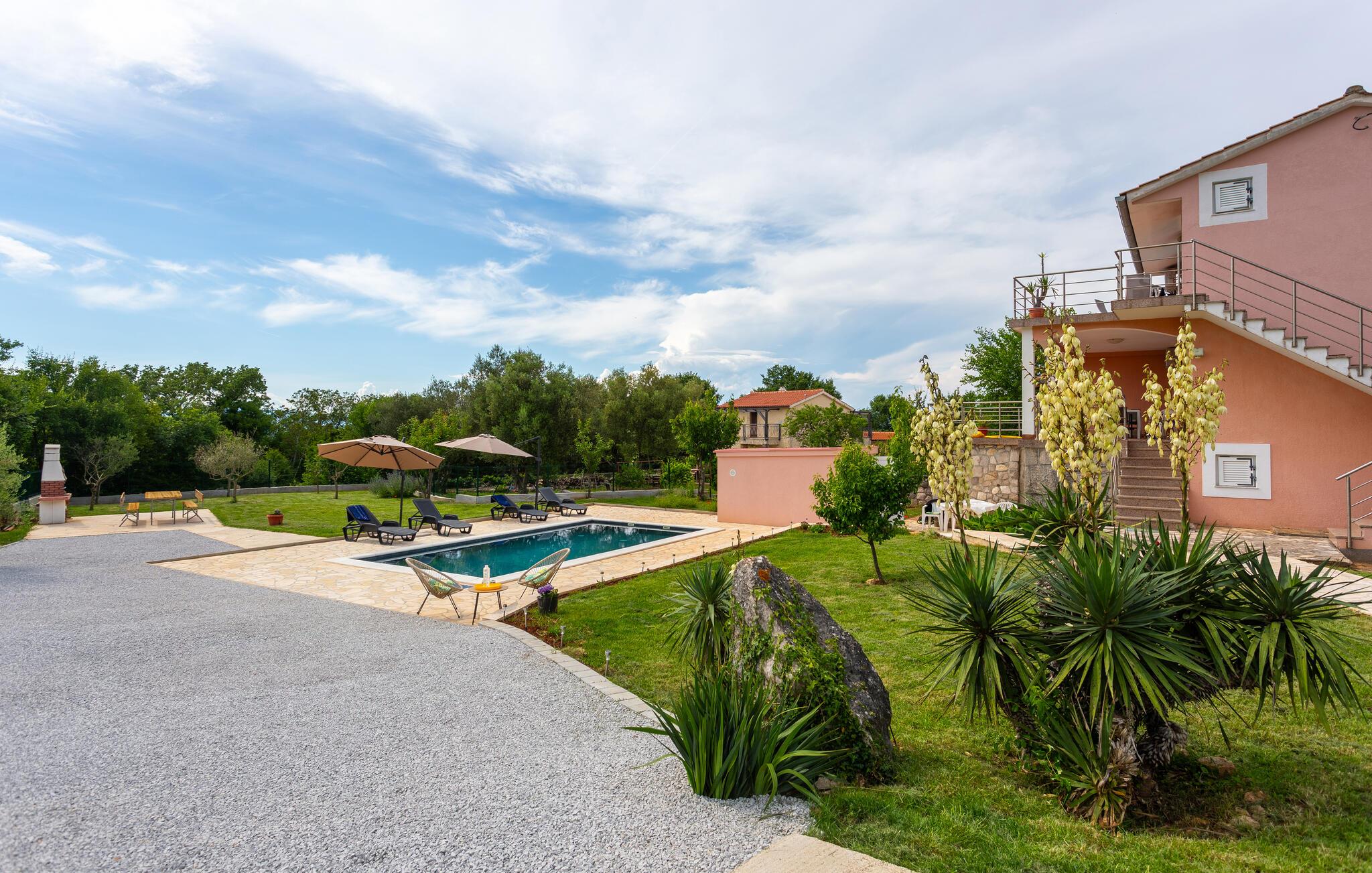 Lad turen gå til den gyldne ø, Krk, hvor denne lejlighed venter jeres familie i en skøn, central beliggenhed. Lejligheden ligger i flotte, idylliske omgivelser på en skøn, fælles grund, så der er meget godt at vente både ude og inde. Indvendigt kan I glæde jer til en pæn og charmerende indretning, hvor I finder alskens godt udstyr til et behageligt ophold. Tag morgenmaden med ud på altanen, mens I nyder udsigten og solen, før I går i haven og dypper jer i poolen.