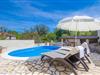 I den lille by Sveti Vid Miholjice, tæt på Malinska og på øen Krk, ligger denne moderne og funktionelt indrettede halvdel af et dobbelthus. I stueetagen ligger den rummelige dagligstue med køkken og spiseområde, mens de to soveværelser ligger ovenpå. Boligen er et ideelt feriemål til familieferie. På den smukke grund har I en terrasse med grill til rådighed, hvor I kan tilbringe de lange sommerdage og –aftener. I byen Malinska, der ligger i nærheden, kan I finde de nærmeste badestrande, mens hele øen bugner kulturelle, sportslige og underholdningstilbud. Prøv de lokale kulinariske specialiteter og regionale vine, der vil runde jeres perfekte ferie af. Poolen ligger på en del af grunden, der er adskilt fra huset af en lille gangsti. Her kan I nyde de varme sommerdage.