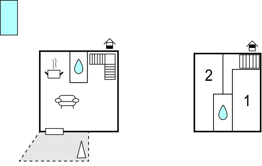 Opholdsstue/køkken - 2 Sovepladser. (Sofa, madras eller lignende).