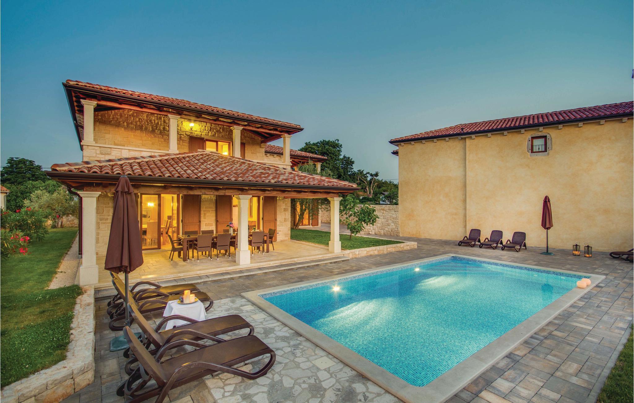 I den lille by Turcic, kun ti minutter til fods fra havet og de skønne strande ligger dette kompleks med fire eksklusive villaer, hvor I kan holde ferie i skønne rolige omgivelser og med al ønskelig komfort. Til hvert hus hører en swimmingpool og en indhegnet have, og hvert hus er indrettet unikt. CKK546 er en moderne og funktionelt indrettet villa, hvor der er en rummelig opholdsstue i stueplan. Herfra kommer I direkte ud på den overdækkede terrasse. Her kan I nyde de varme sommerdage med forfriskende pauser i poolen. Til hvert soveværelse hører eget badeværelse, og fra soveværelserne på første sal er der udgang til en overdækkede altaner, hvor I kan drikke dagens første kop kaffe og nyde lydene fra naturen. Fra huset kommer I nemt til de berømte turistbyer på øen, f.eks. Malinska, Krk og Baska, hvor der er meget at se og opleve sommeren igennem, samt mange cafeer og restauranter, hvor I kan spise enten international eller kroatisk mad og drikke den gode kroatiske vin.